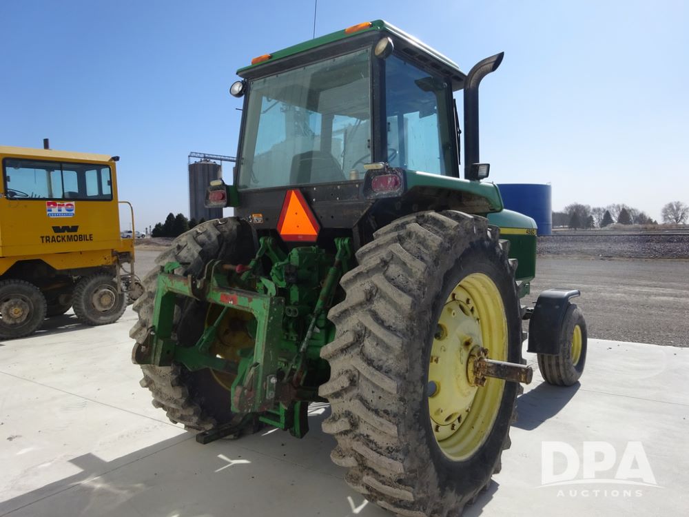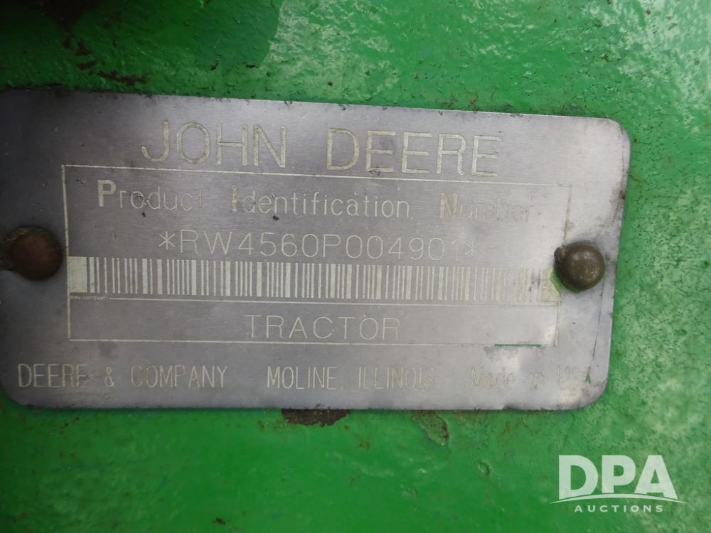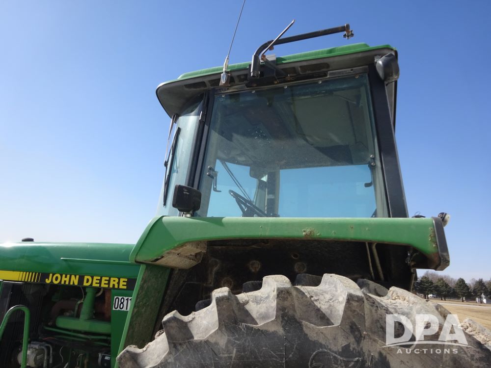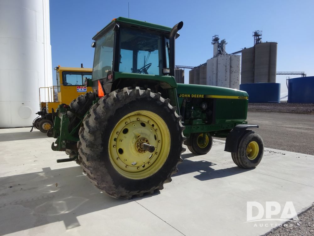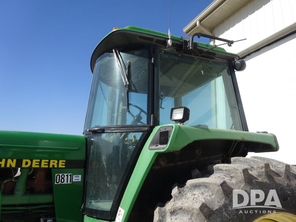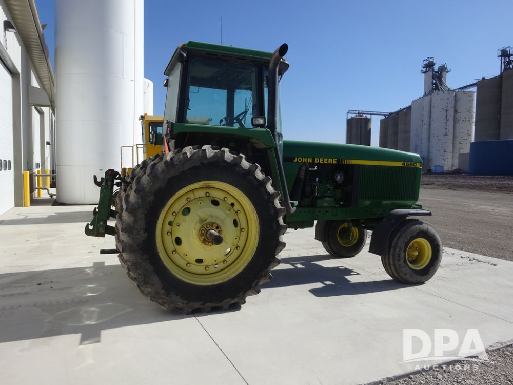1994 John Deere 4560 Tractor (PZ14455, Unit 811), Wide front, diesel engine, Powershift transmission, cab, lights, heat, Am/Fm radio, quick hitch, PTO, 3 port hydraulics, Firestone 11.00-16 front tires, fenders, Firestone 18.4R42 tires,