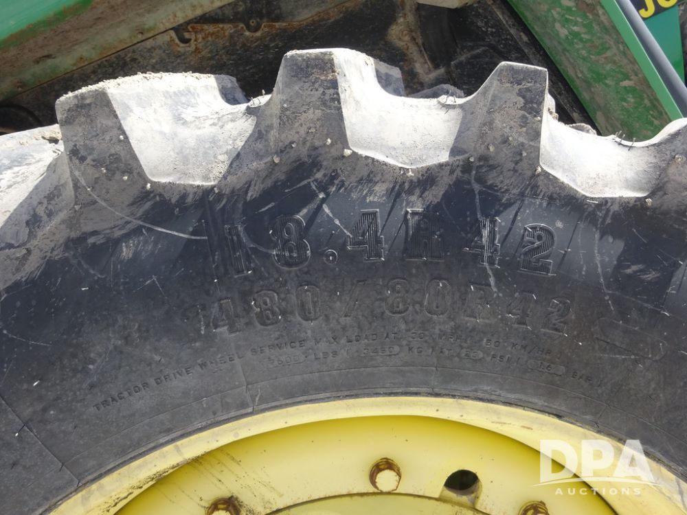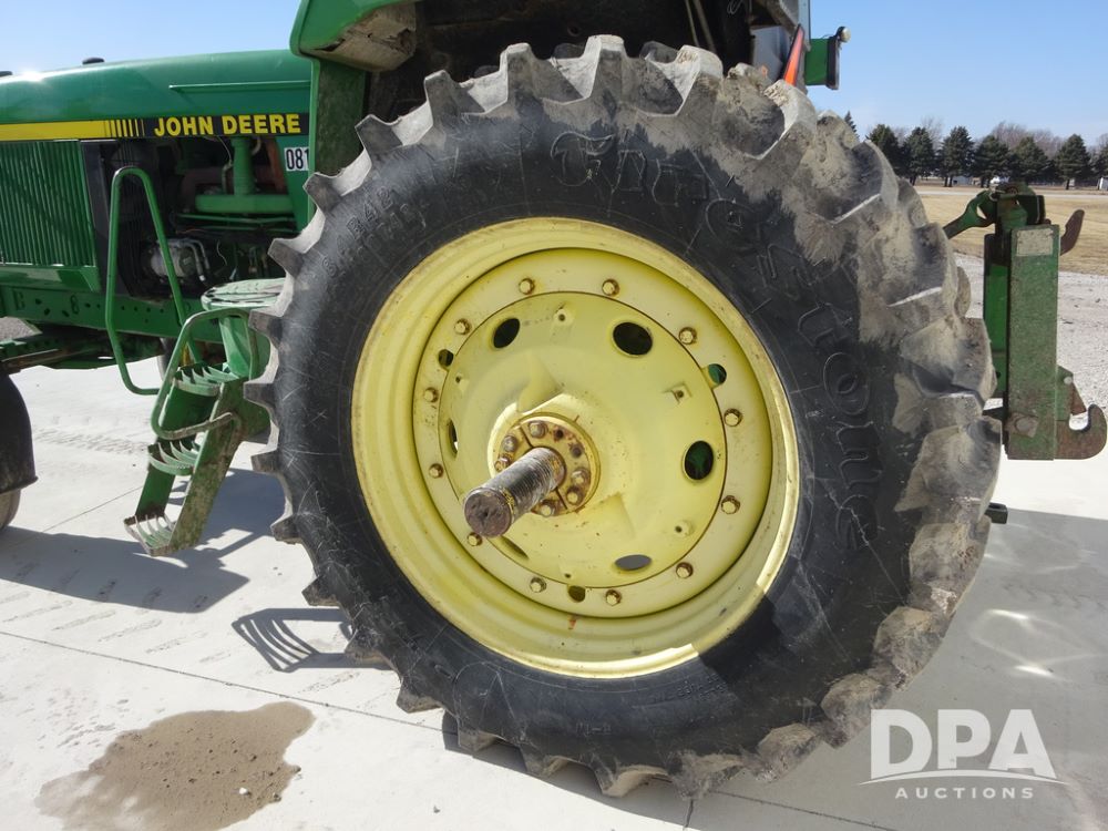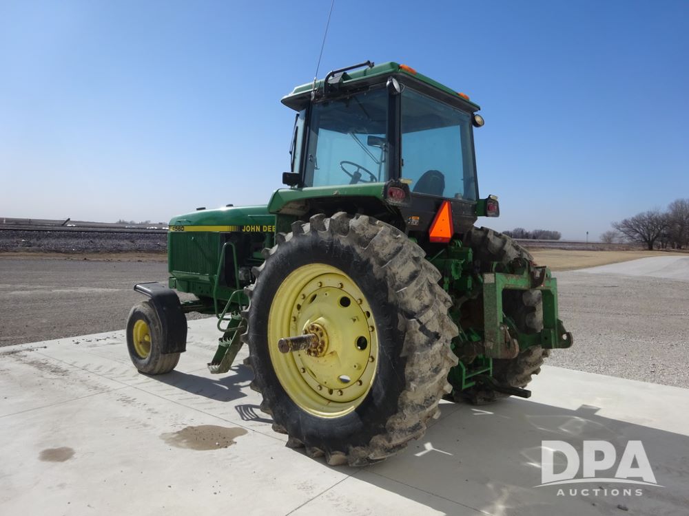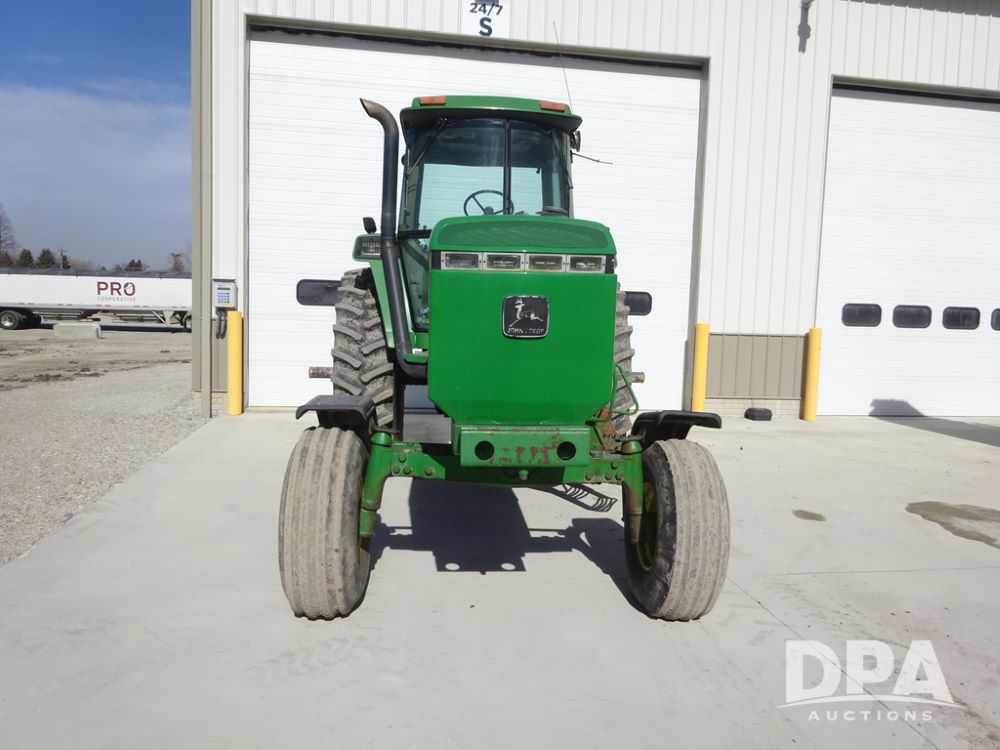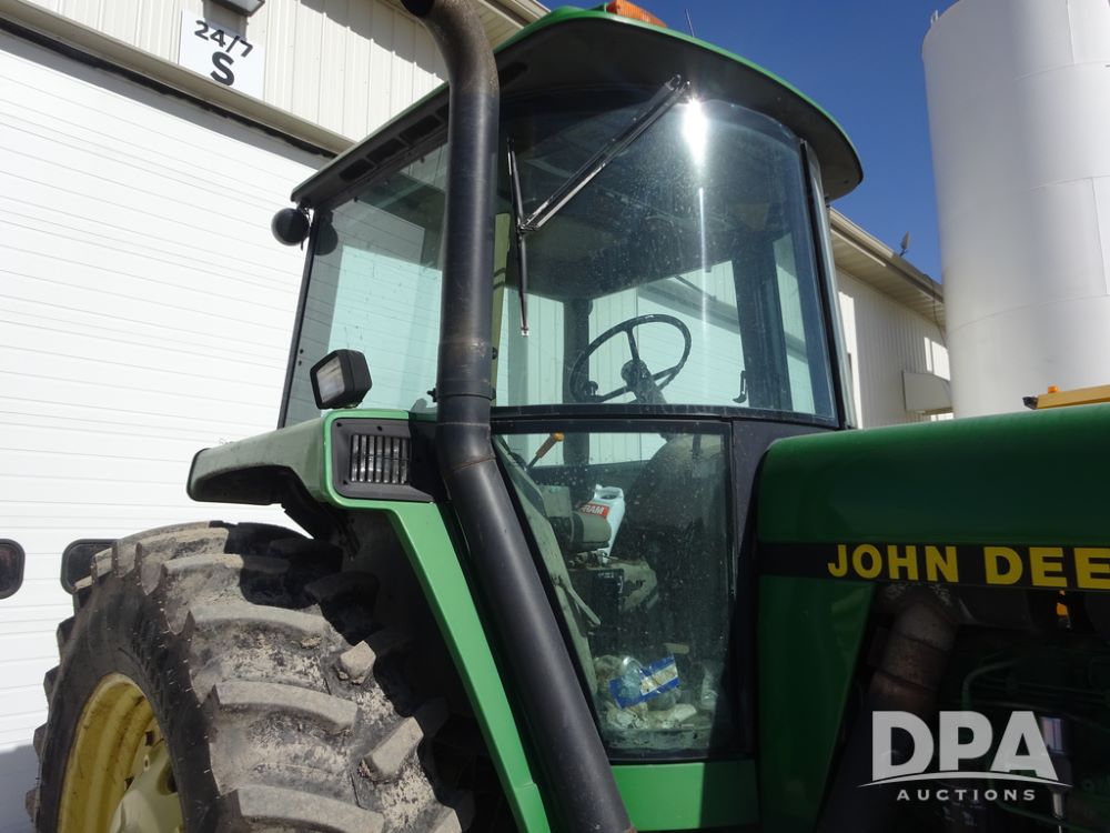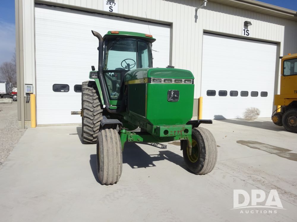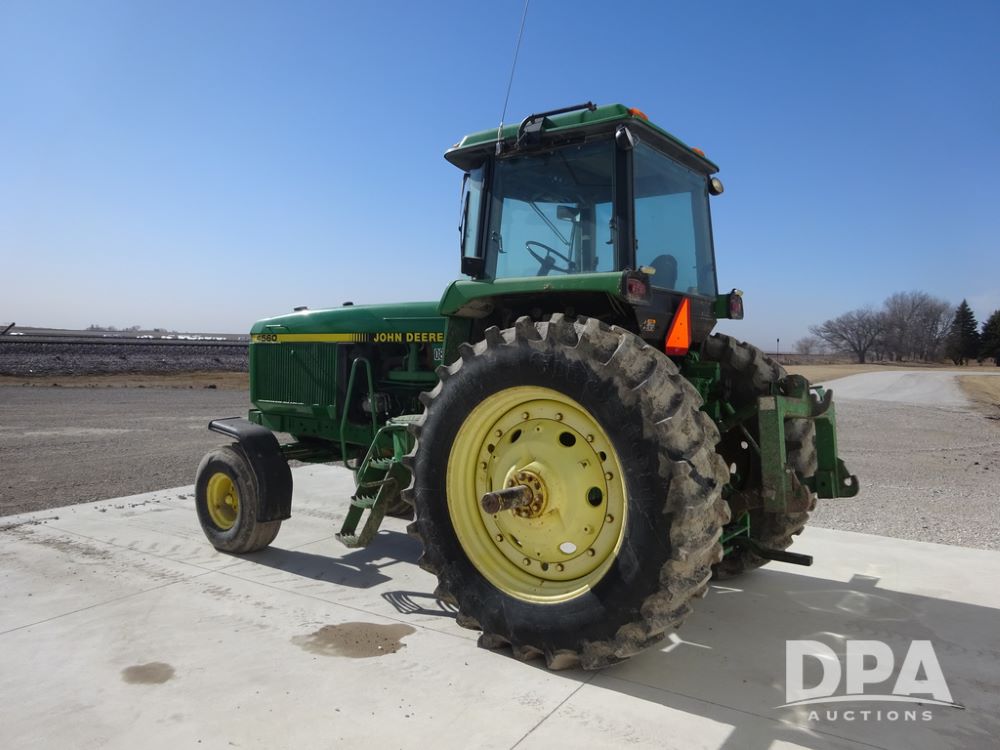 1994 John Deere 4560 Tractor (PZ14455, Unit 811), Wide front, diesel engine, Powershift transmission, cab, lights, heat, Am/Fm radio, quick hitch, PTO, 3 port hydraulics, Firestone 11.00-16 front tires, fenders, Firestone 18.4R42 tires,