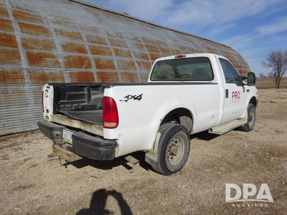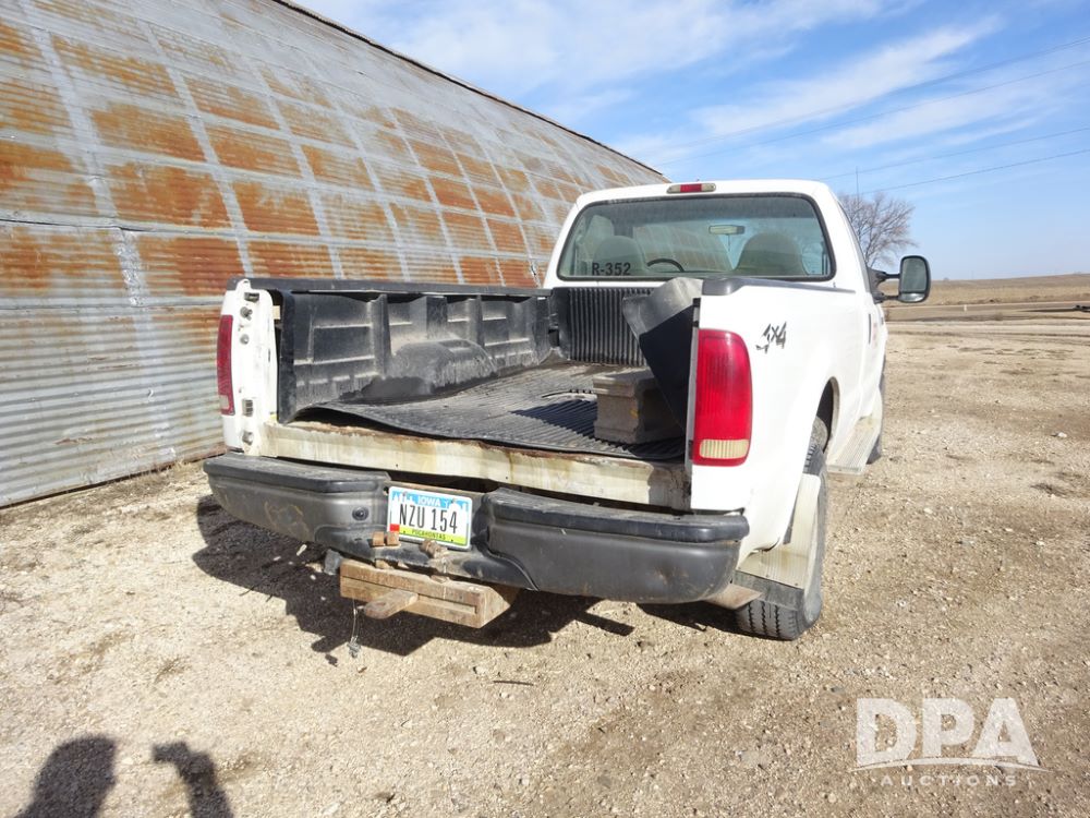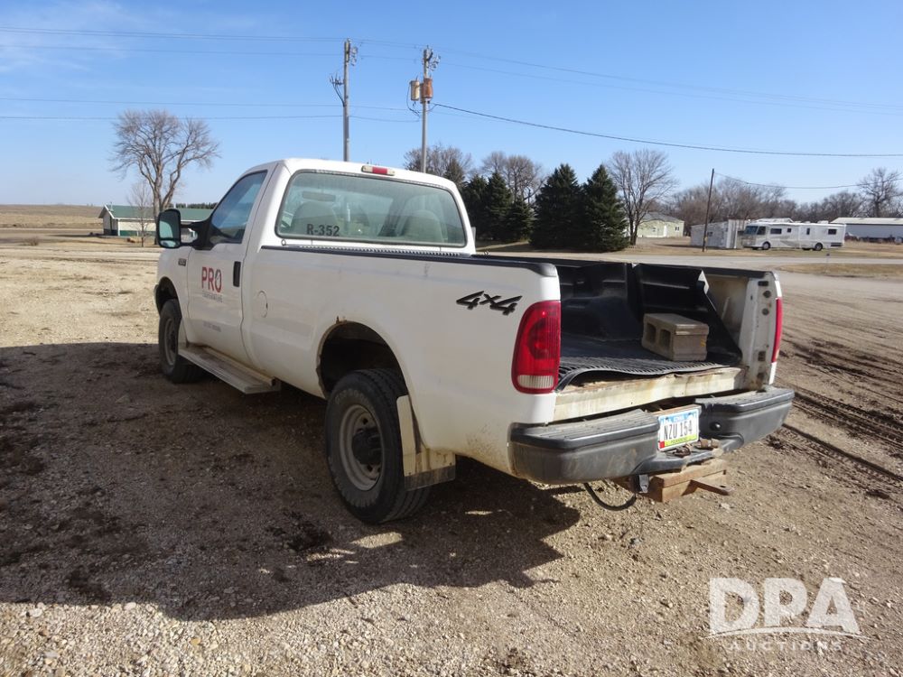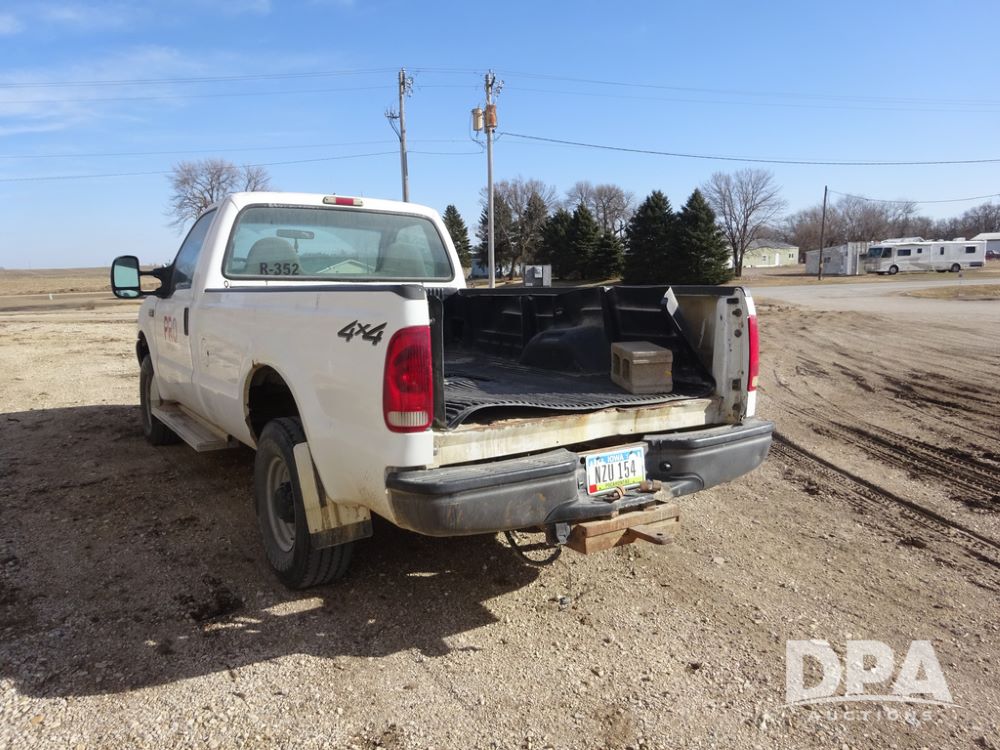 2001 Ford F250XL Super Duty Pickup (PZ14460, Unit R-352), 4x4, Triton 5.4L gas engine, automatic transmission, air conditioning, heat, Am/Fm radio, cruise control, running boards, 5th wheel, rear hitch, LT265/75R16 tires, shows 176,112 miles.