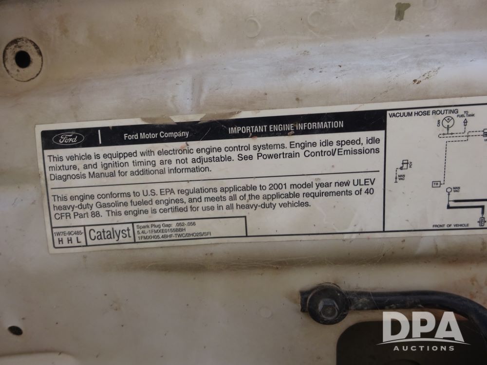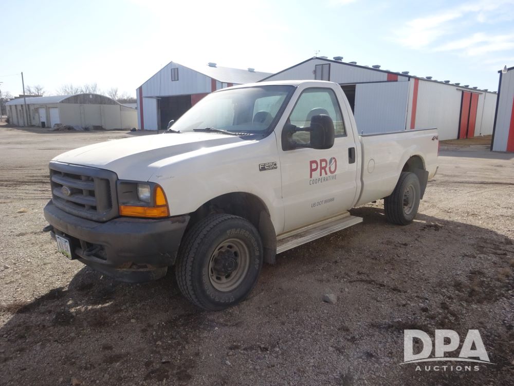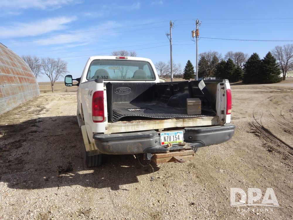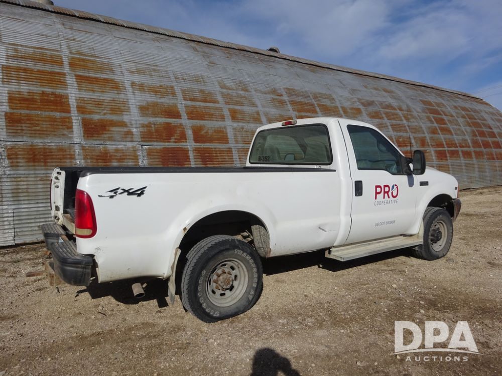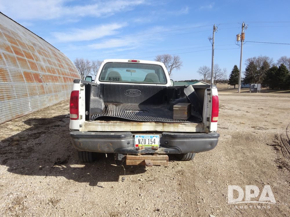 2001 Ford F250XL Super Duty Pickup (PZ14460, Unit R-352), 4x4, Triton 5.4L gas engine, automatic transmission, air conditioning, heat, Am/Fm radio, cruise control, running boards, 5th wheel, rear hitch, LT265/75R16 tires, shows 176,112 miles.