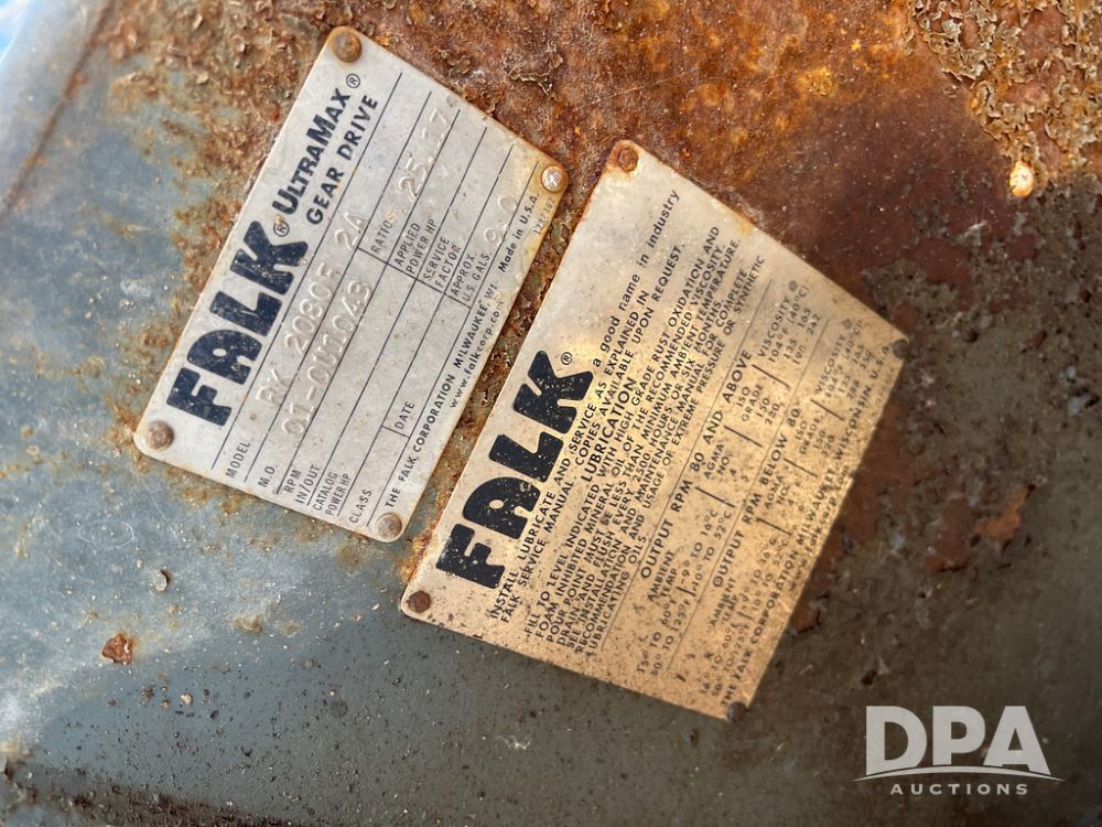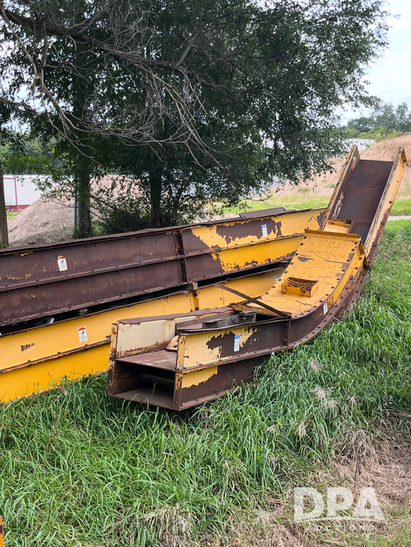 Tramco Incline Drag Conveyor (NP6518), Tramco incline drag conveyor, 130' overall length, 110' straight, 20' on incline, 20" wide x 10" deep, 10' sections, Toshiba 60HP electric drive motor and Falk 25.17 gear reducer, poly paddles, seller has equipment to load item.