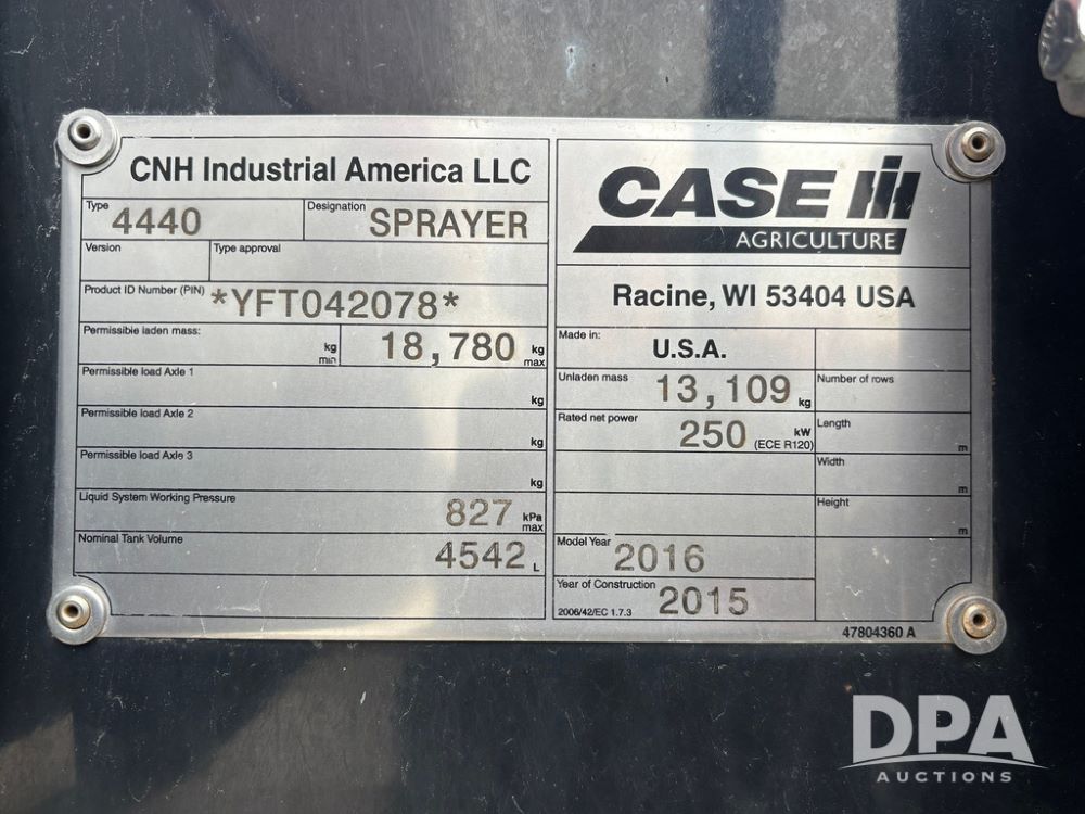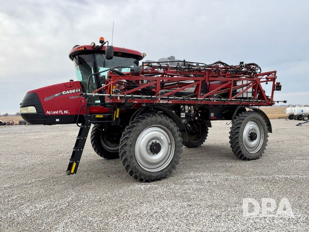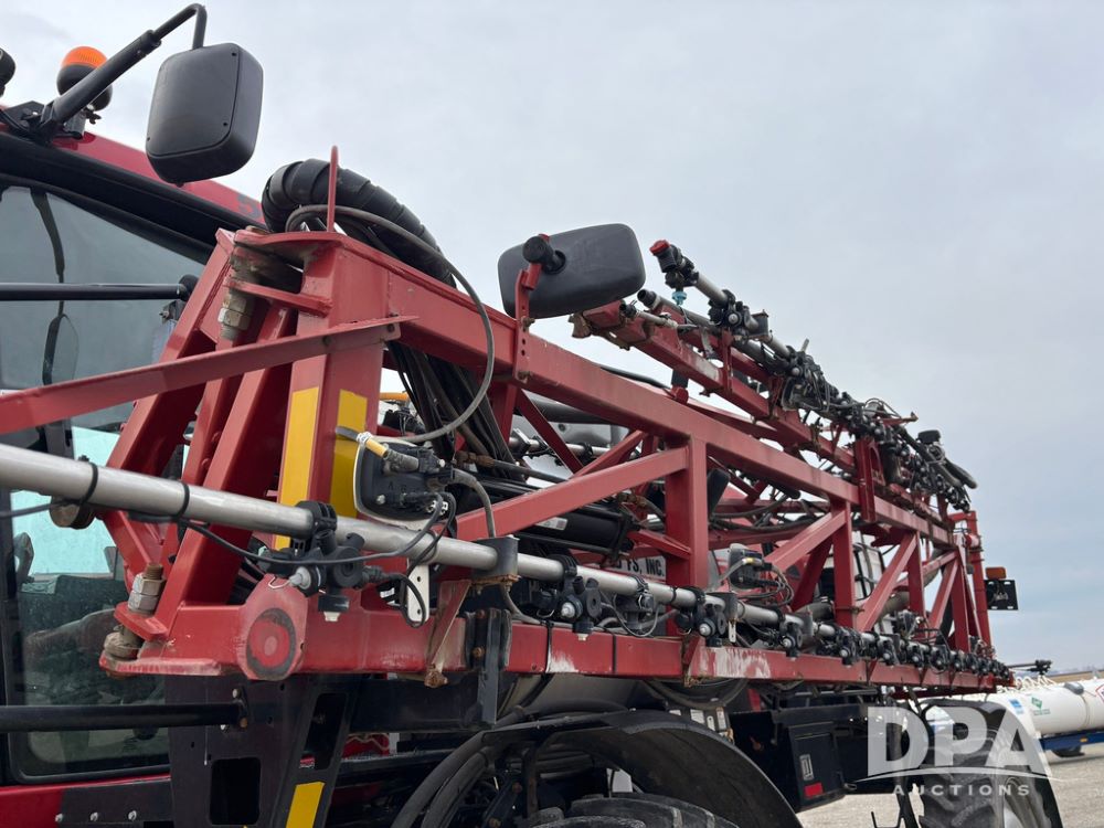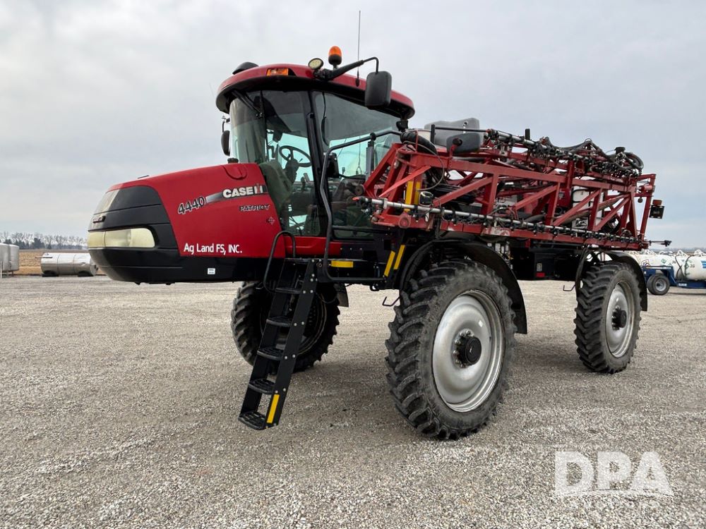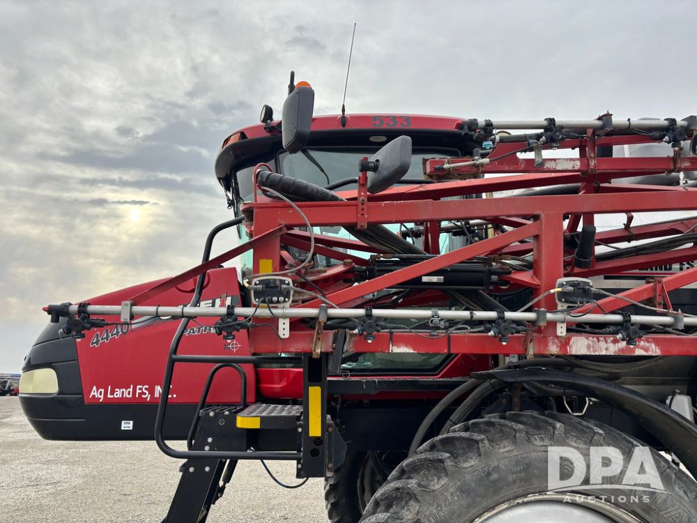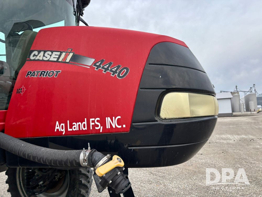 2016 CaseIH Patriot 4440 Sprayer (GP12764, Unit 533), diesel engine, hydrostatic transmission, air conditioning, heat, Am/Fm CD radio, leather seat, buddy seat, beacon light, 1200 gallon stainless steel liquid system, top poly rinse tank, 40 gallon poly direct injection tank, front fill, Alliance Agriflex + VF380/90R46 tires, fenders, Voyager cab camera, Precision Planting system, Raven Viper 4 monitor, shows 3,852 hours.