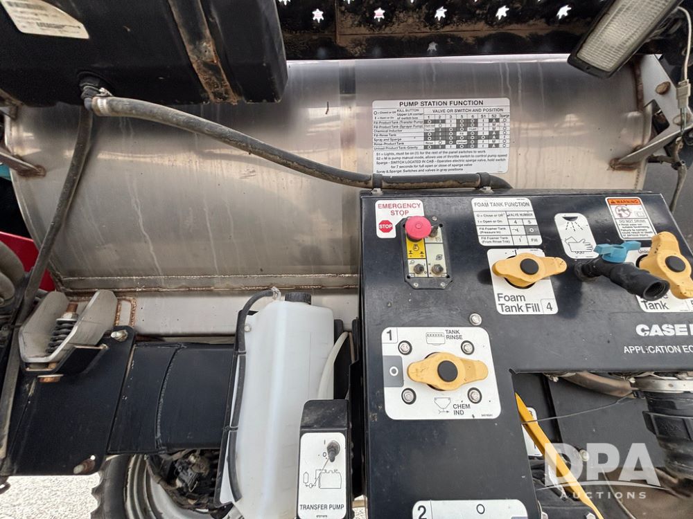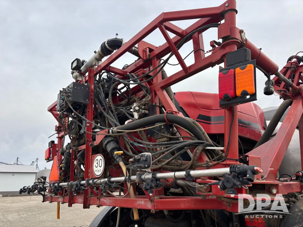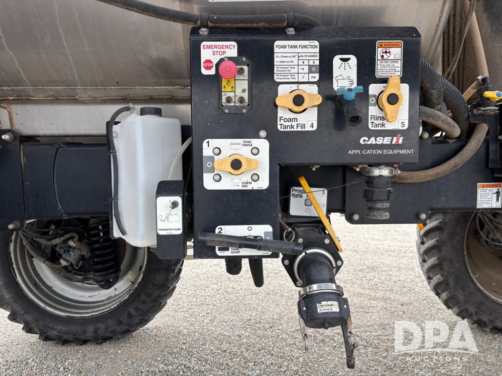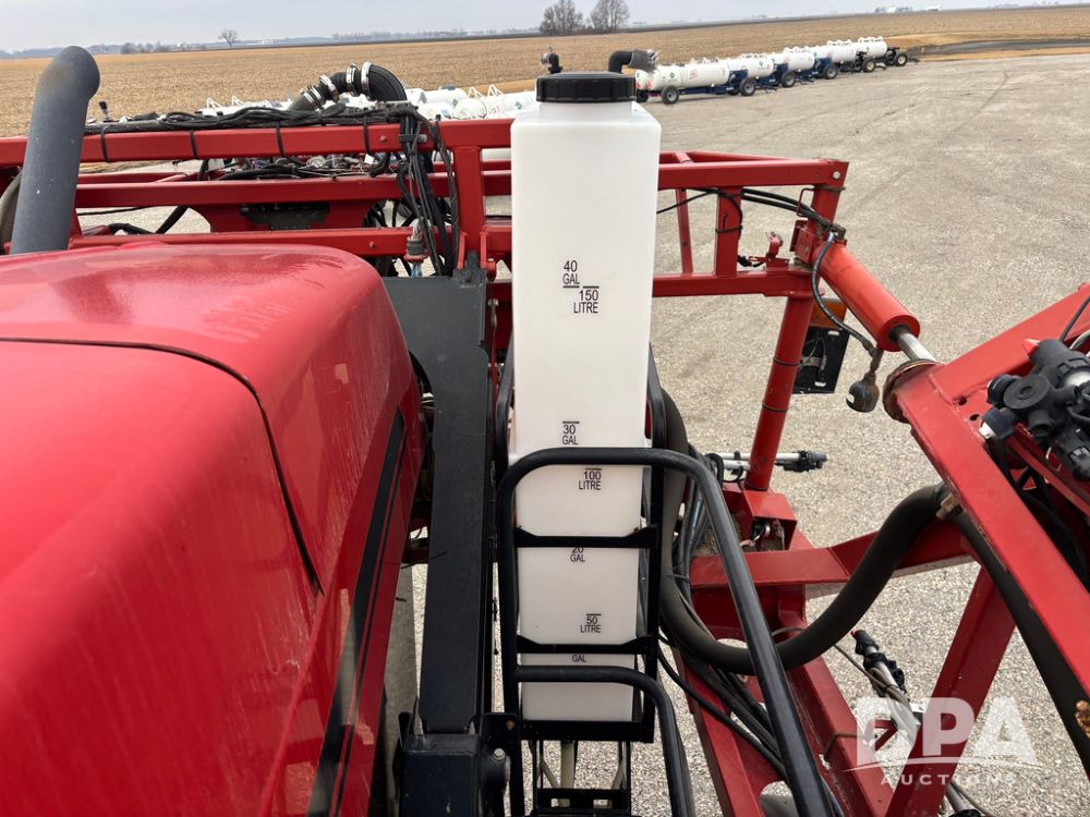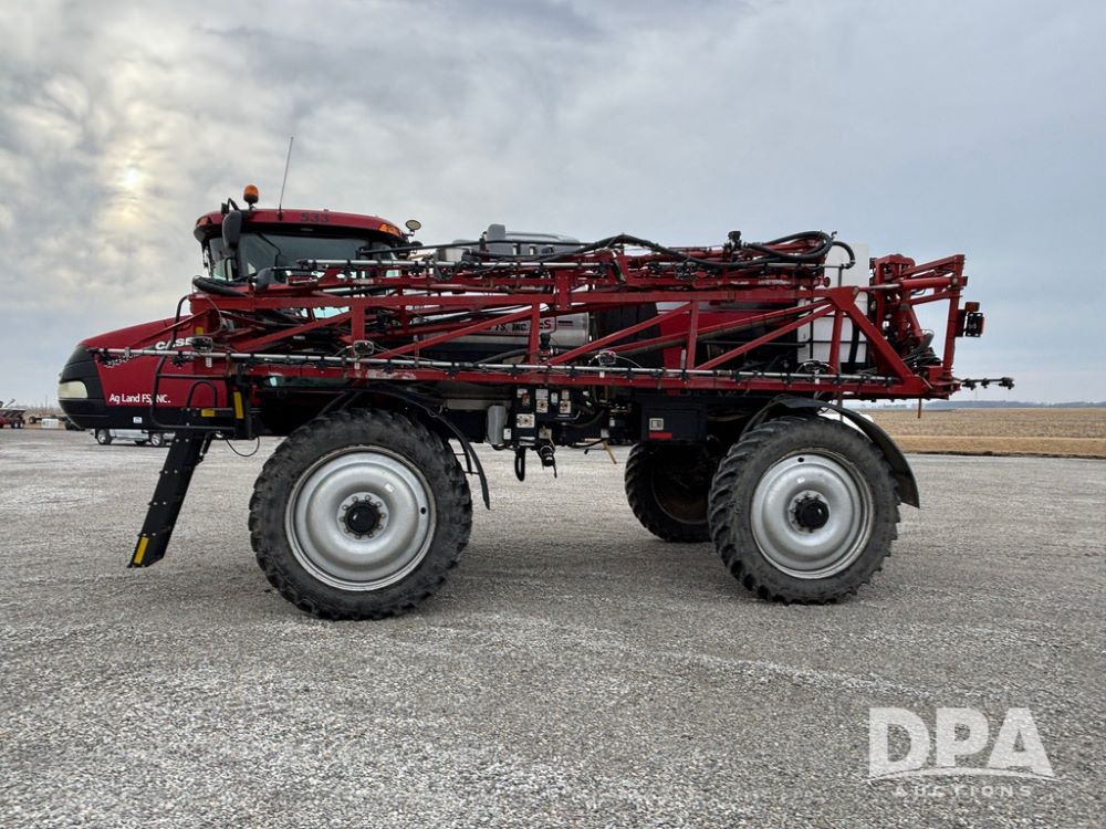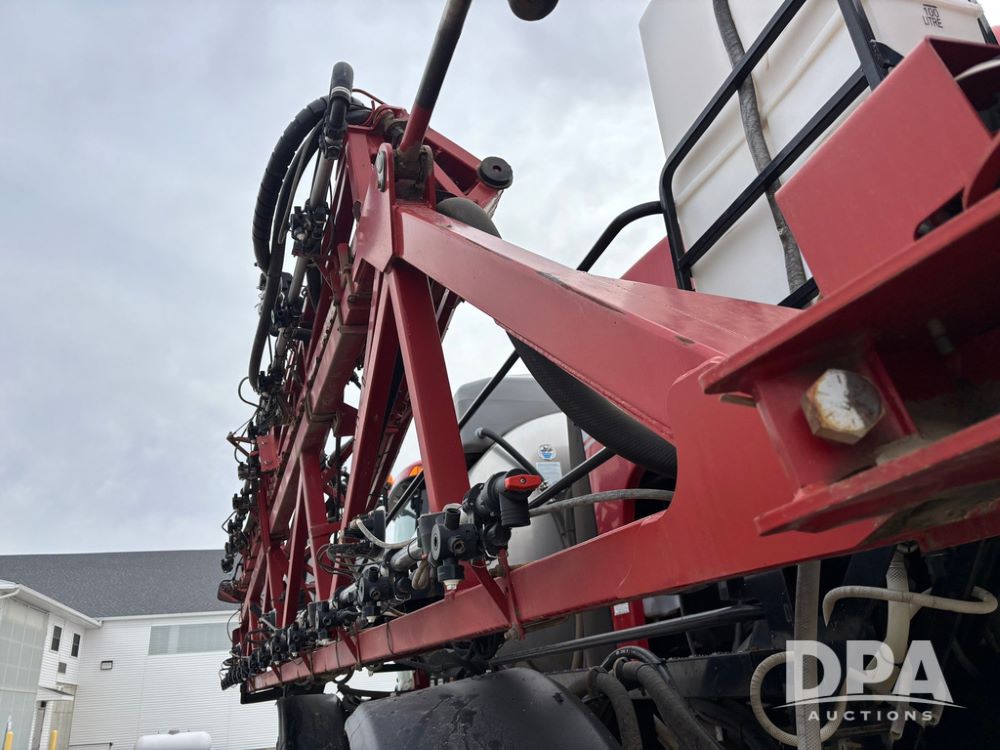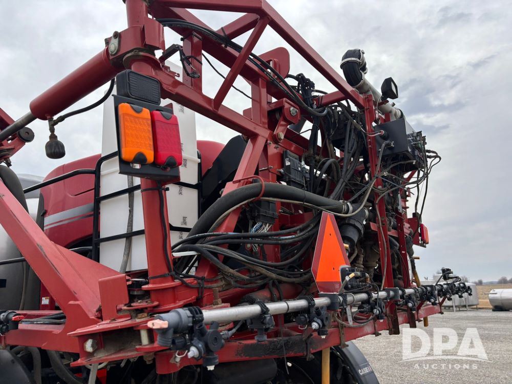 2016 CaseIH Patriot 4440 Sprayer (GP12764, Unit 533), diesel engine, hydrostatic transmission, air conditioning, heat, Am/Fm CD radio, leather seat, buddy seat, beacon light, 1200 gallon stainless steel liquid system, top poly rinse tank, 40 gallon poly direct injection tank, front fill, Alliance Agriflex + VF380/90R46 tires, fenders, Voyager cab camera, Precision Planting system, Raven Viper 4 monitor, shows 3,852 hours.