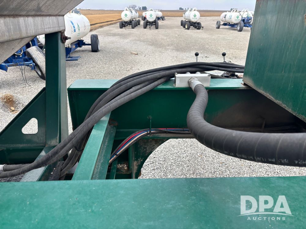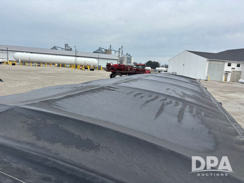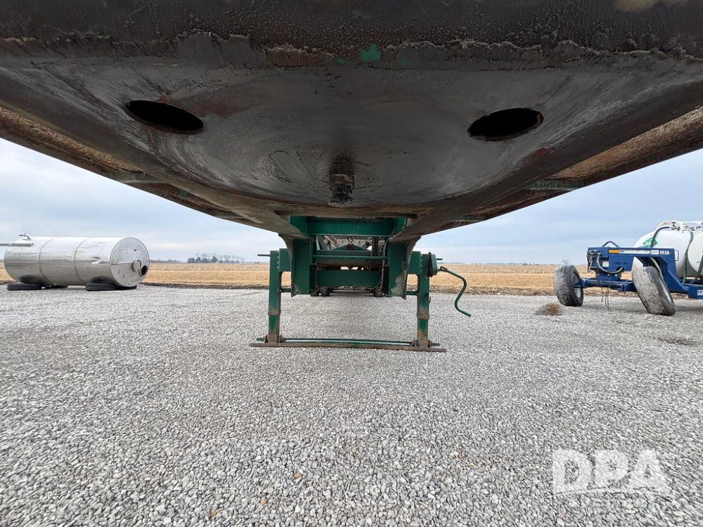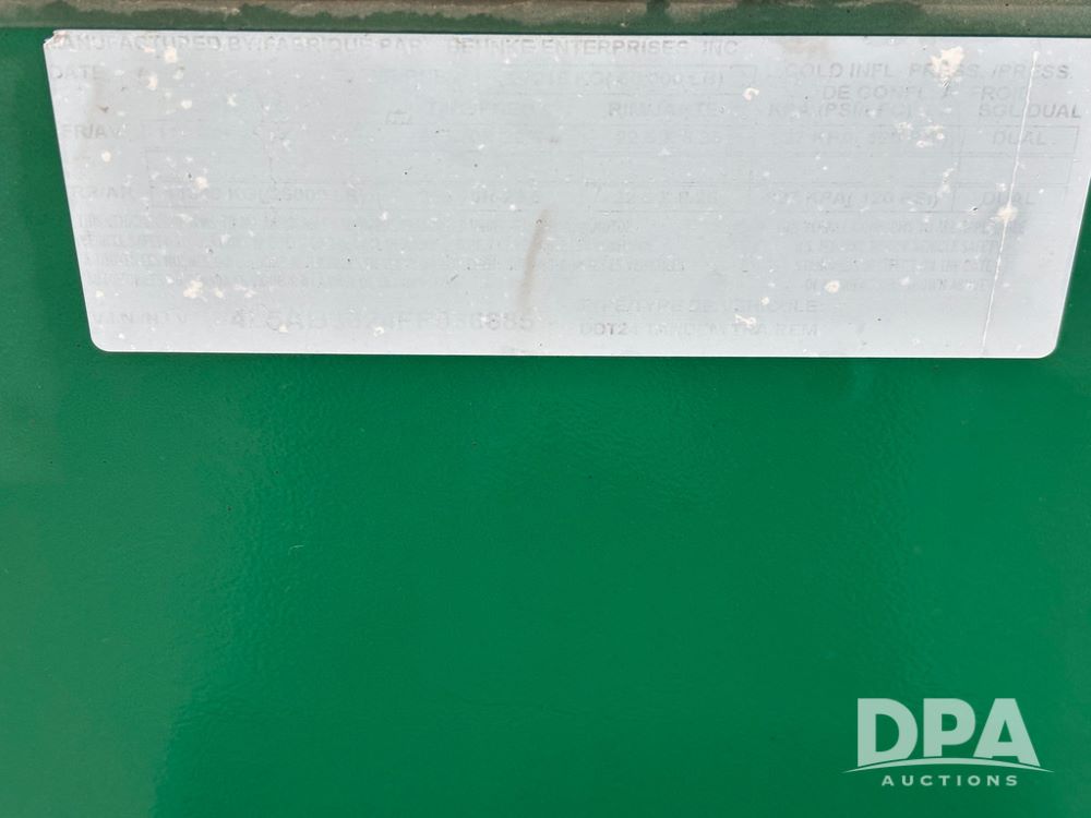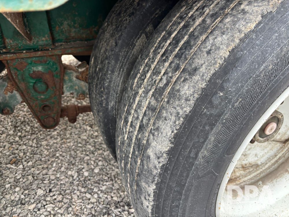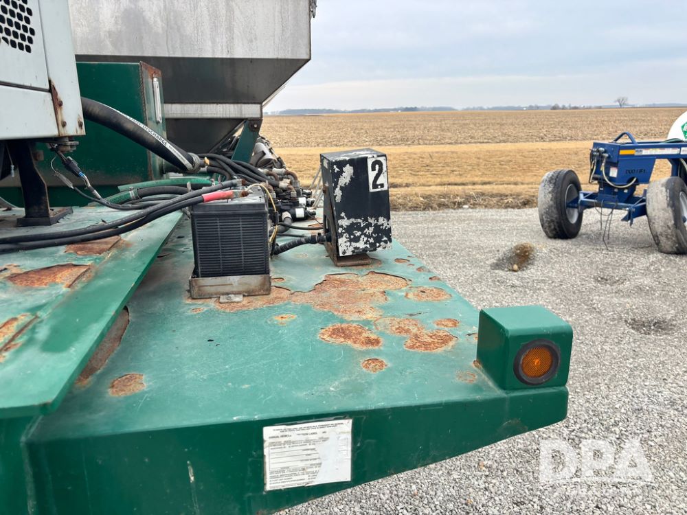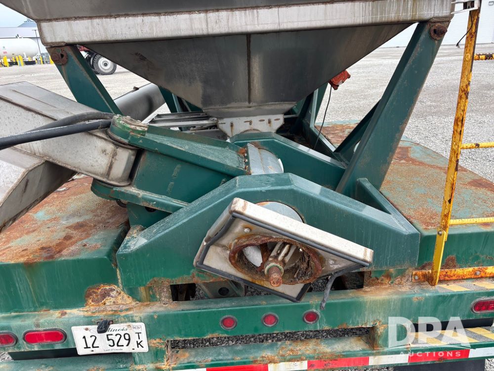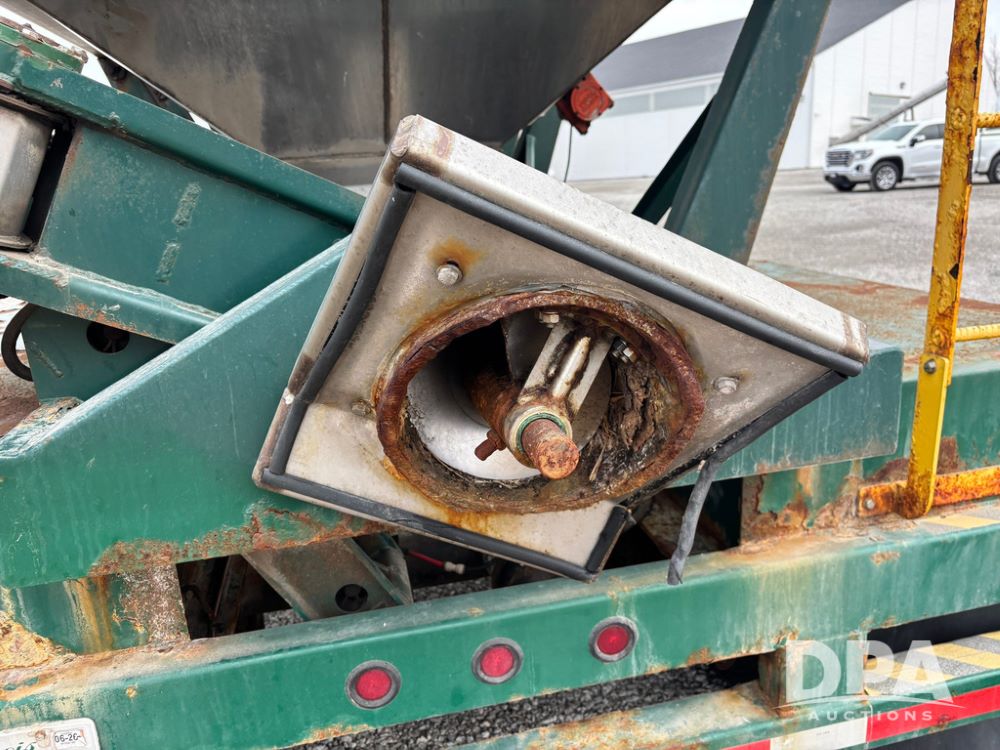 2015 B-B Dry Tender Trailer (GP12765), 2015 Doyle 24 ton stainless steel dry tender box, side discharge auger, self contained diesel engine, shows 718 hours, hopper vibrators, roll over tarp, 2015 B-B trailer, tandem axle, spring suspension, 255/70R22.5 tires.