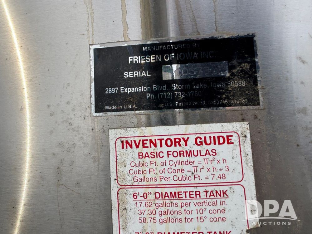 Friesen Liquid Tank (GP12769), Friesen 2000 gallon stainless steel vertical liquid tank, stainless steel stands, valve.