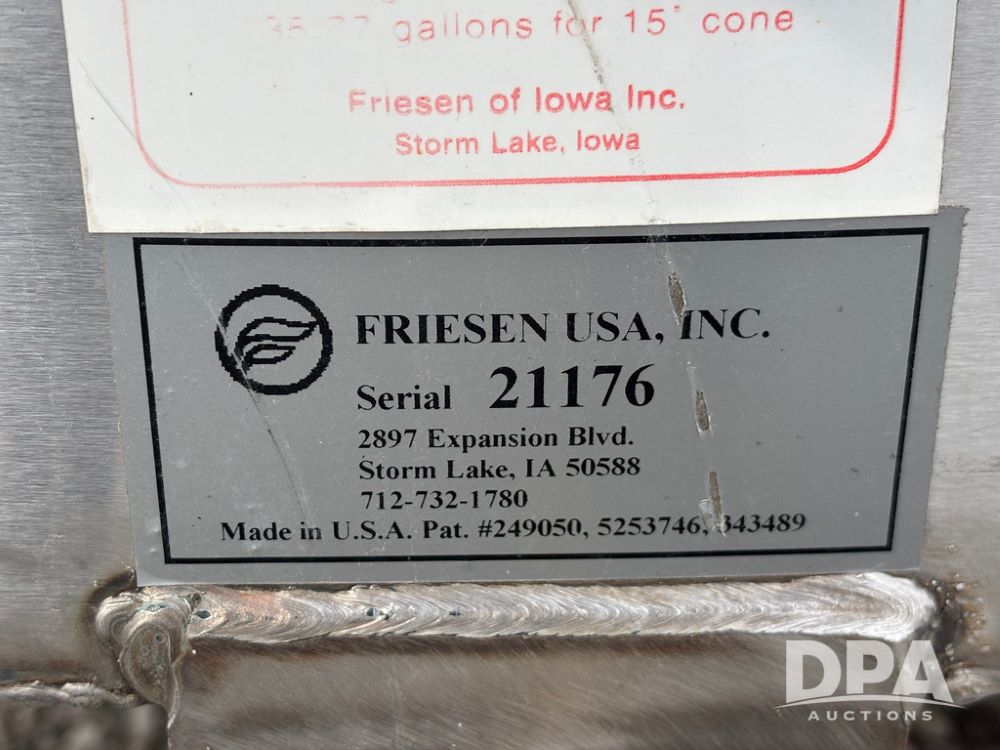 Friesen Liquid Tank (GP12770), Friesen 1600 gallon stainless steel vertical liquid tank, stainless steel stands, valve.
