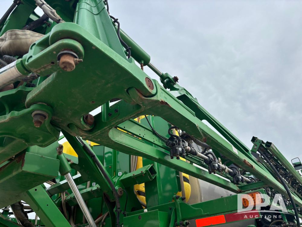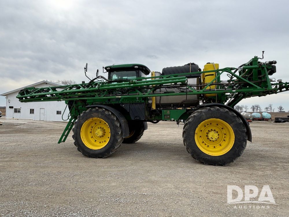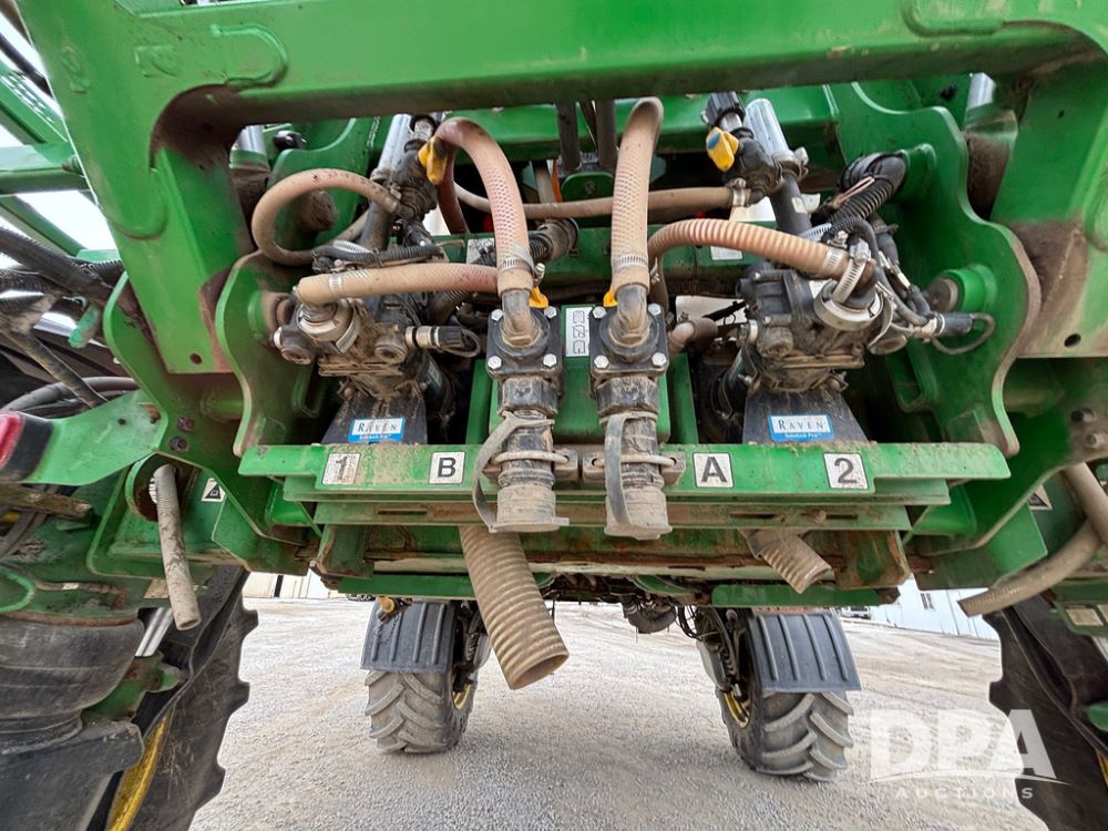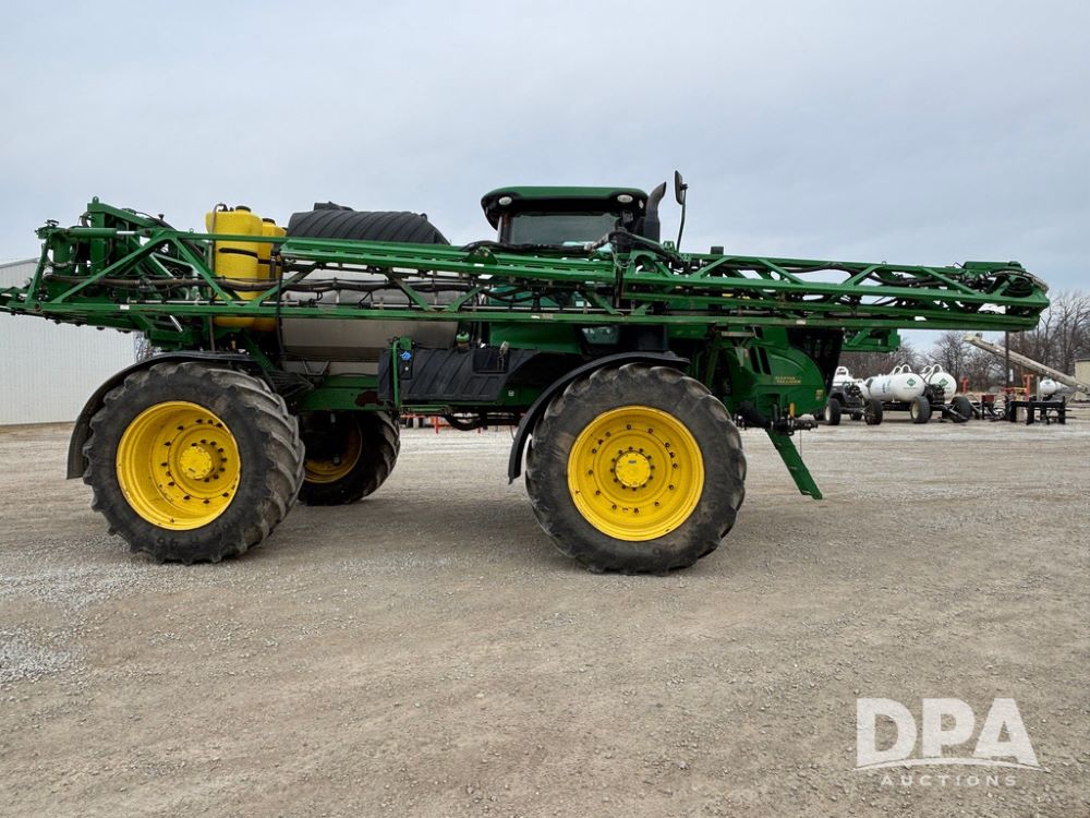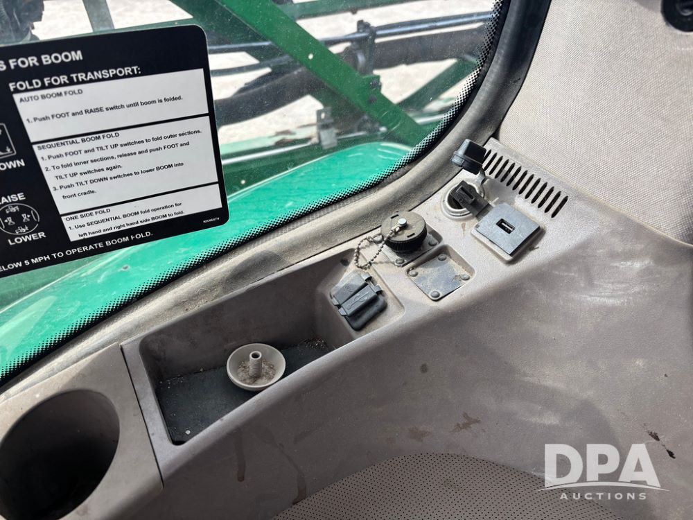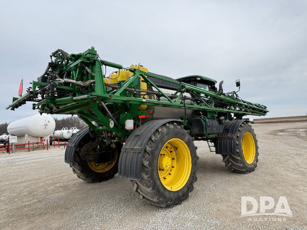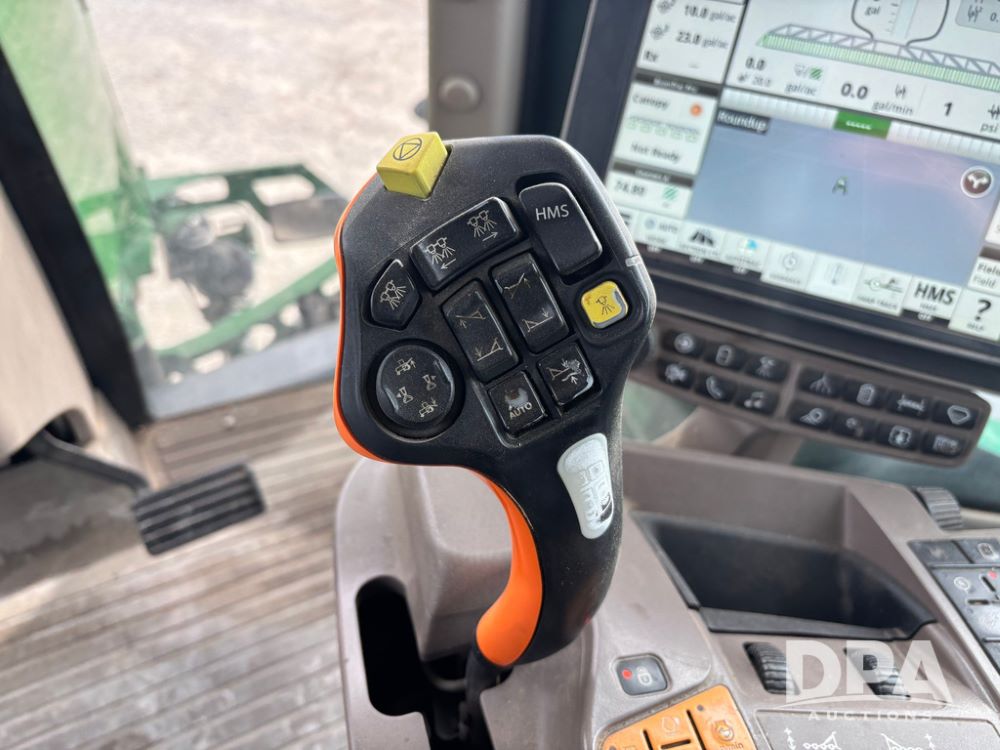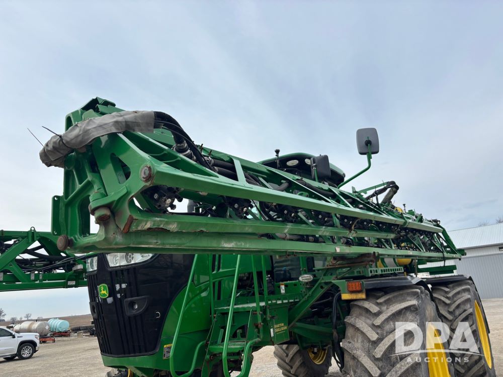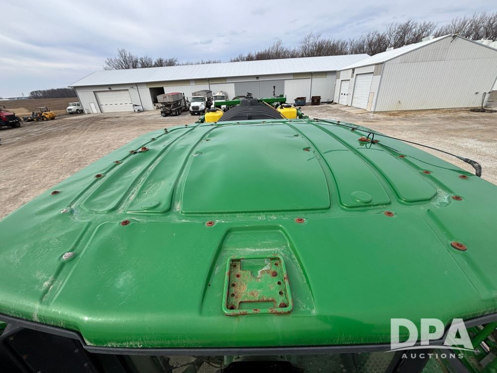 2020 John Deere R4045 Sprayer (GP12780), John Deere diesel engine (S/N RG6090U078479), hydrostatic transmission, air conditioning, heat, Am/Fm radio, leather seat buddy seat, 1200 gallon stainless steel liquid system, 120' boom, top poly rinse tank, 4 - 50 gallon poly direct injection tanks, 2 - Raven Sidekick Pro pumps, automatic solution control, front fill, Mitas SFT IF 710/65R46 flotation tires, fenders, John Deere monitor, shows 4,483 hours.