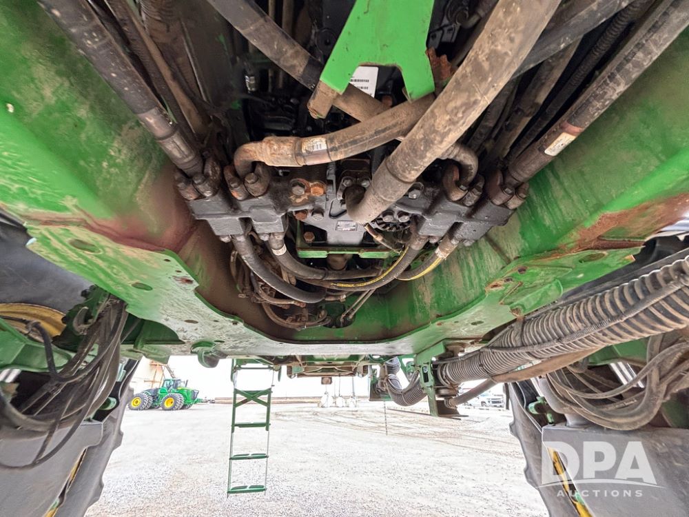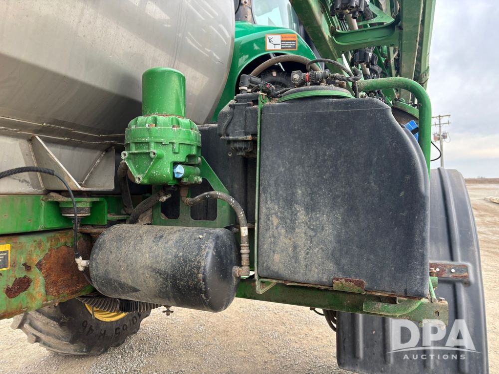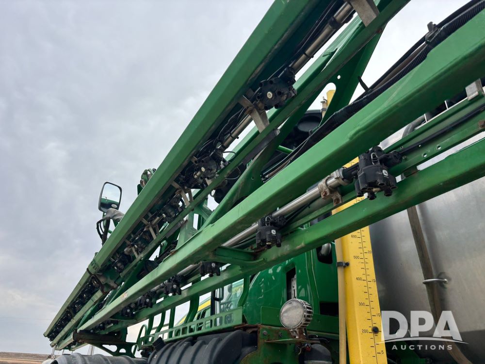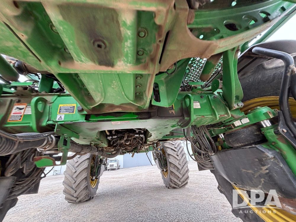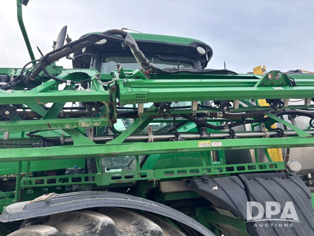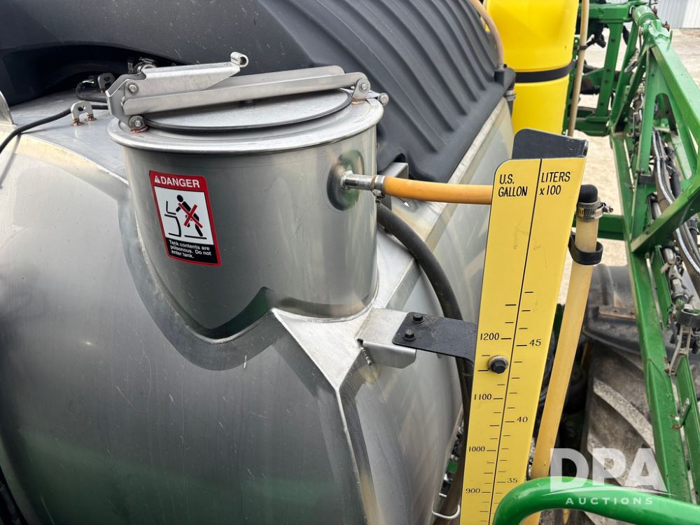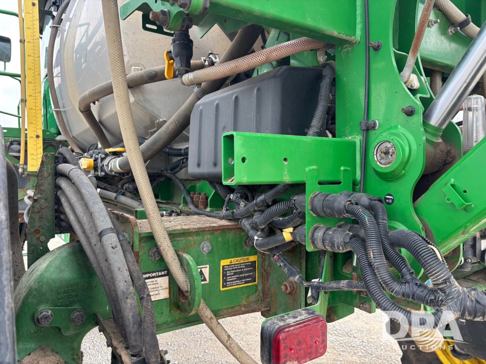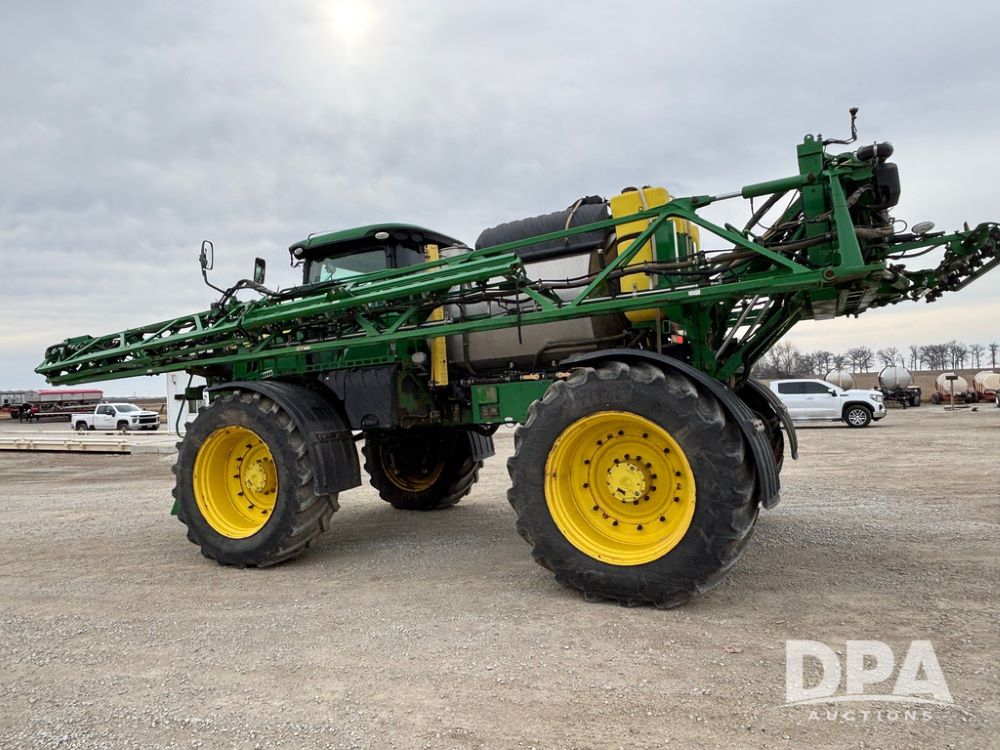 2020 John Deere R4045 Sprayer (GP12780), John Deere diesel engine (S/N RG6090U078479), hydrostatic transmission, air conditioning, heat, Am/Fm radio, leather seat buddy seat, 1200 gallon stainless steel liquid system, 120' boom, top poly rinse tank, 4 - 50 gallon poly direct injection tanks, 2 - Raven Sidekick Pro pumps, automatic solution control, front fill, Mitas SFT IF 710/65R46 flotation tires, fenders, John Deere monitor, shows 4,483 hours.