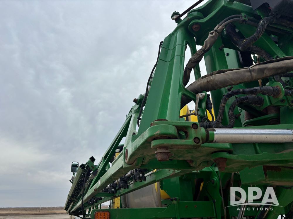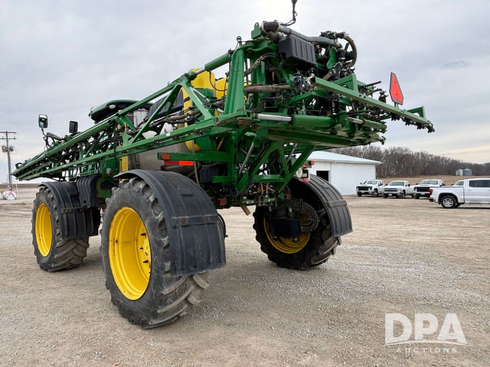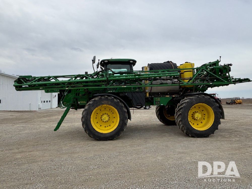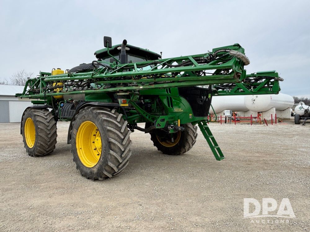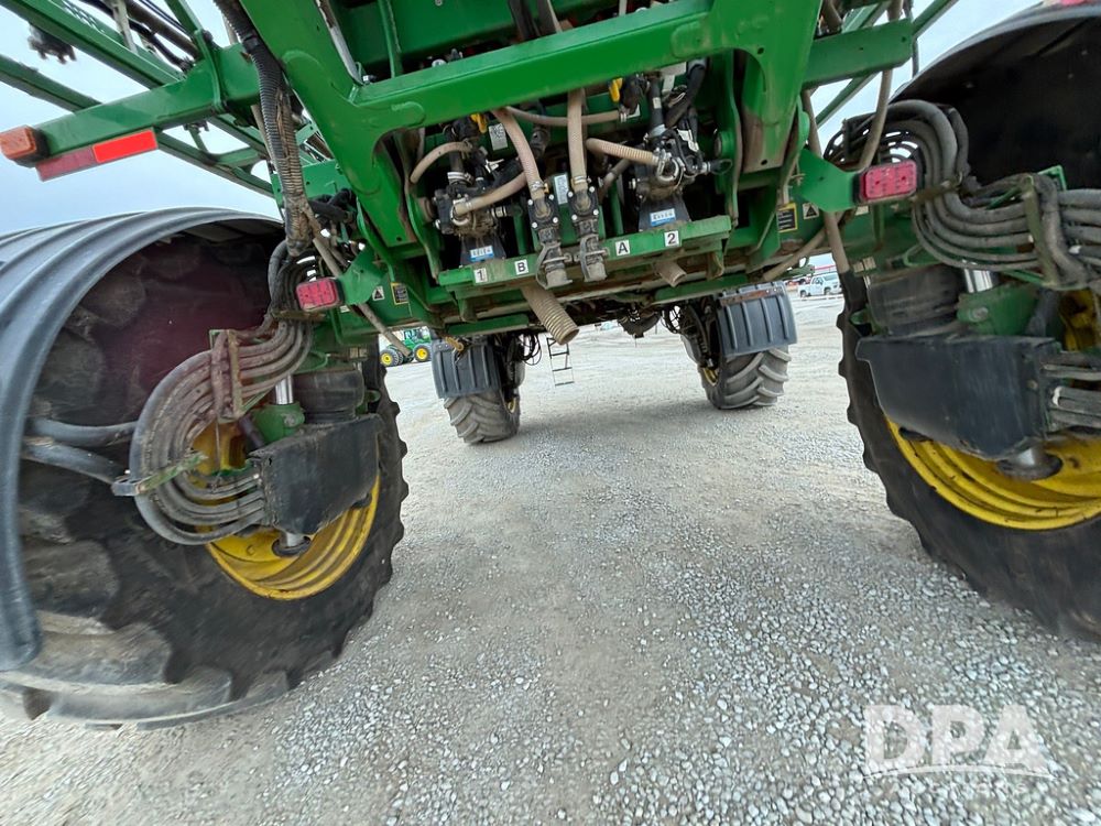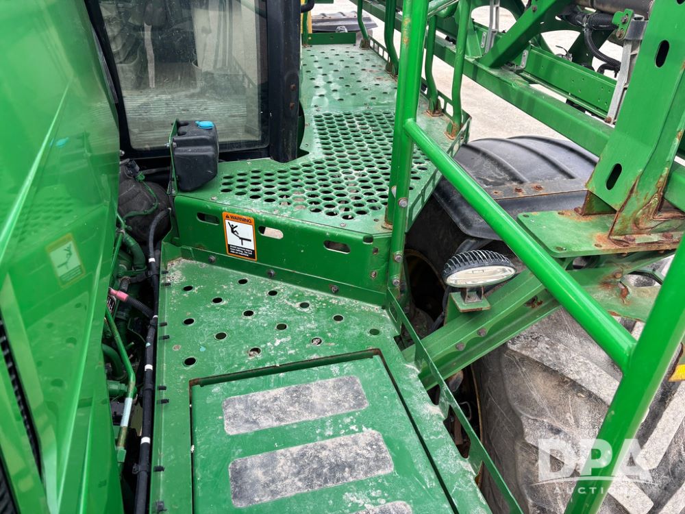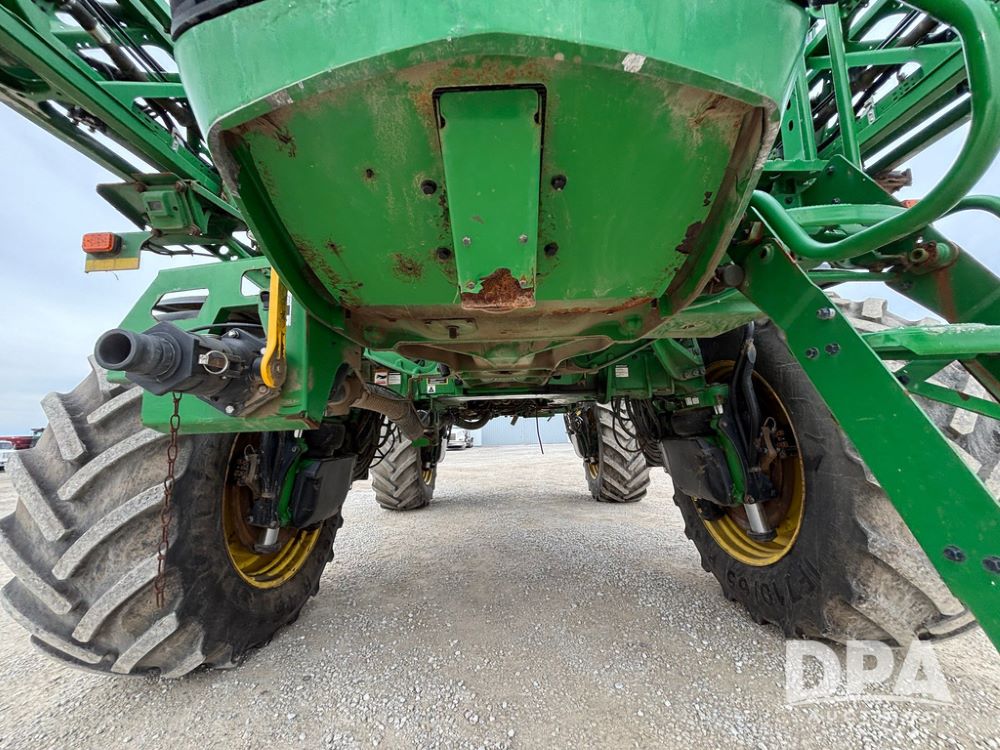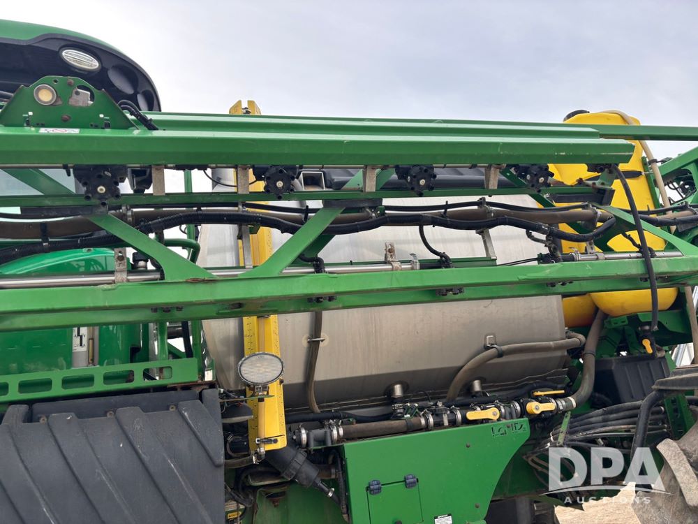 2020 John Deere R4045 Sprayer (GP12780), John Deere diesel engine (S/N RG6090U078479), hydrostatic transmission, air conditioning, heat, Am/Fm radio, leather seat buddy seat, 1200 gallon stainless steel liquid system, 120' boom, top poly rinse tank, 4 - 50 gallon poly direct injection tanks, 2 - Raven Sidekick Pro pumps, automatic solution control, front fill, Mitas SFT IF 710/65R46 flotation tires, fenders, John Deere monitor, shows 4,483 hours.