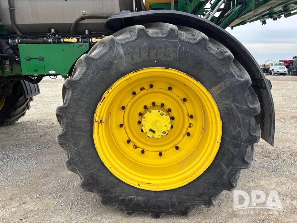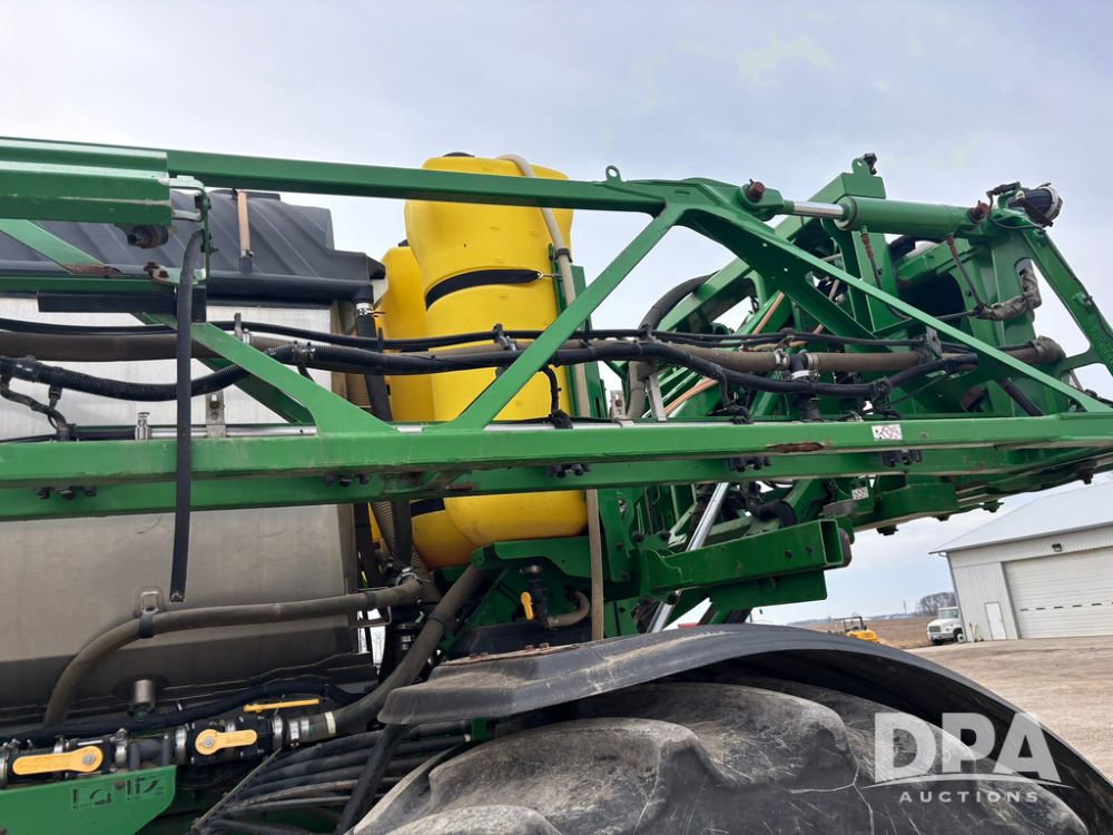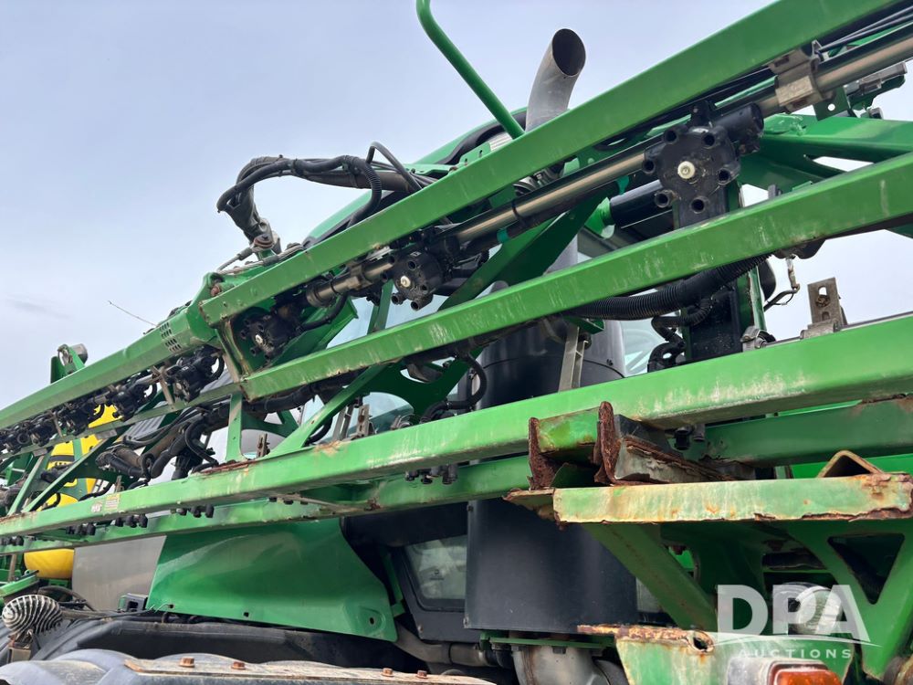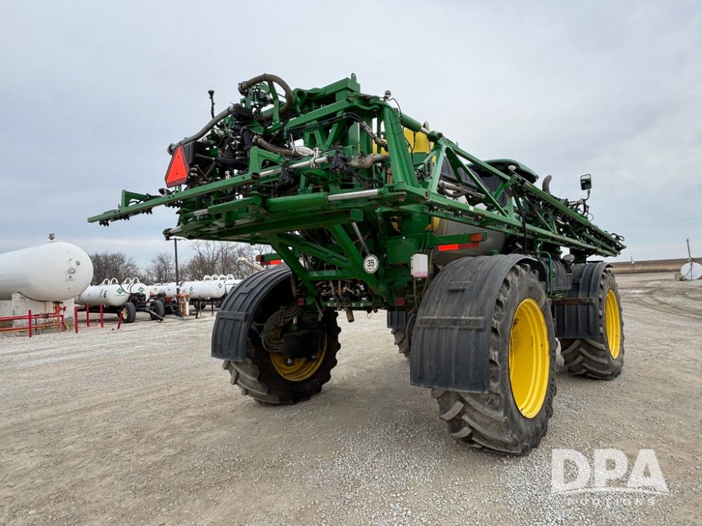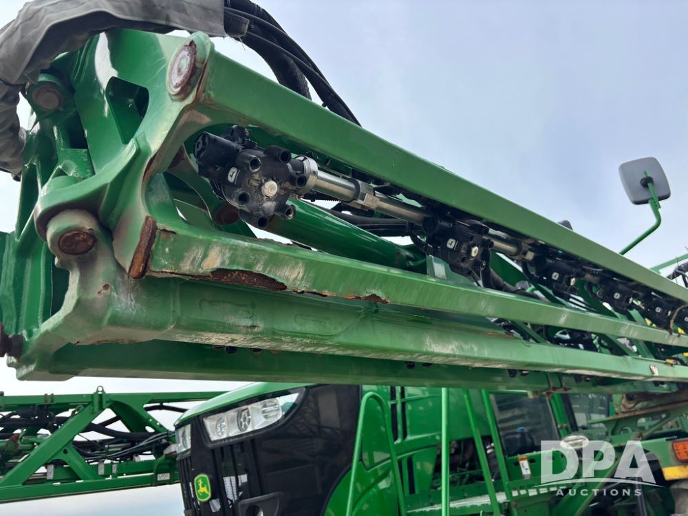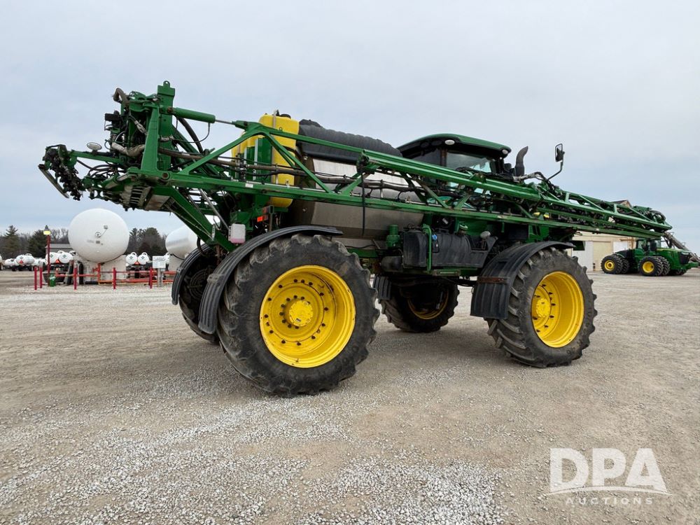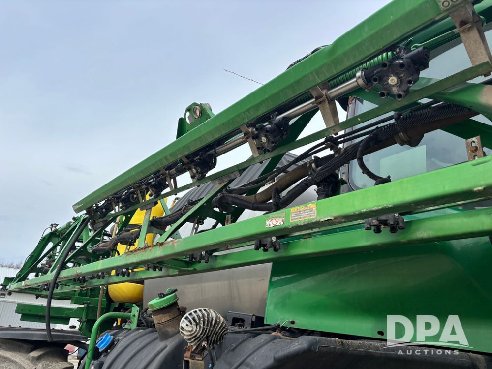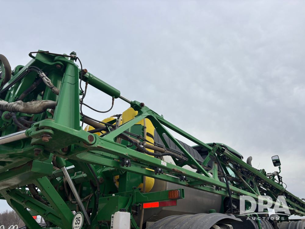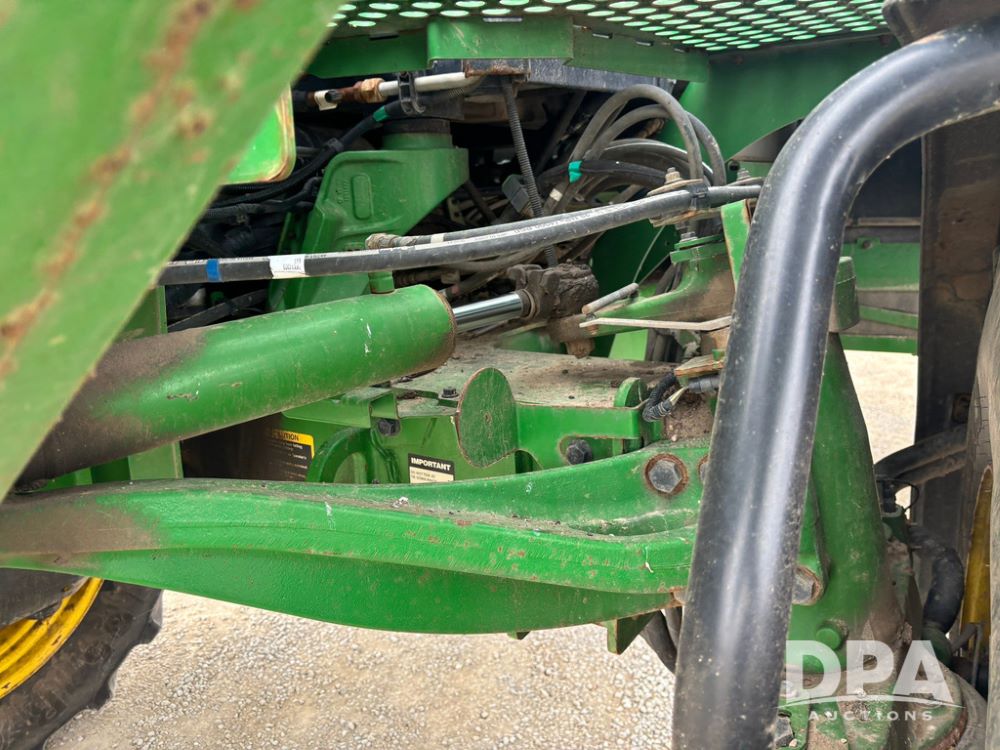 2020 John Deere R4045 Sprayer (GP12780), John Deere diesel engine (S/N RG6090U078479), hydrostatic transmission, air conditioning, heat, Am/Fm radio, leather seat buddy seat, 1200 gallon stainless steel liquid system, 120' boom, top poly rinse tank, 4 - 50 gallon poly direct injection tanks, 2 - Raven Sidekick Pro pumps, automatic solution control, front fill, Mitas SFT IF 710/65R46 flotation tires, fenders, John Deere monitor, shows 4,483 hours.