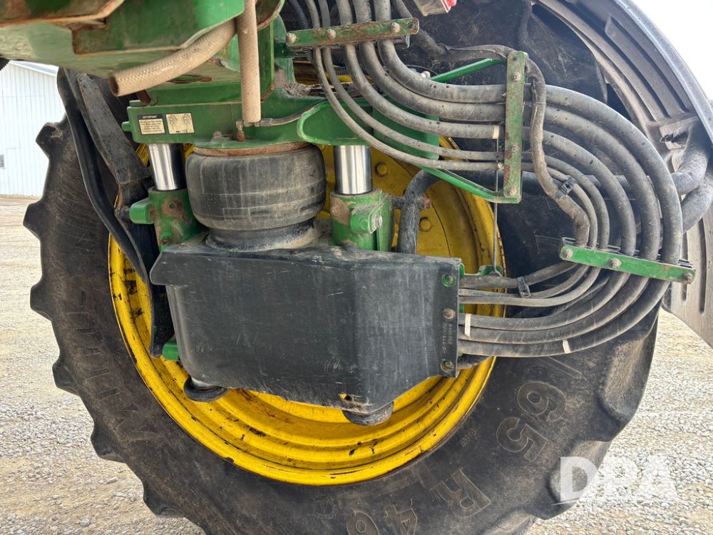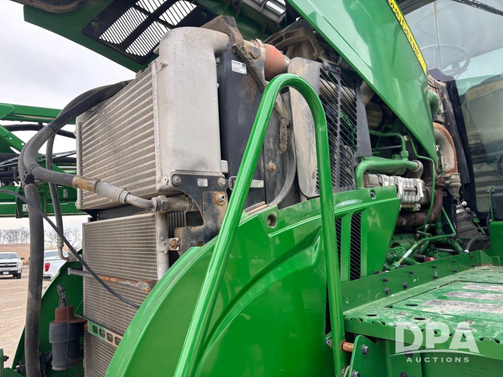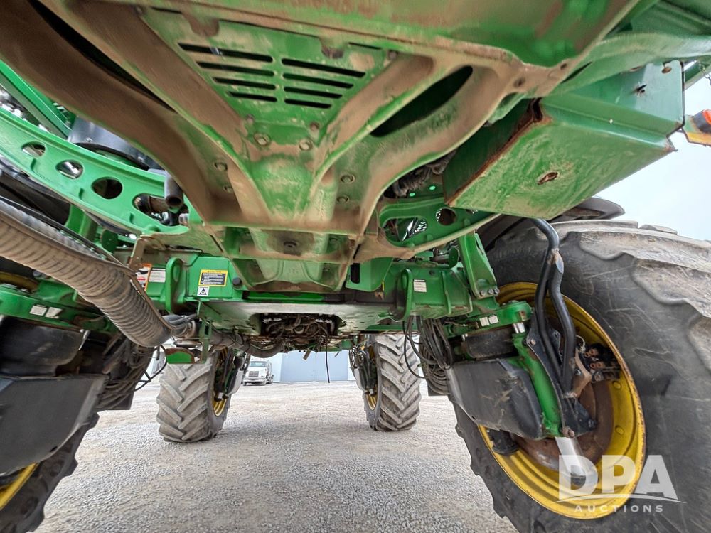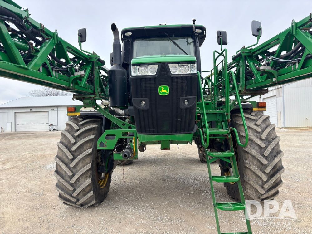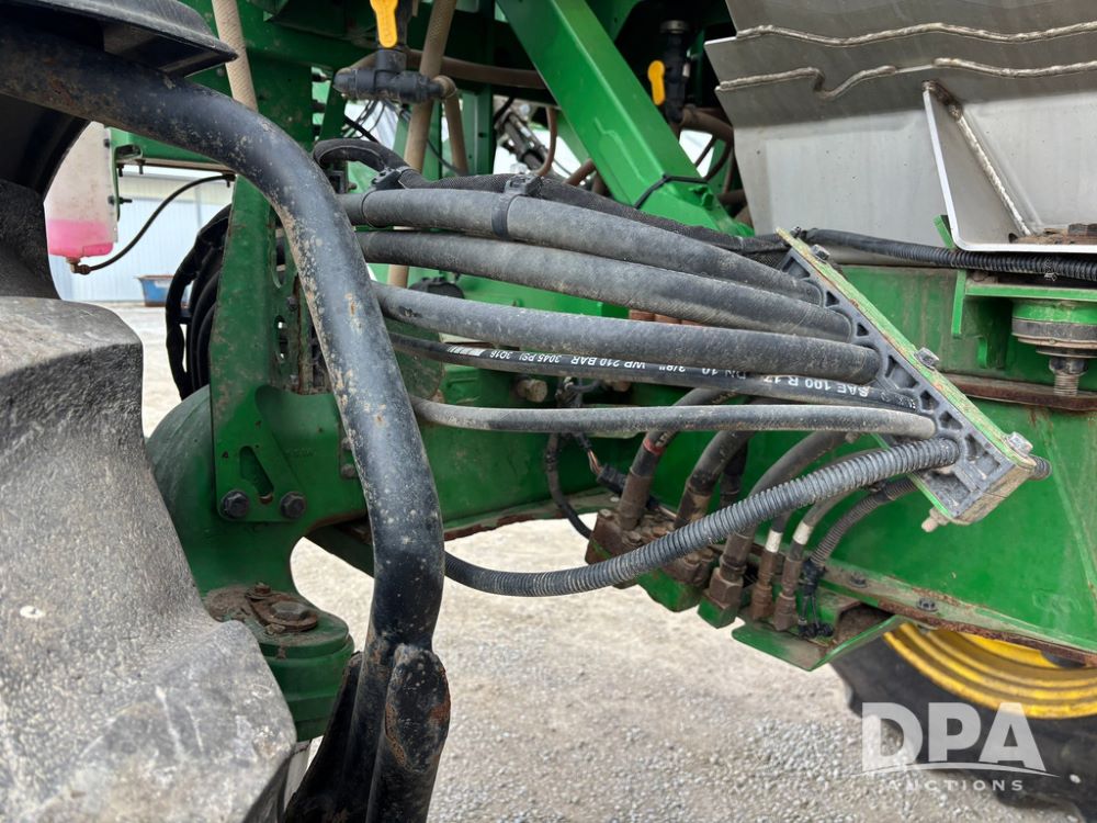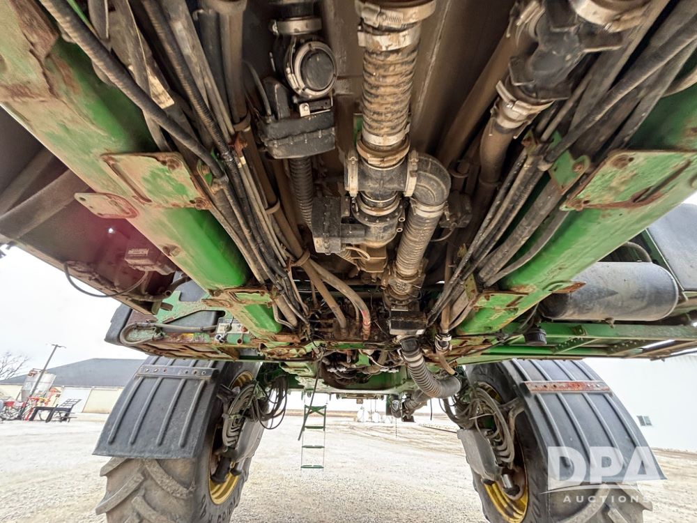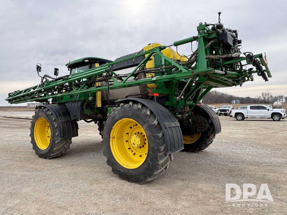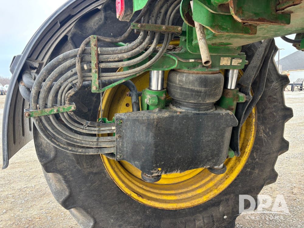 2020 John Deere R4045 Sprayer (GP12780), John Deere diesel engine (S/N RG6090U078479), hydrostatic transmission, air conditioning, heat, Am/Fm radio, leather seat buddy seat, 1200 gallon stainless steel liquid system, 120' boom, top poly rinse tank, 4 - 50 gallon poly direct injection tanks, 2 - Raven Sidekick Pro pumps, automatic solution control, front fill, Mitas SFT IF 710/65R46 flotation tires, fenders, John Deere monitor, shows 4,483 hours.
