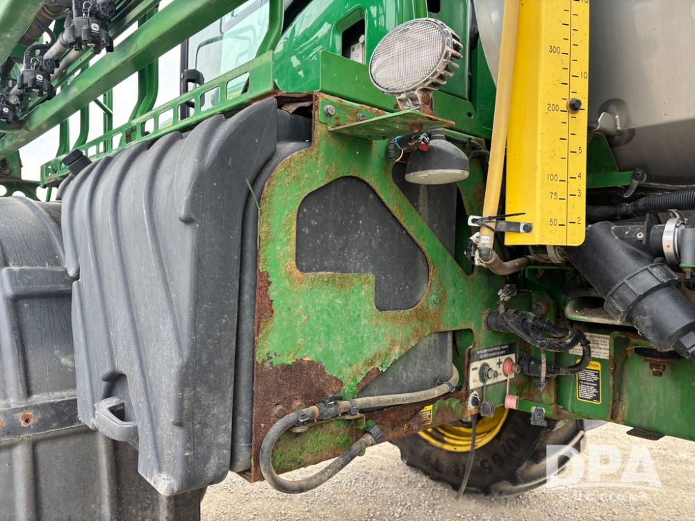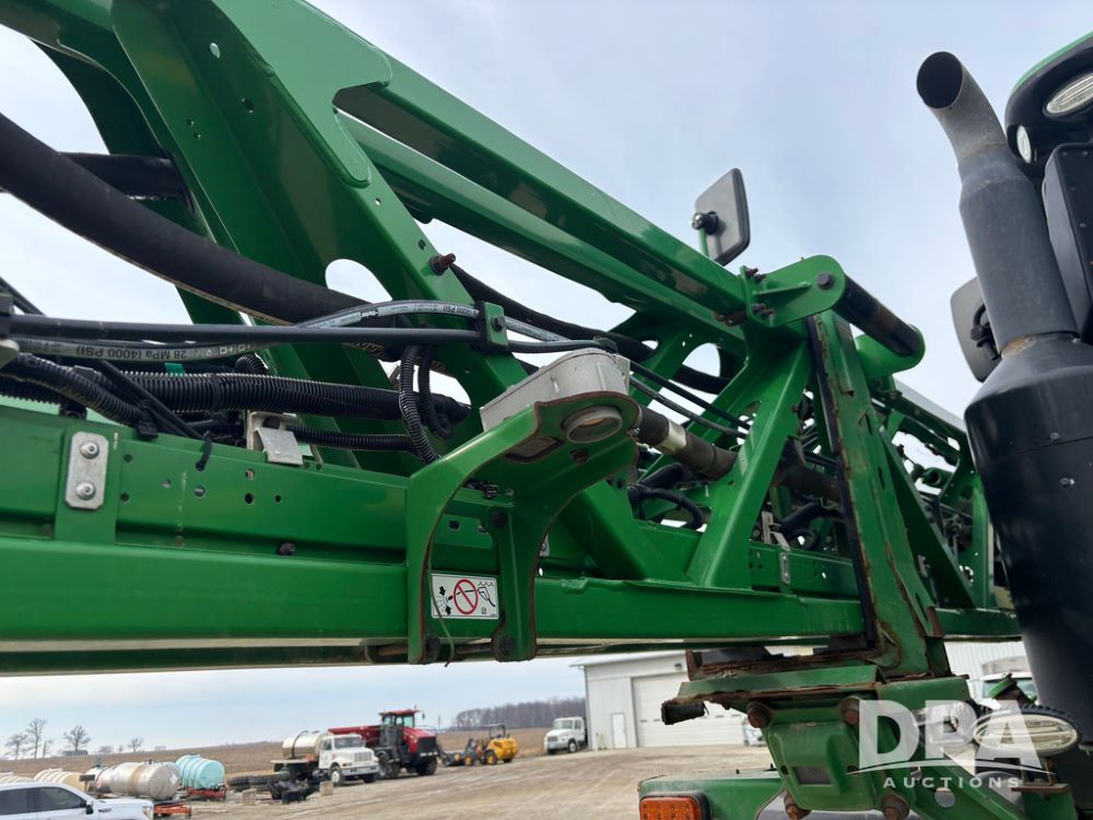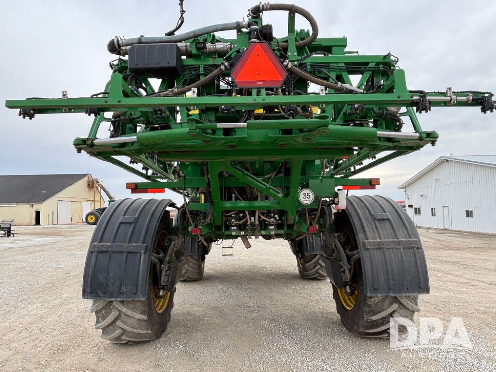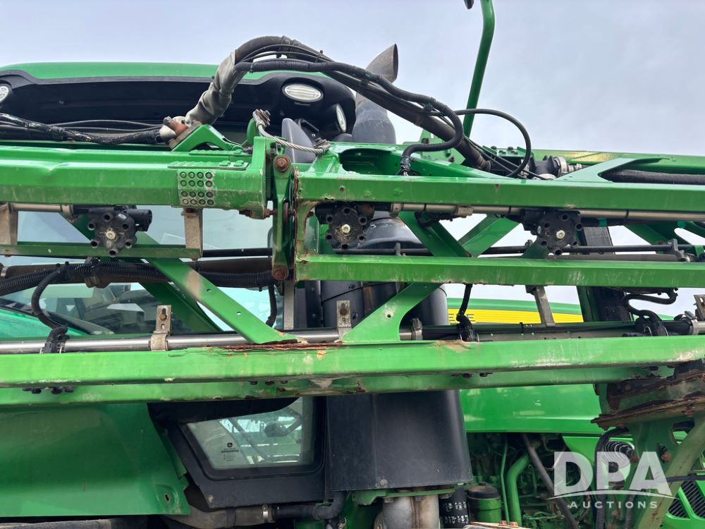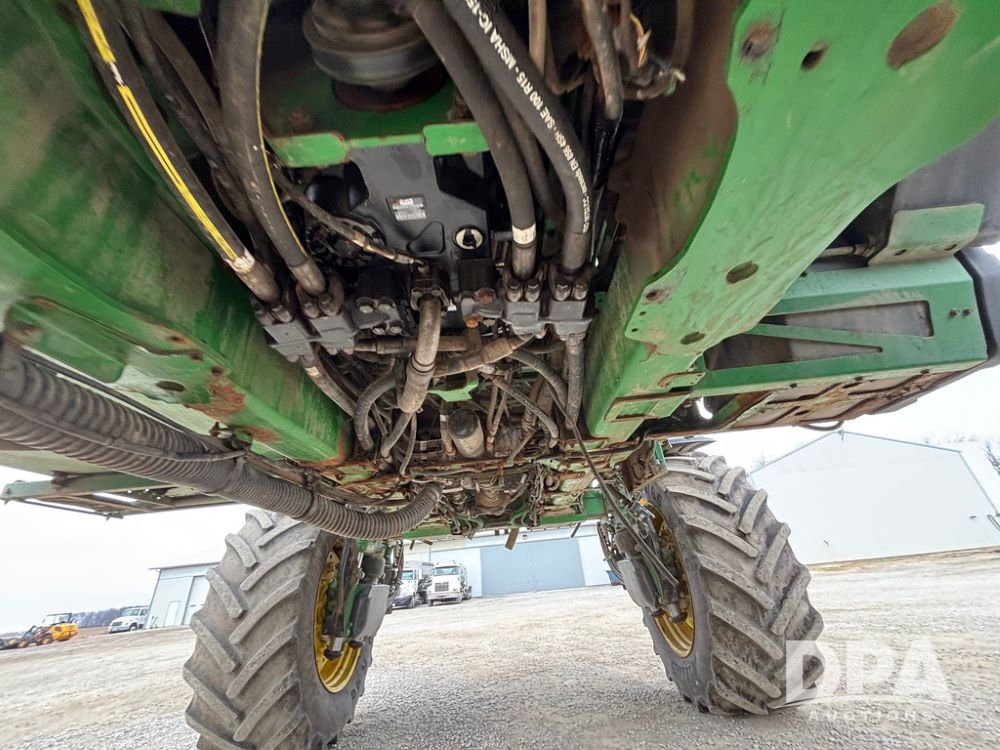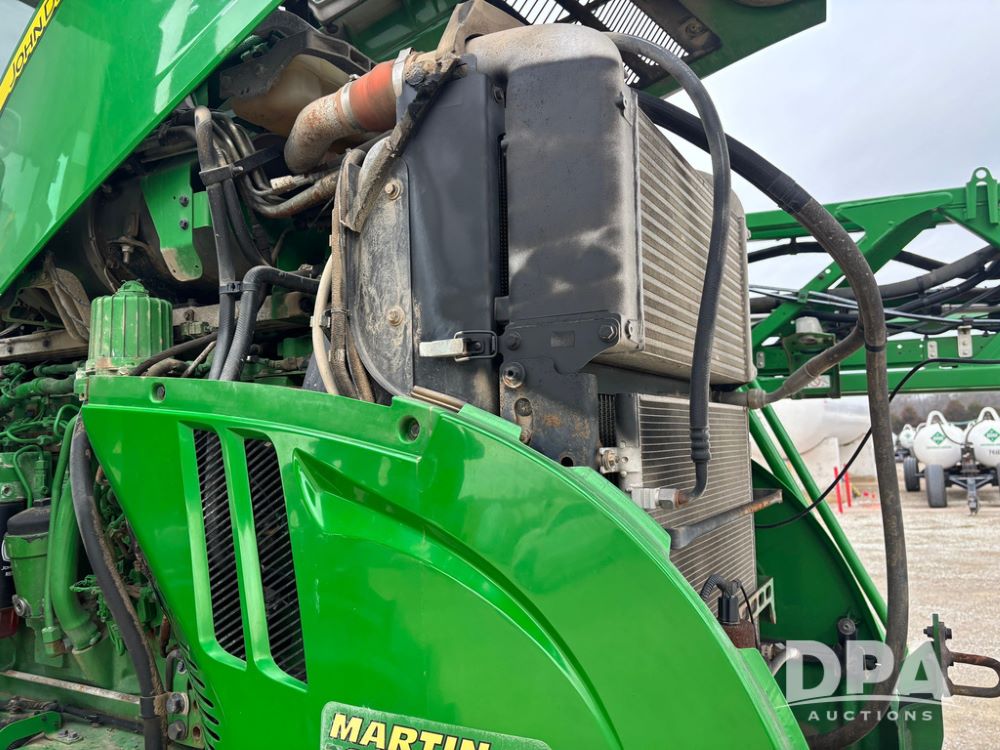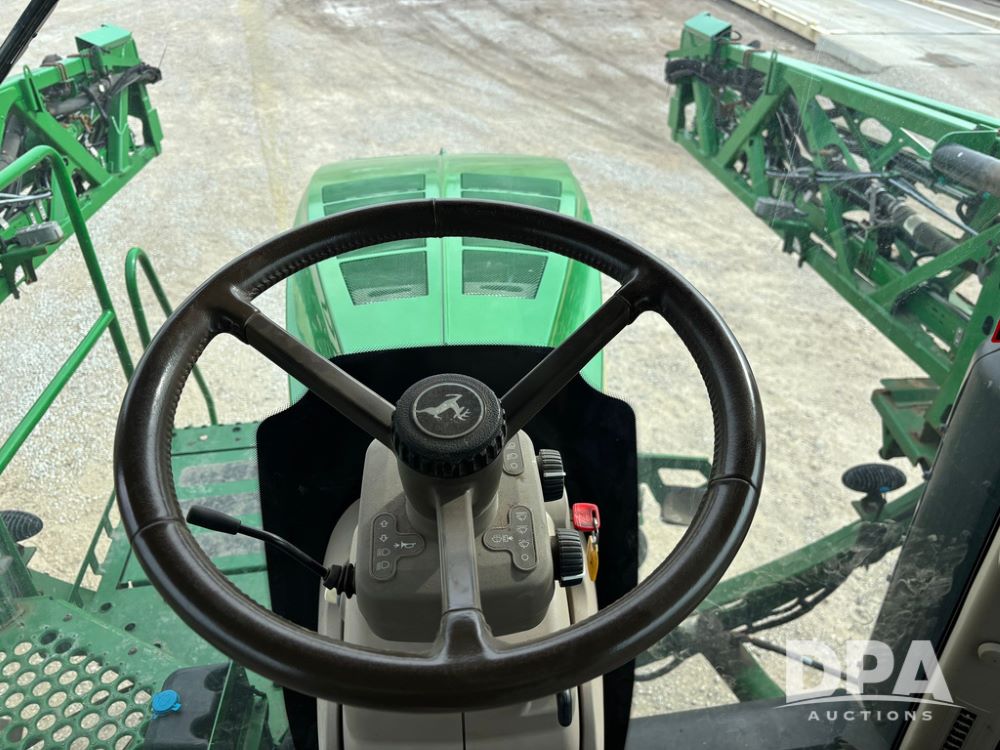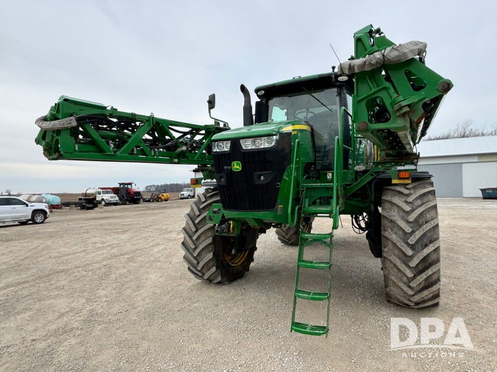 2020 John Deere R4045 Sprayer (GP12780), John Deere diesel engine (S/N RG6090U078479), hydrostatic transmission, air conditioning, heat, Am/Fm radio, leather seat buddy seat, 1200 gallon stainless steel liquid system, 120' boom, top poly rinse tank, 4 - 50 gallon poly direct injection tanks, 2 - Raven Sidekick Pro pumps, automatic solution control, front fill, Mitas SFT IF 710/65R46 flotation tires, fenders, John Deere monitor, shows 4,483 hours.