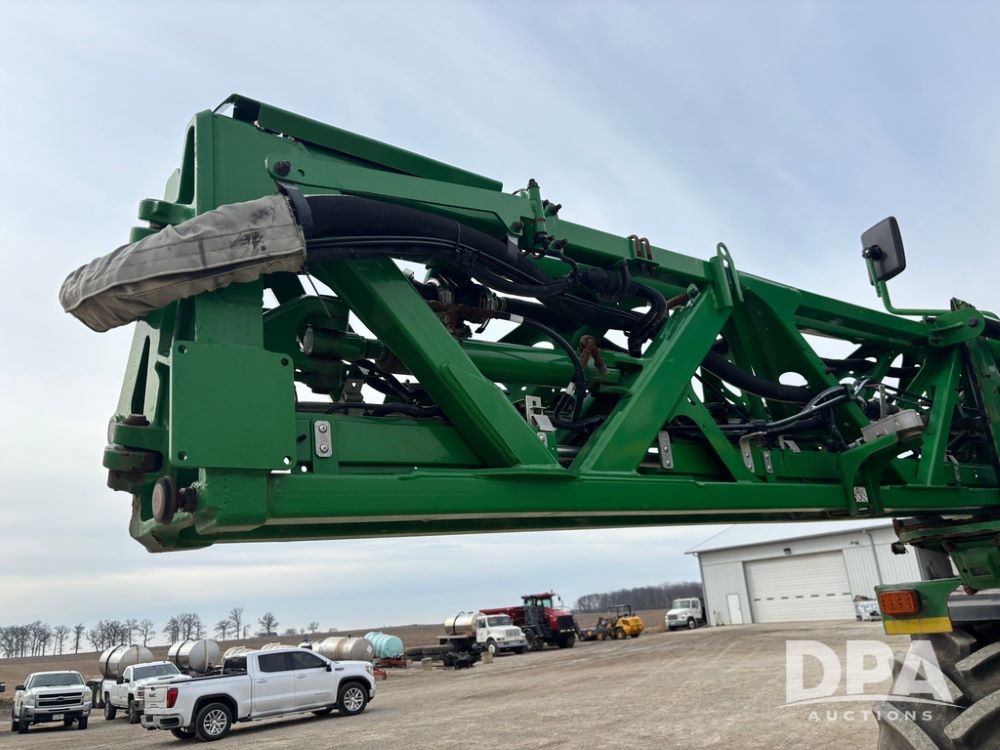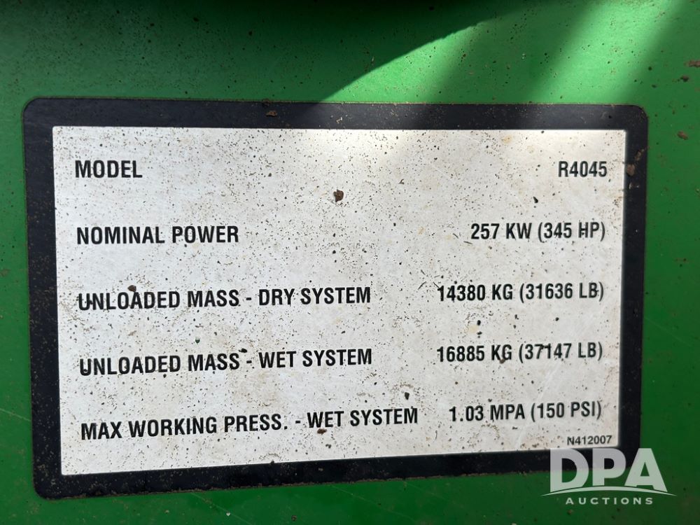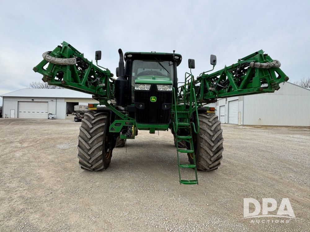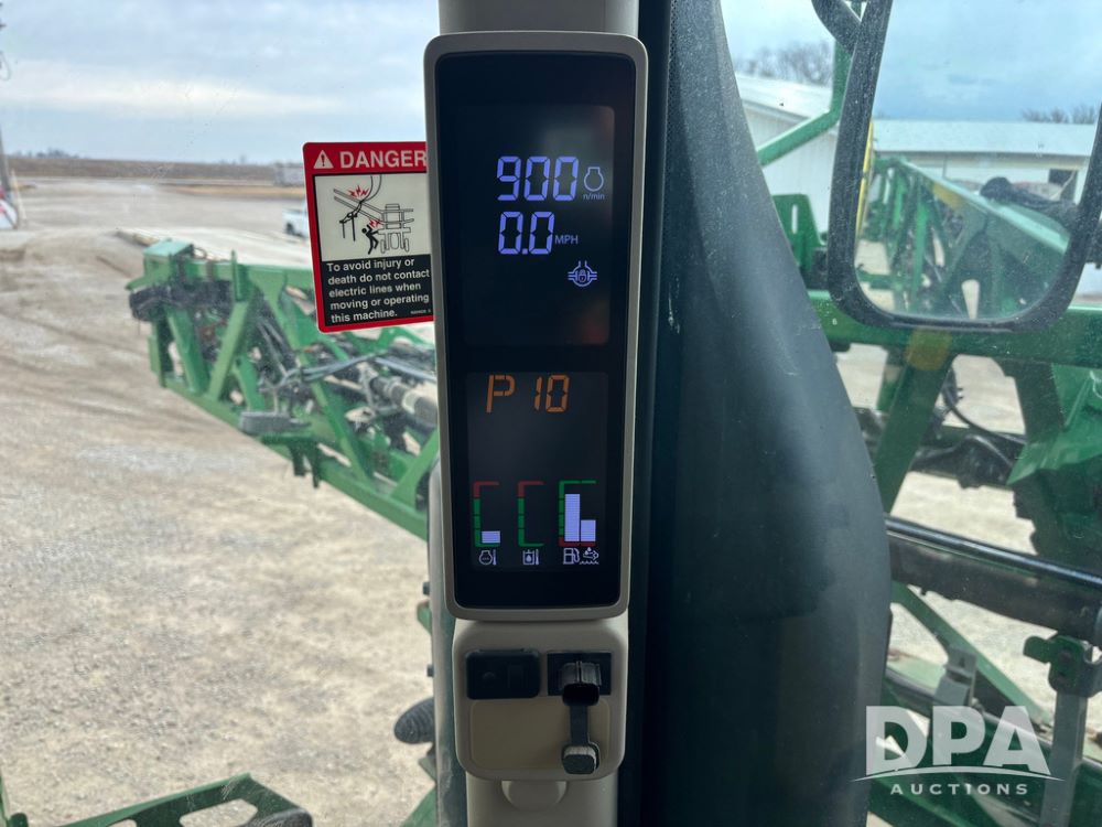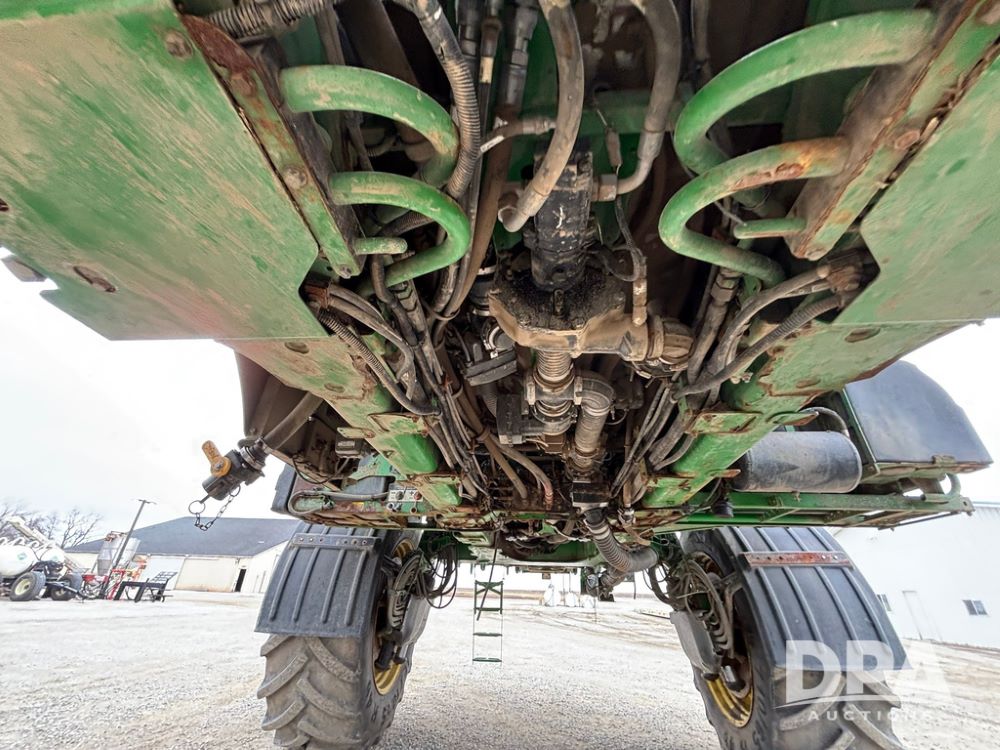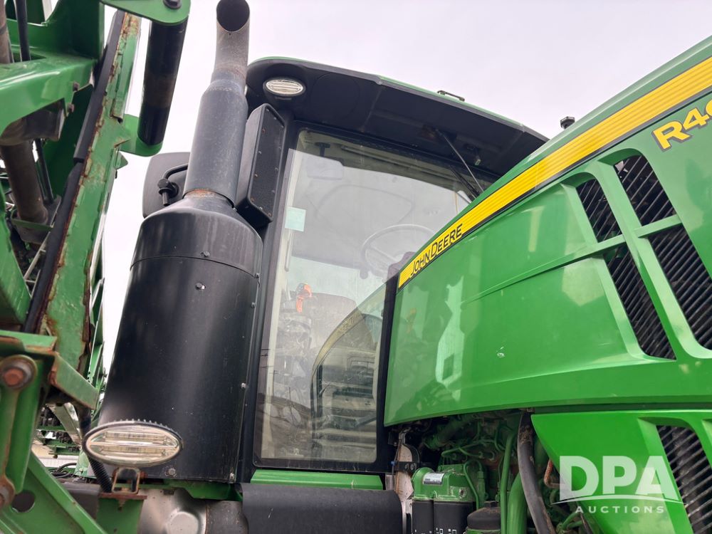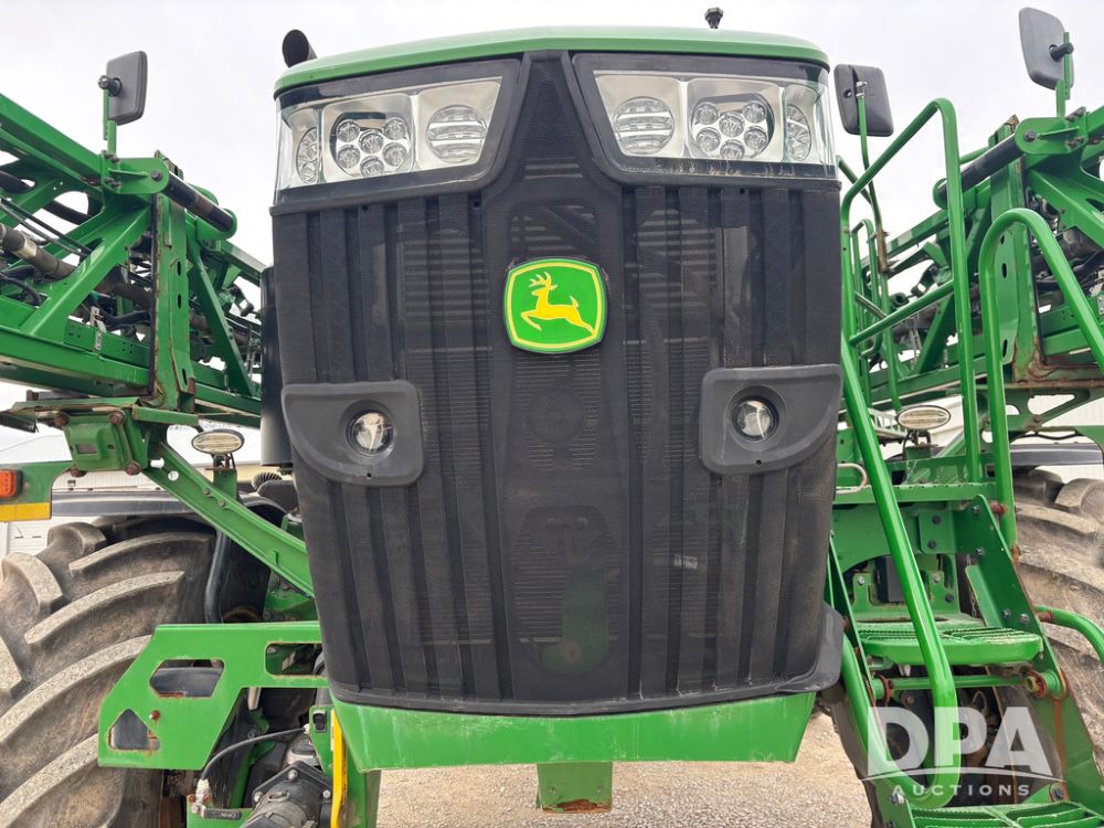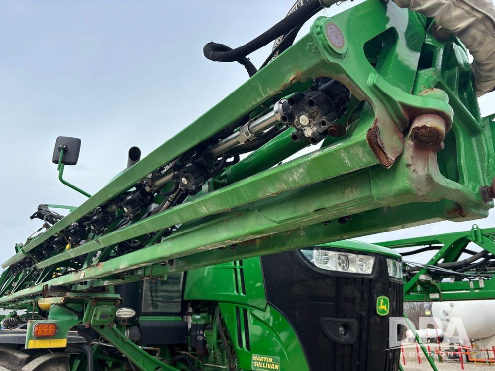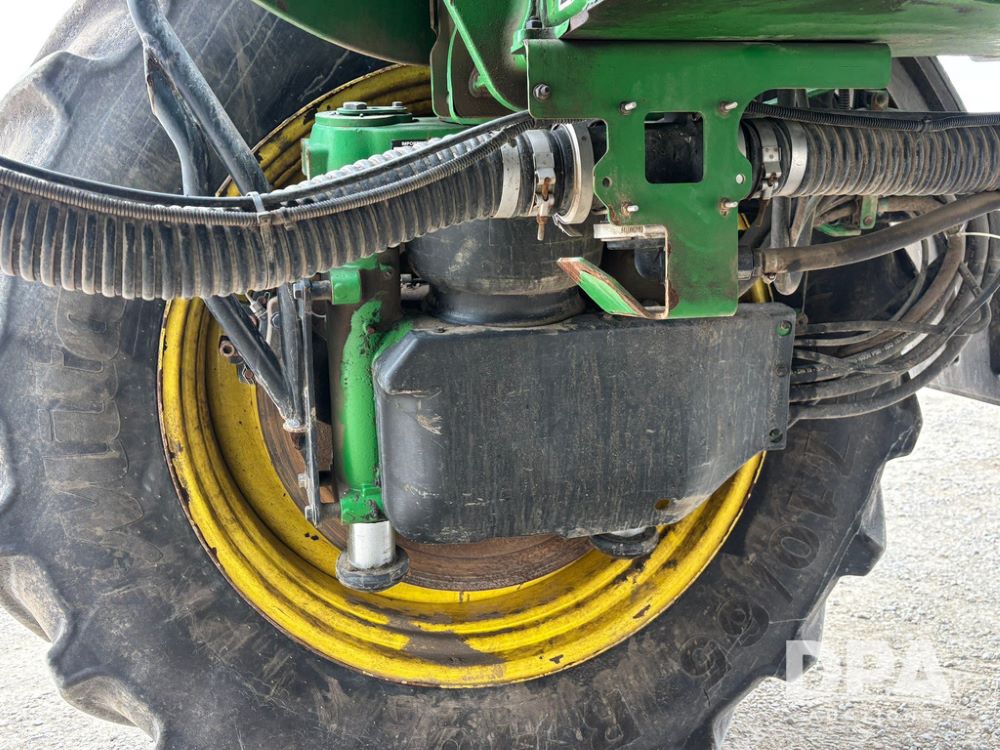 2020 John Deere R4045 Sprayer (GP12780), John Deere diesel engine (S/N RG6090U078479), hydrostatic transmission, air conditioning, heat, Am/Fm radio, leather seat buddy seat, 1200 gallon stainless steel liquid system, 120' boom, top poly rinse tank, 4 - 50 gallon poly direct injection tanks, 2 - Raven Sidekick Pro pumps, automatic solution control, front fill, Mitas SFT IF 710/65R46 flotation tires, fenders, John Deere monitor, shows 4,483 hours.