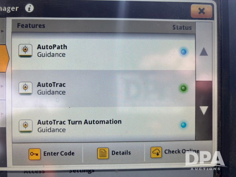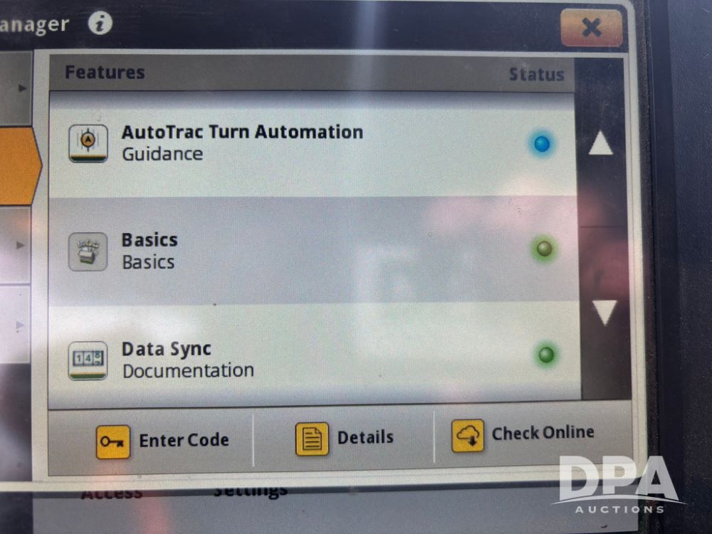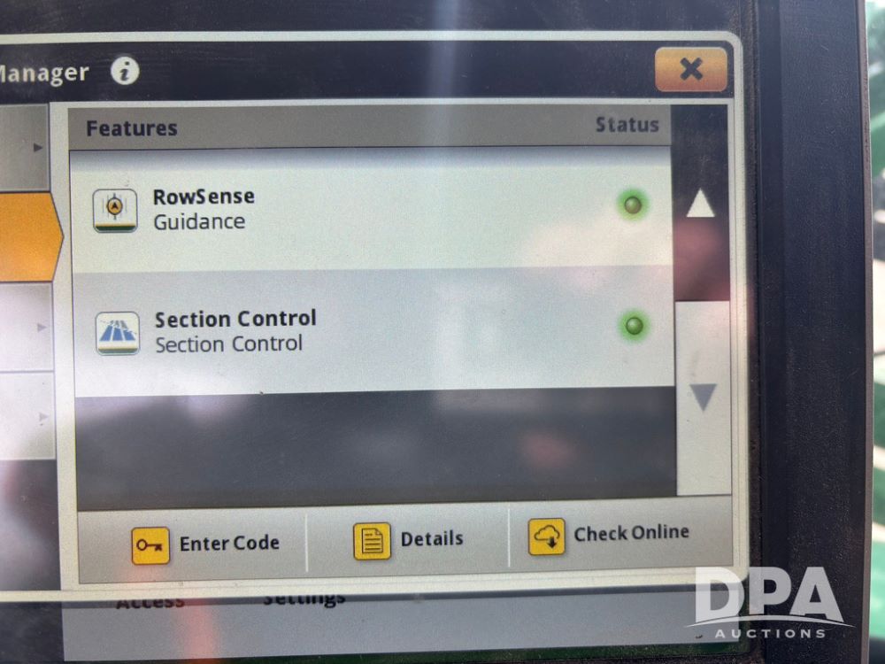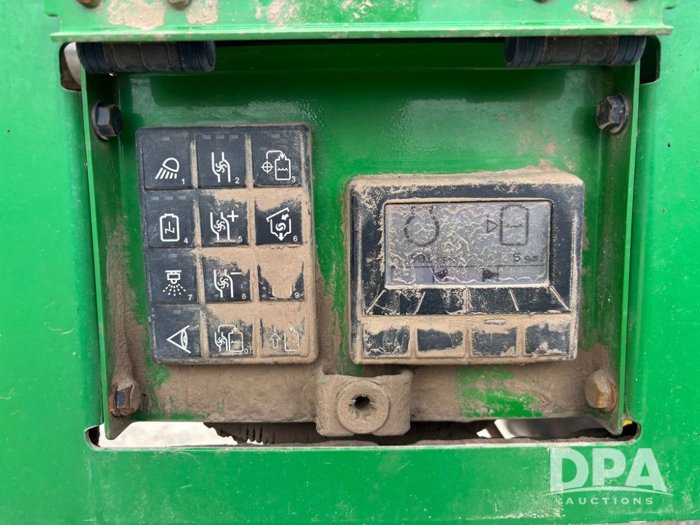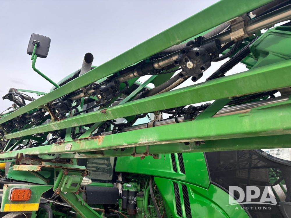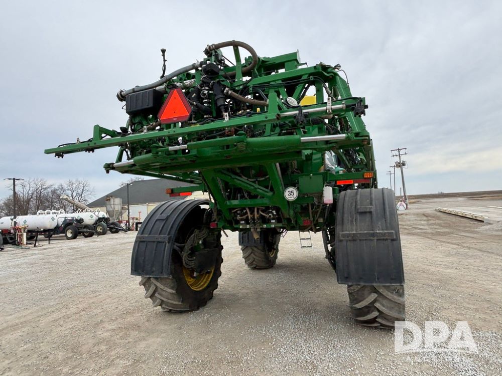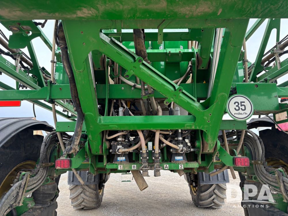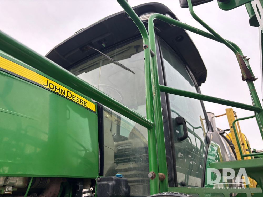 2020 John Deere R4045 Sprayer (GP12780), John Deere diesel engine (S/N RG6090U078479), hydrostatic transmission, air conditioning, heat, Am/Fm radio, leather seat buddy seat, 1200 gallon stainless steel liquid system, 120' boom, top poly rinse tank, 4 - 50 gallon poly direct injection tanks, 2 - Raven Sidekick Pro pumps, automatic solution control, front fill, Mitas SFT IF 710/65R46 flotation tires, fenders, John Deere monitor, shows 4,483 hours.