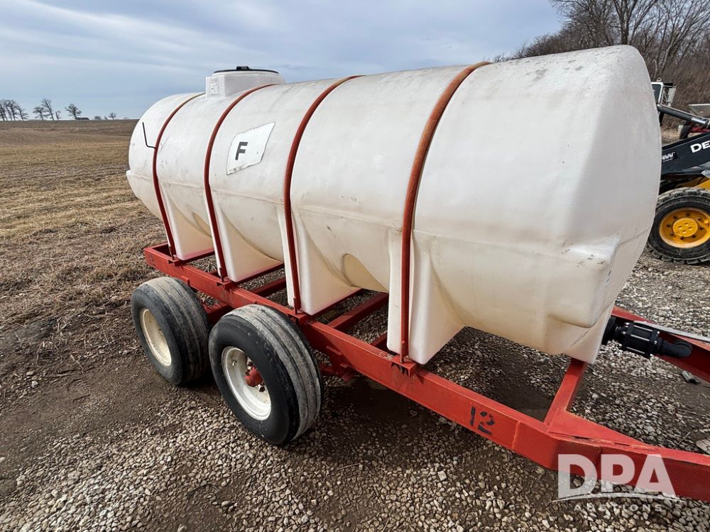 Liquid Nurse Tank (GP12778, Unit 12), 1000 gallon poly liquid nurse tank, tandem axle gear, 11L-15 flotation tires.