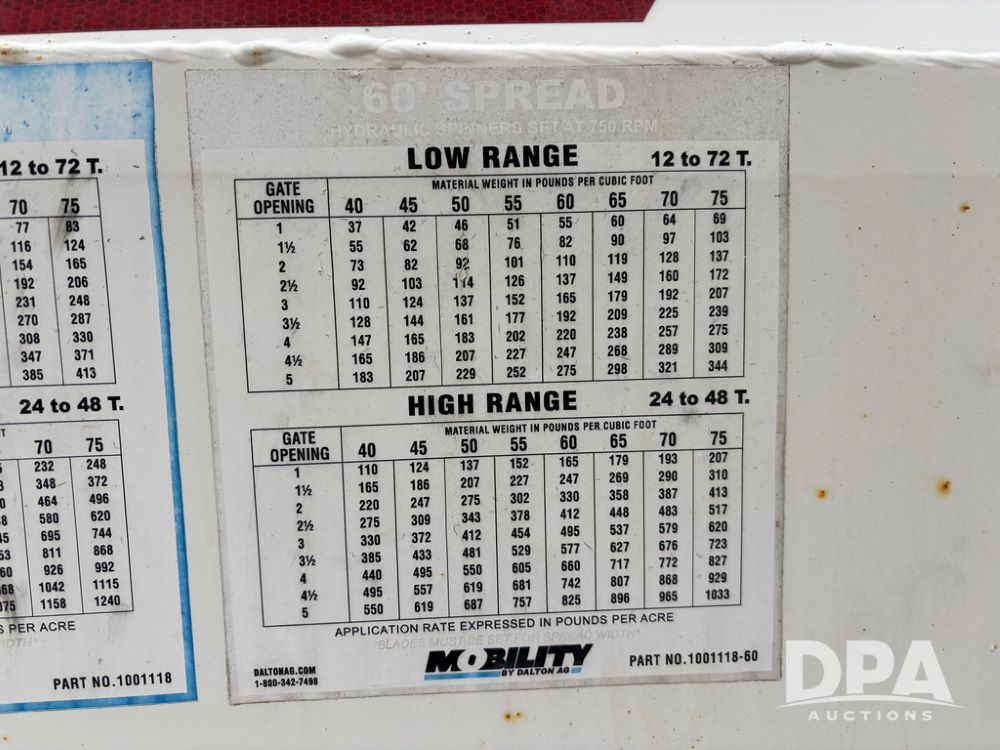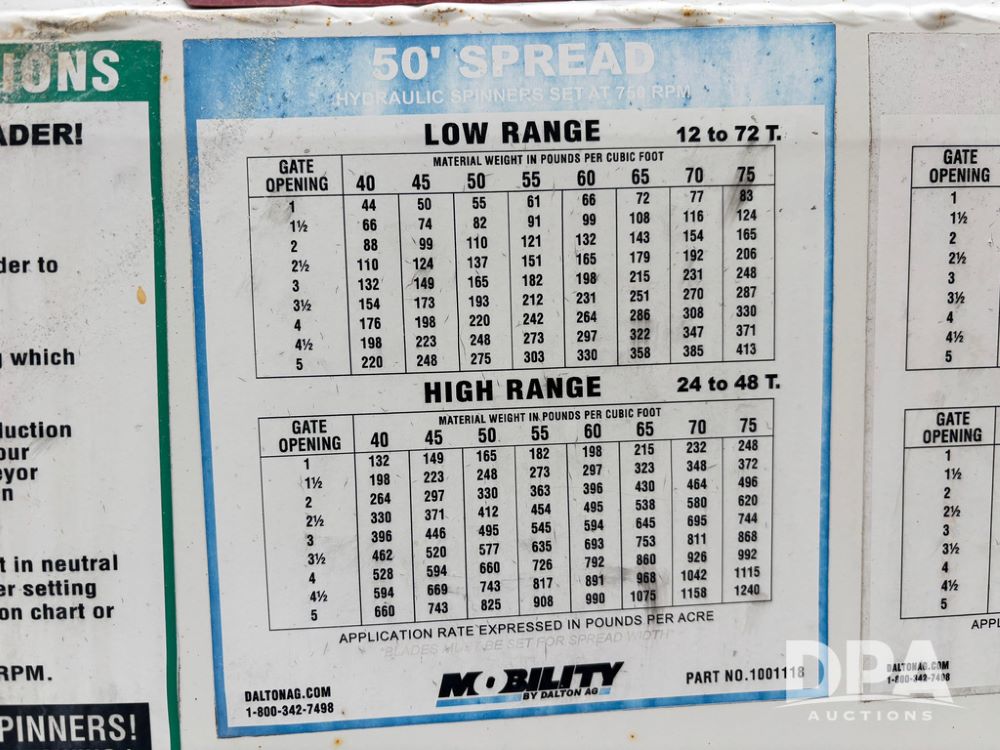 Mobility 800 Dry Spreader (GP12815), Mobility model 800 - ADJ High Clearance dry spreader, twin spinner, 540/1000 PTO, single axle, BKT Agrimax RT945 380/90R46 tires.