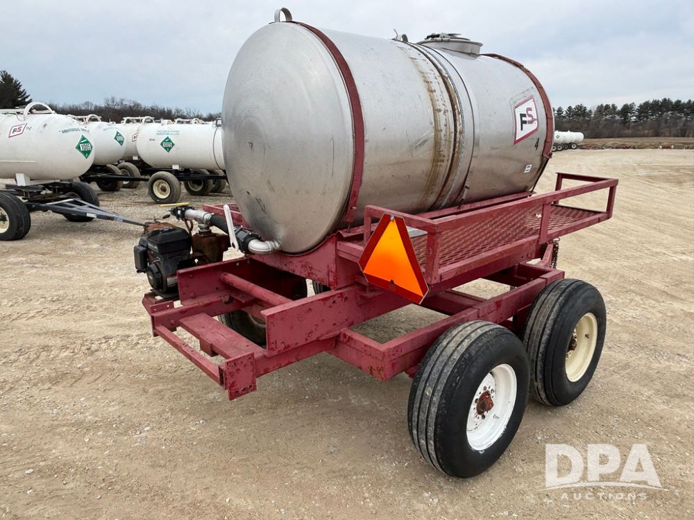Liquid Nurse Tank (GP12816, Unit 4), 500 gallon stainless steel liquid nurse tank, Briggs & Stratton gas engine, pump, tandem axle, 11L-15 flotation tires.
