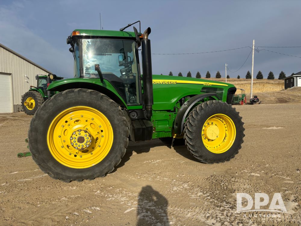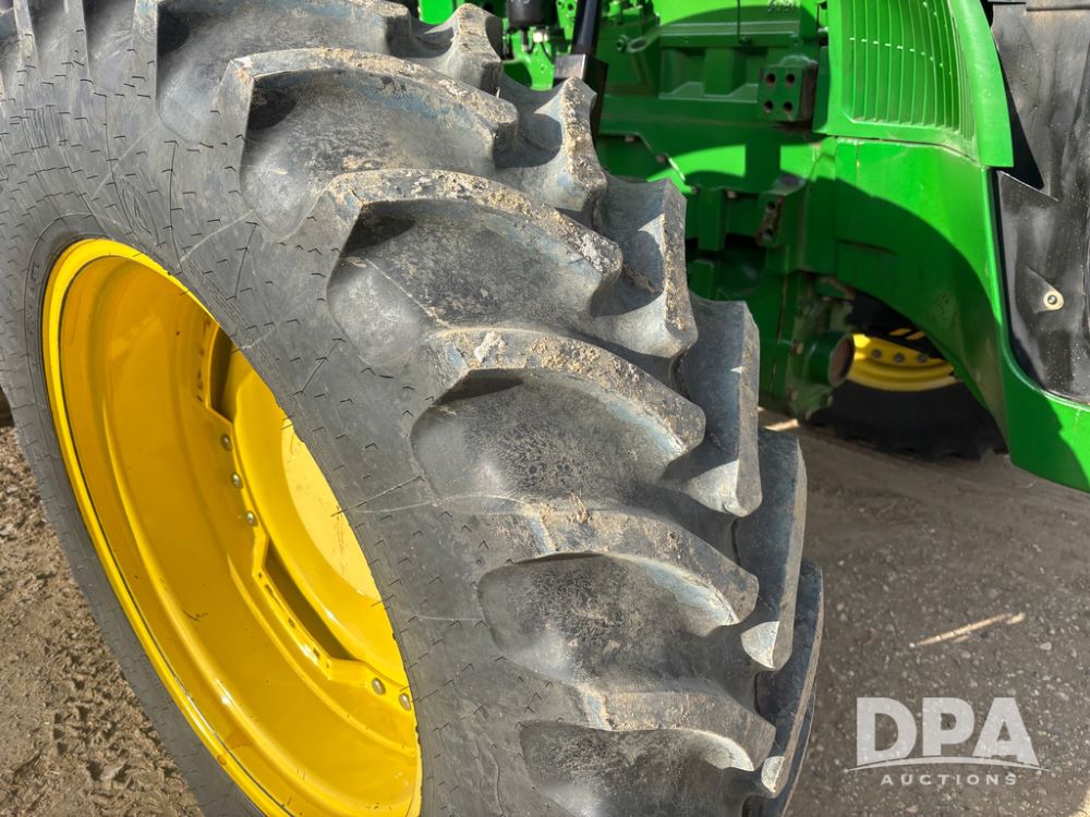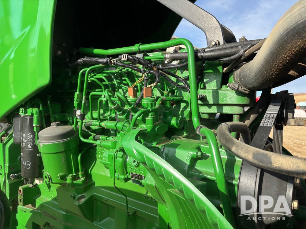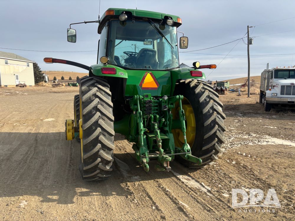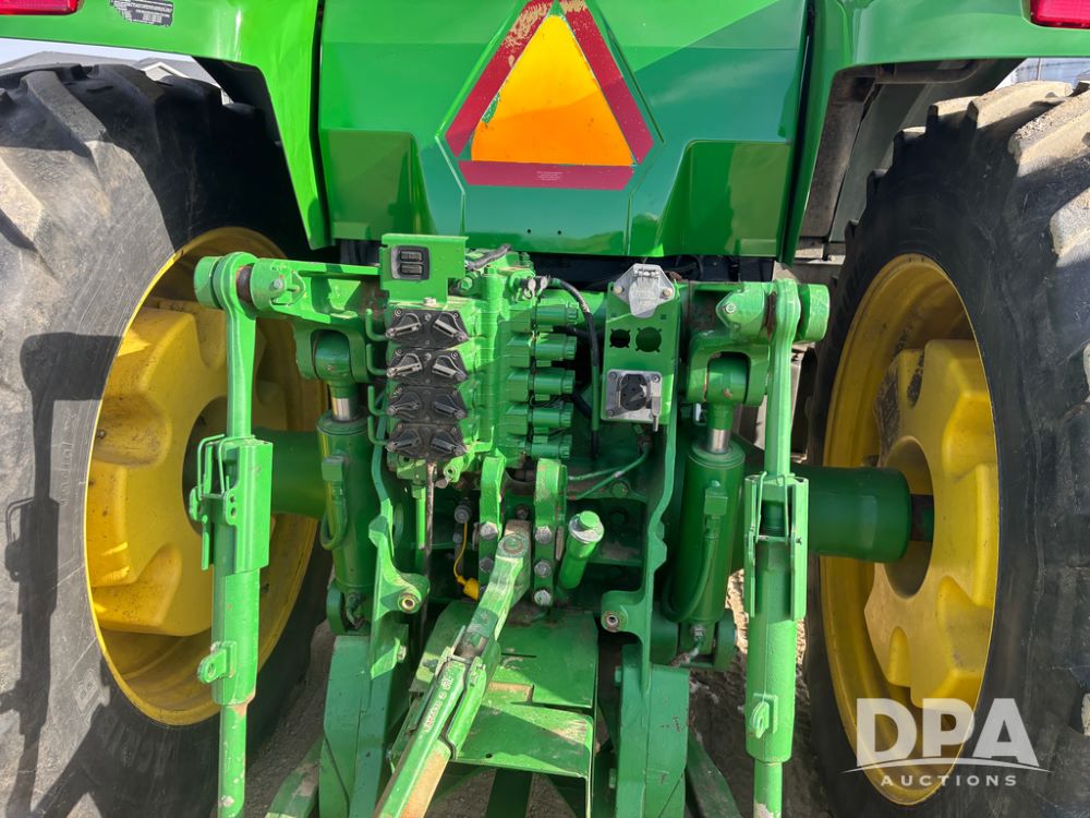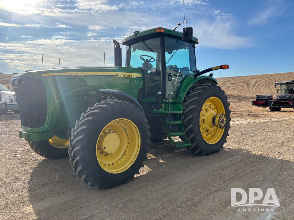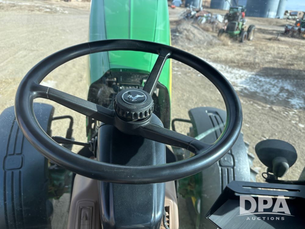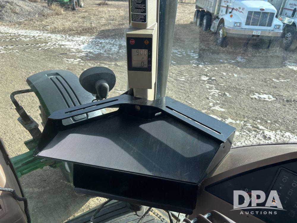 John Deere 8320 MFWD Tractor (DR13205), John Deere diesel engine, PowerShift transmission, MFWD, 4 remote hydraulic outlets, rear 3 point hitch, PTO, hammer strap hitch, rear axle weights, front weight bracket & suitcase weights, active seat & buddy seat, cab heat/air conditioning, 380/85R34 near new front tires, 480/80R46 rear tires w/axle mount duals, shows 7,357 hours.
