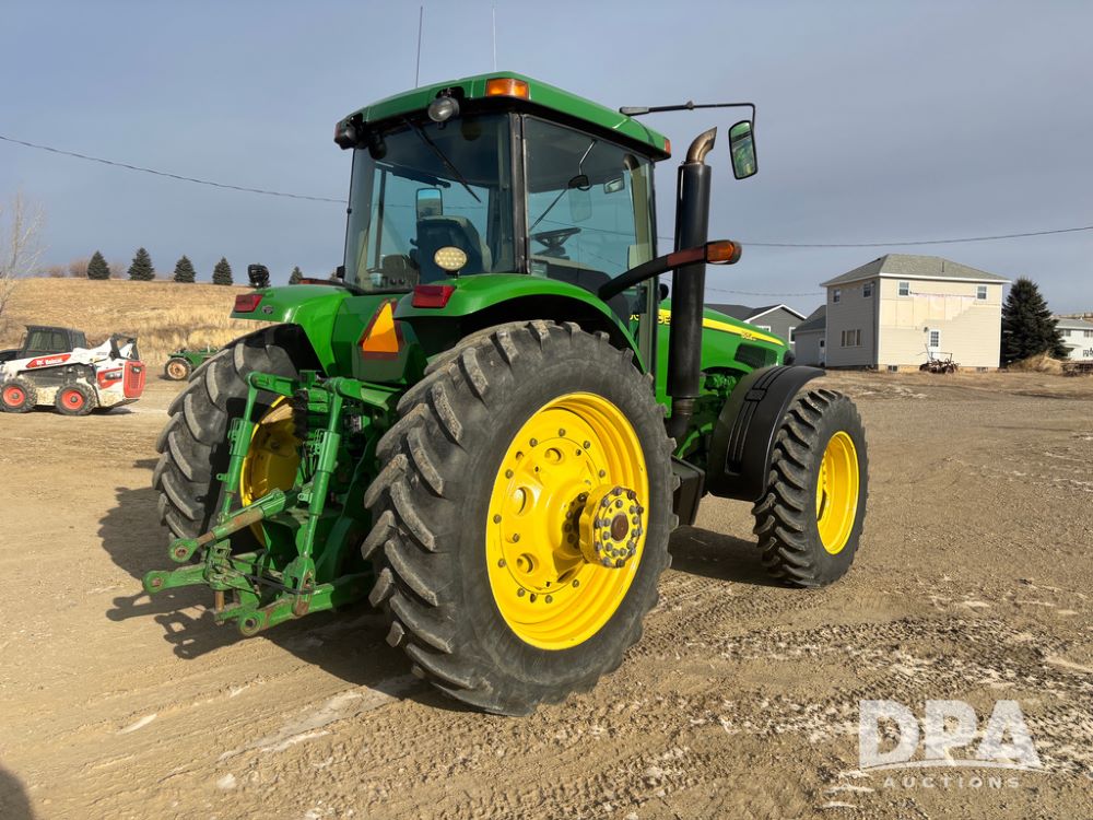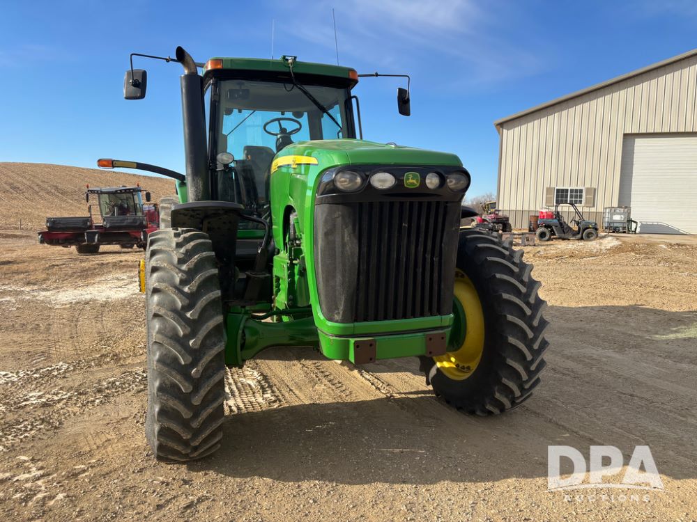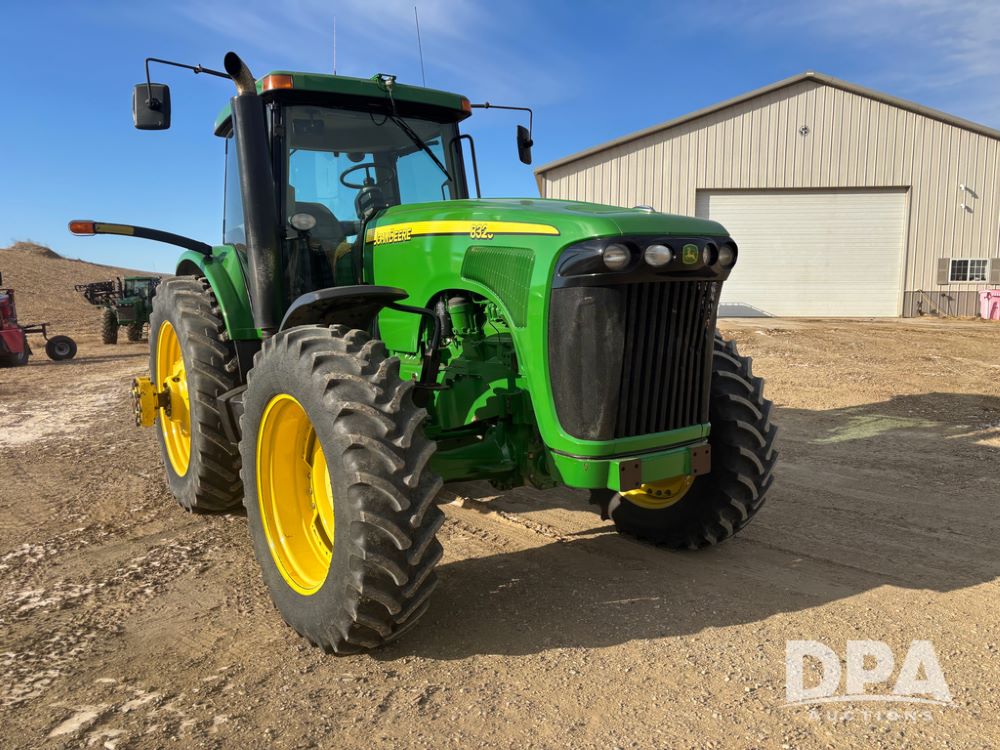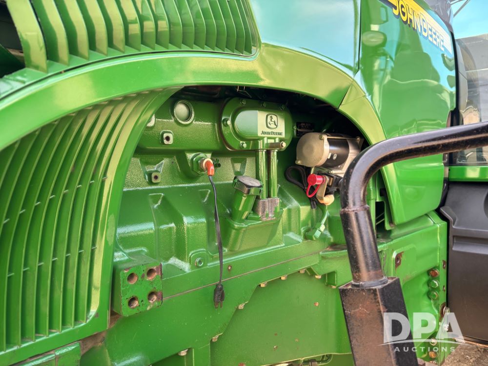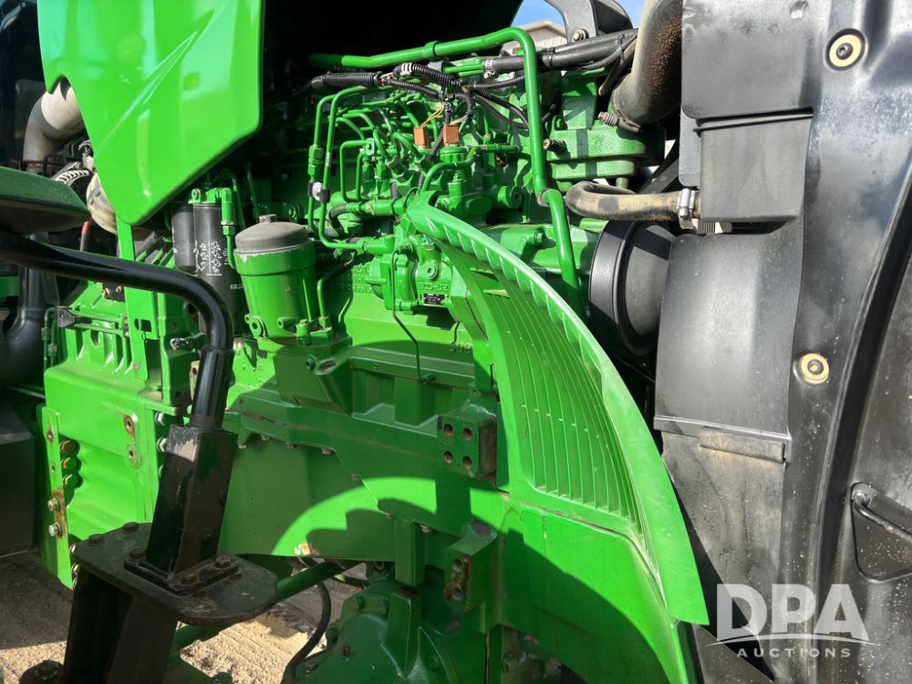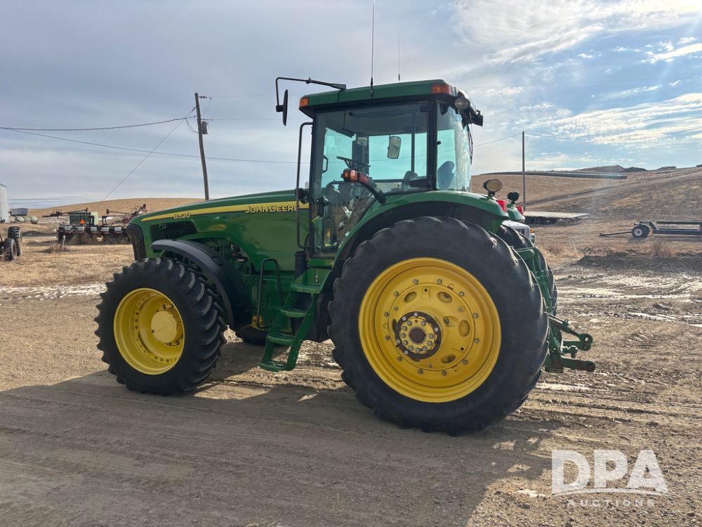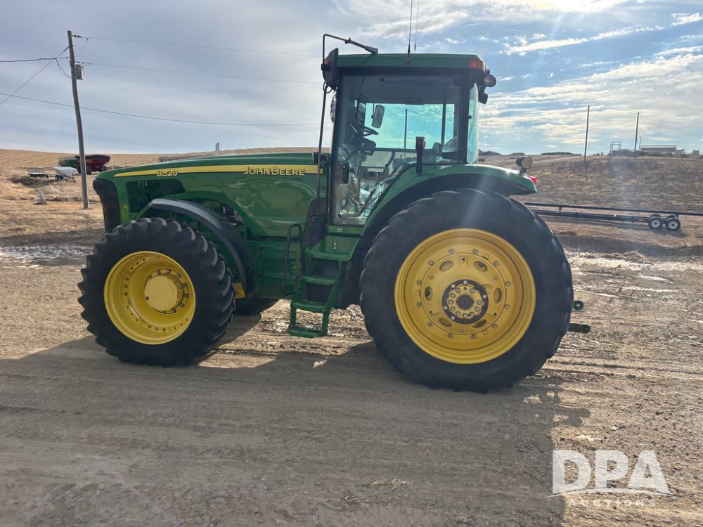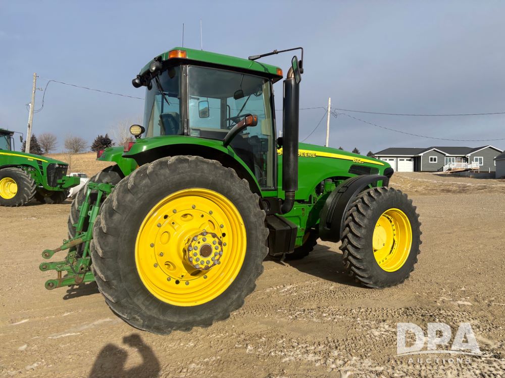 John Deere 8320 MFWD Tractor (DR13205), John Deere diesel engine, PowerShift transmission, MFWD, 4 remote hydraulic outlets, rear 3 point hitch, PTO, hammer strap hitch, rear axle weights, front weight bracket & suitcase weights, active seat & buddy seat, cab heat/air conditioning, 380/85R34 near new front tires, 480/80R46 rear tires w/axle mount duals, shows 7,357 hours.