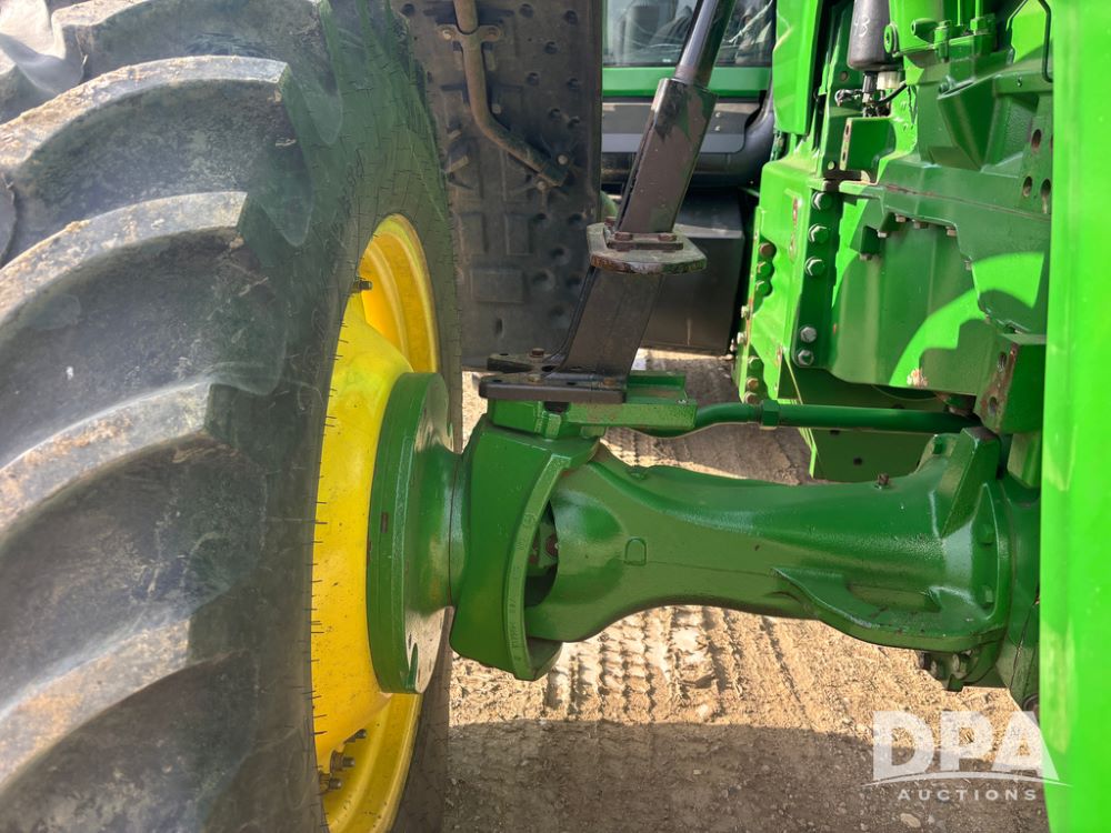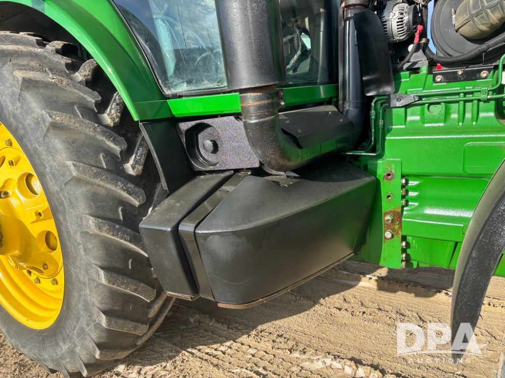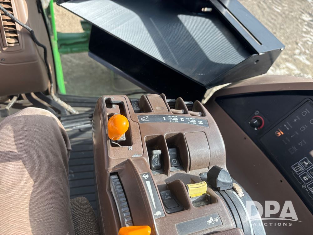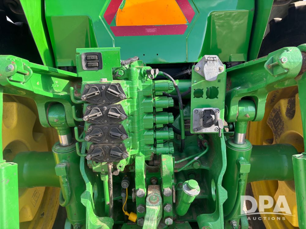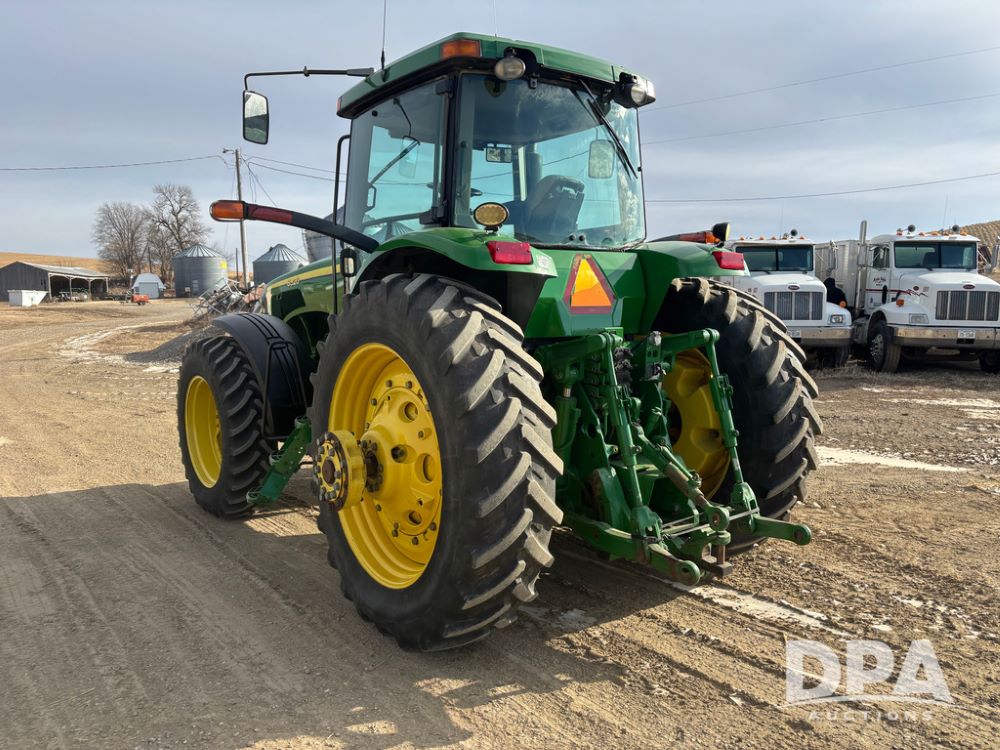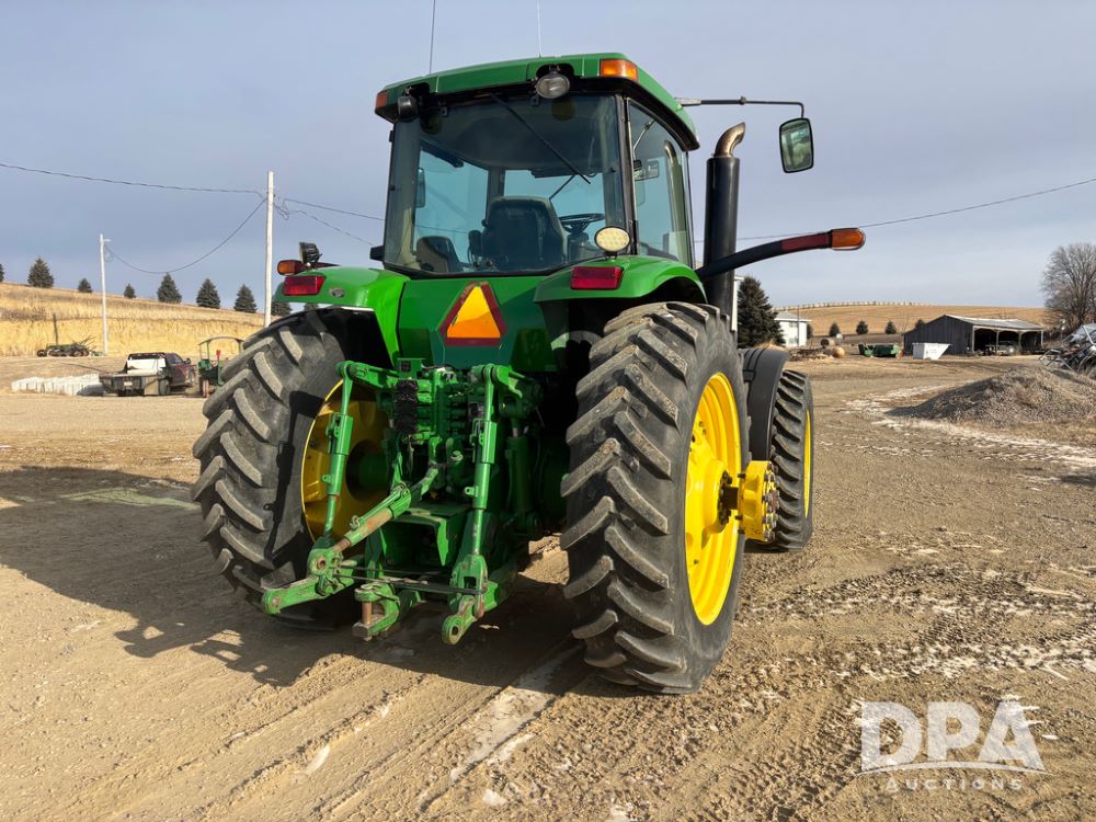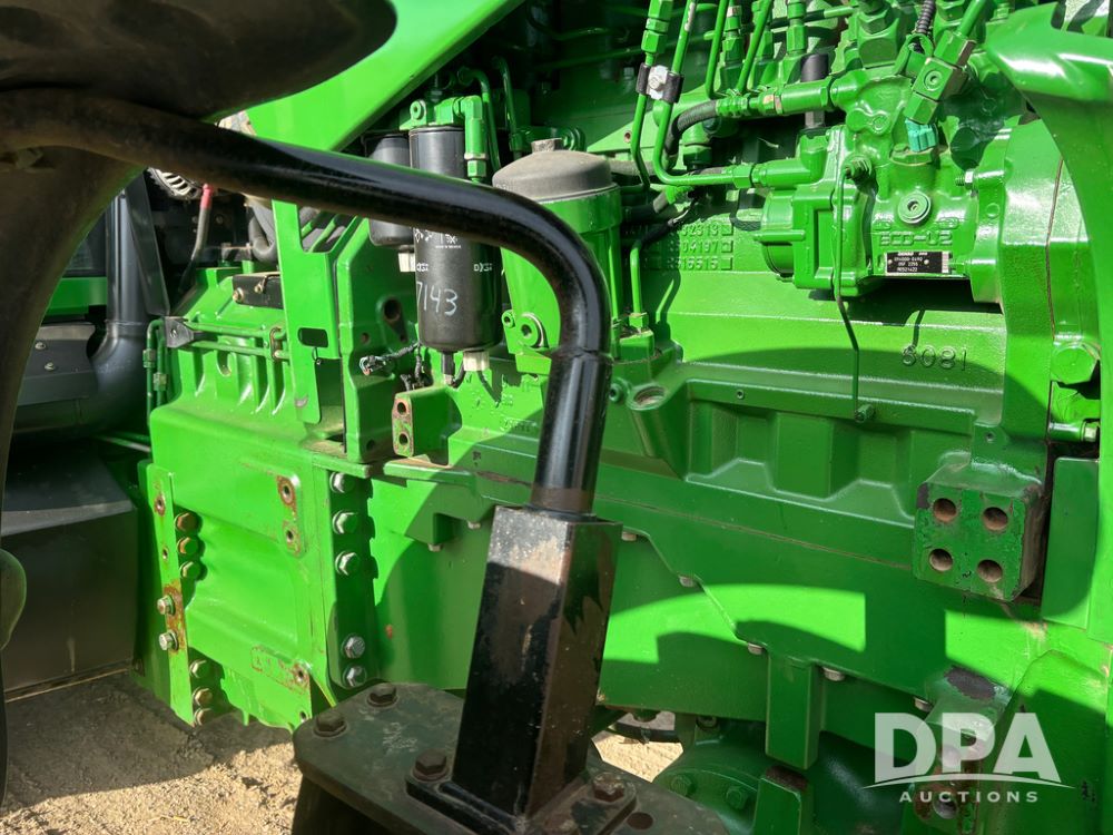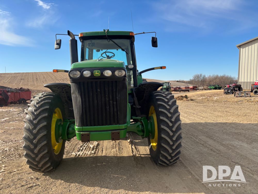 John Deere 8320 MFWD Tractor (DR13205), John Deere diesel engine, PowerShift transmission, MFWD, 4 remote hydraulic outlets, rear 3 point hitch, PTO, hammer strap hitch, rear axle weights, front weight bracket & suitcase weights, active seat & buddy seat, cab heat/air conditioning, 380/85R34 near new front tires, 480/80R46 rear tires w/axle mount duals, shows 7,357 hours.