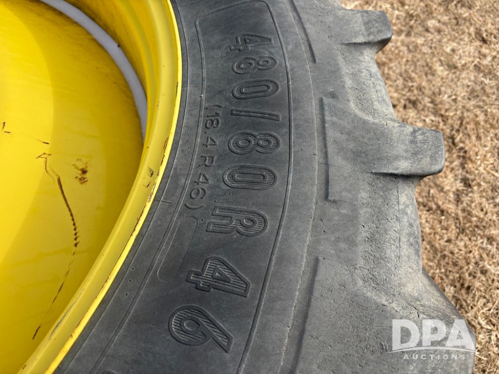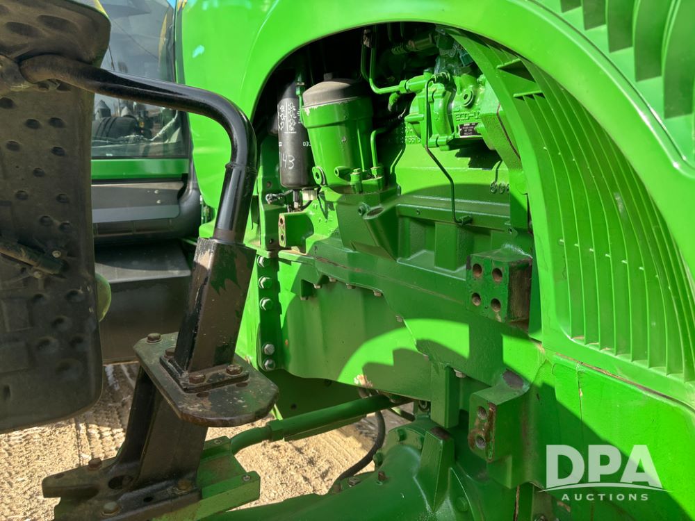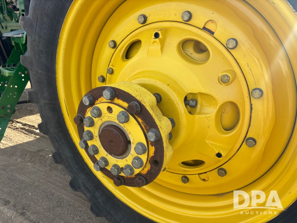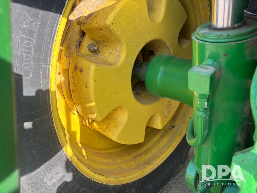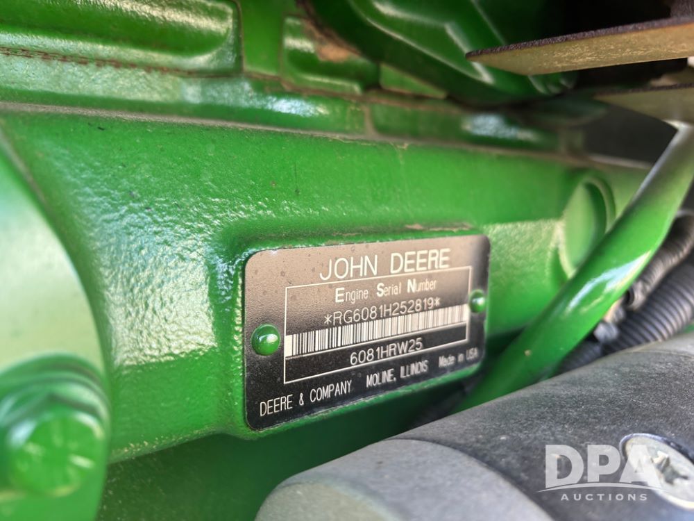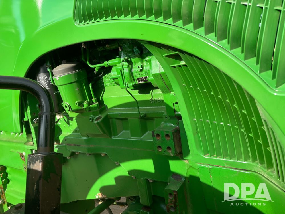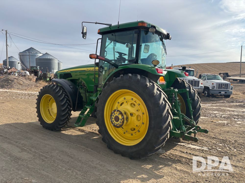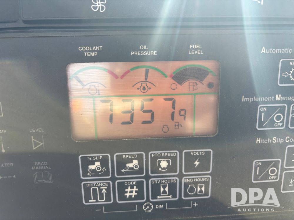 John Deere 8320 MFWD Tractor (DR13205), John Deere diesel engine, PowerShift transmission, MFWD, 4 remote hydraulic outlets, rear 3 point hitch, PTO, hammer strap hitch, rear axle weights, front weight bracket & suitcase weights, active seat & buddy seat, cab heat/air conditioning, 380/85R34 near new front tires, 480/80R46 rear tires w/axle mount duals, shows 7,357 hours.