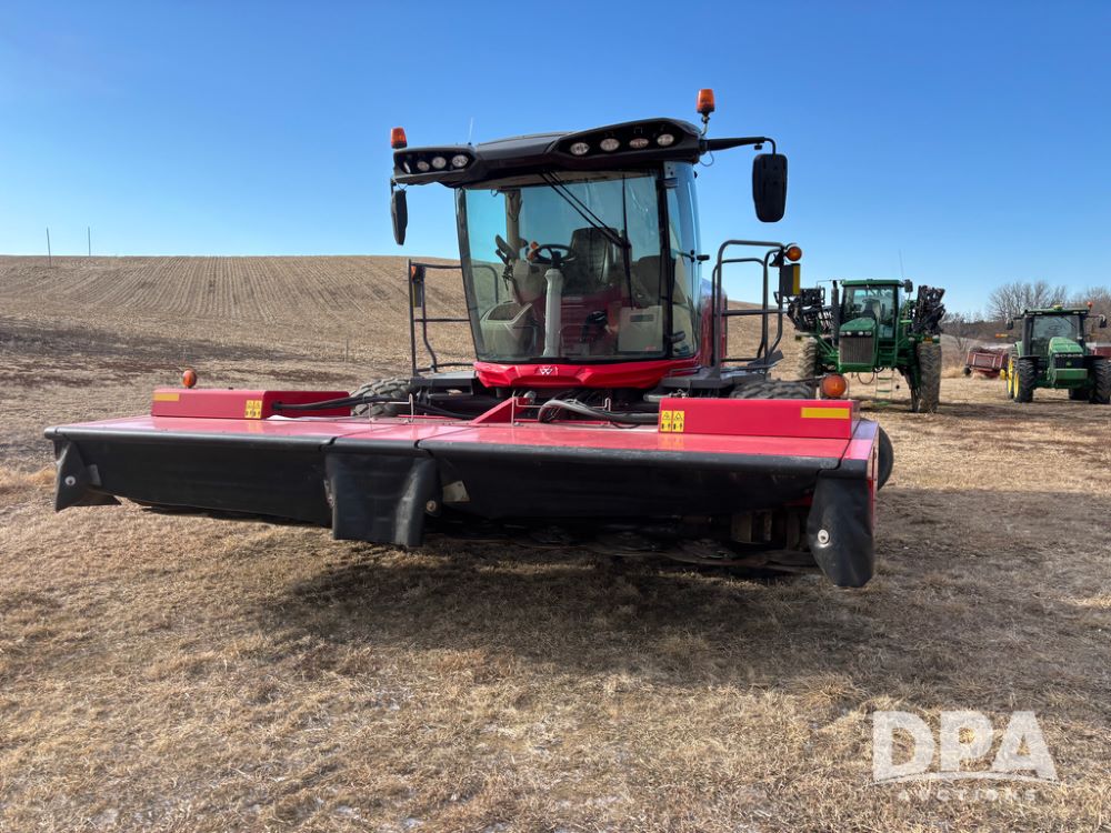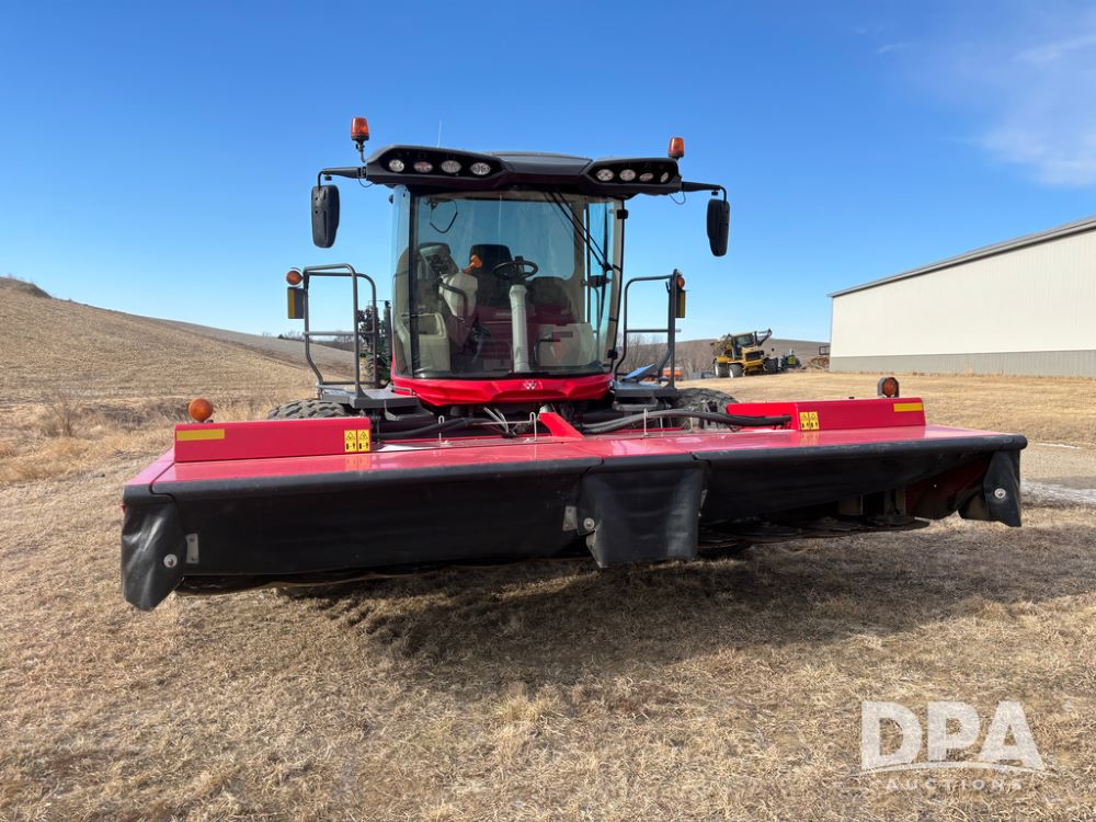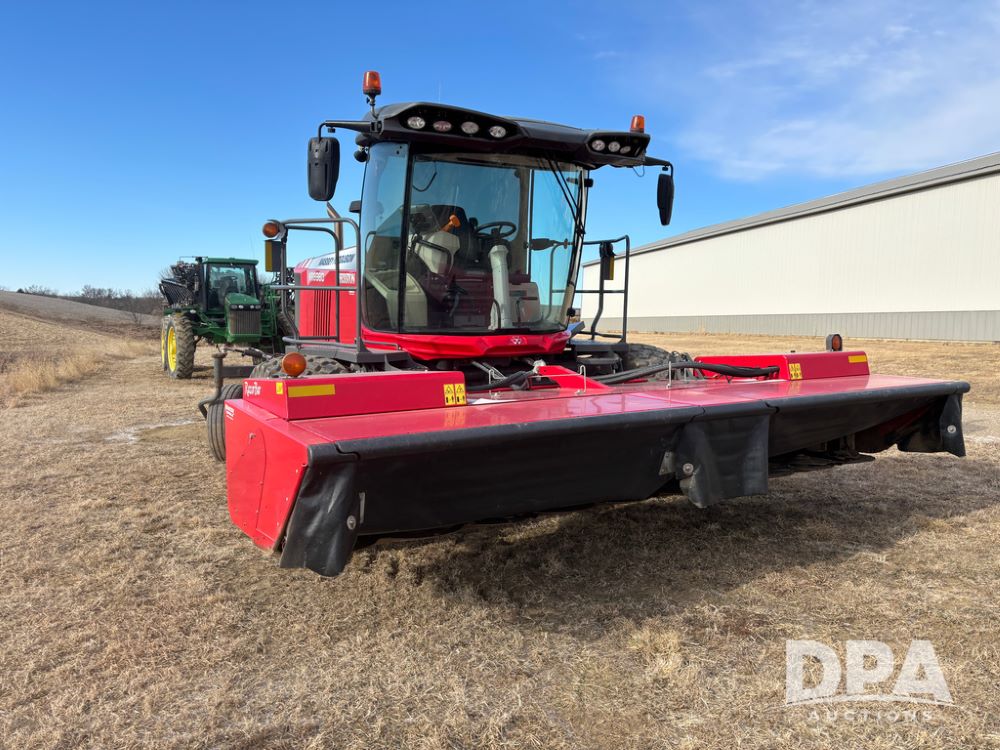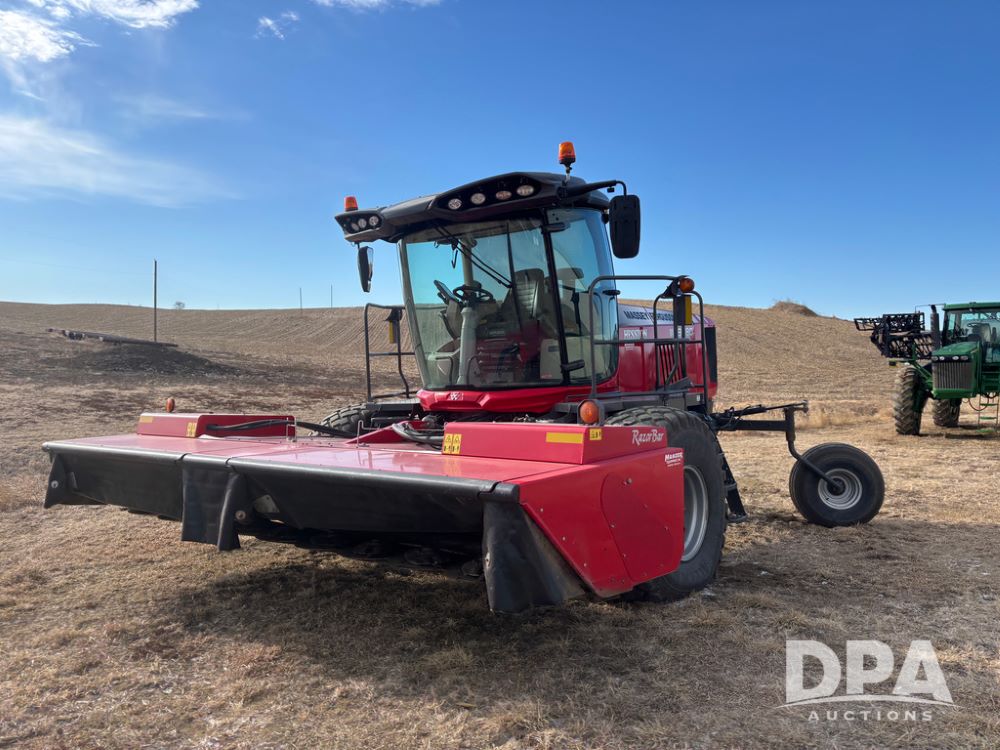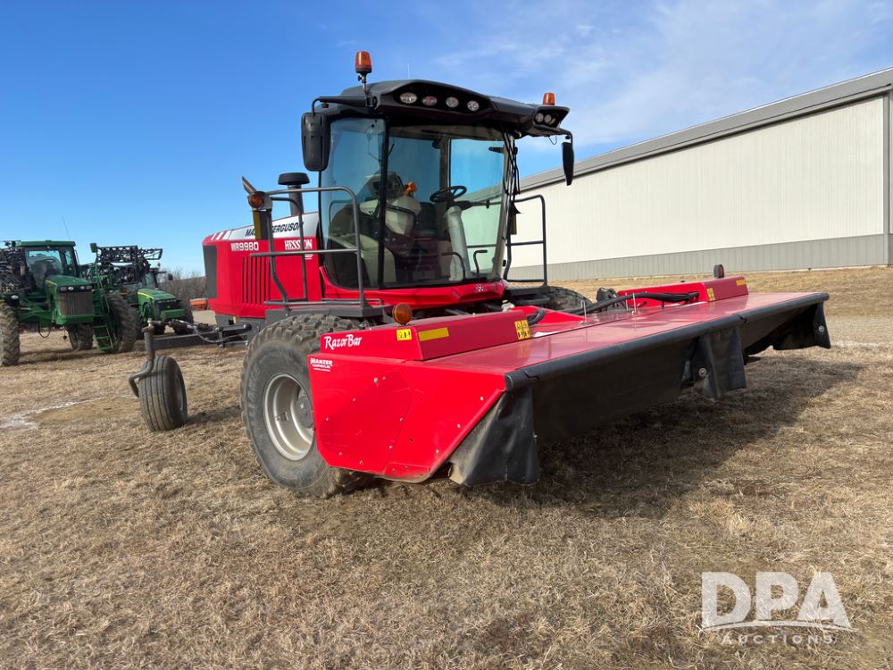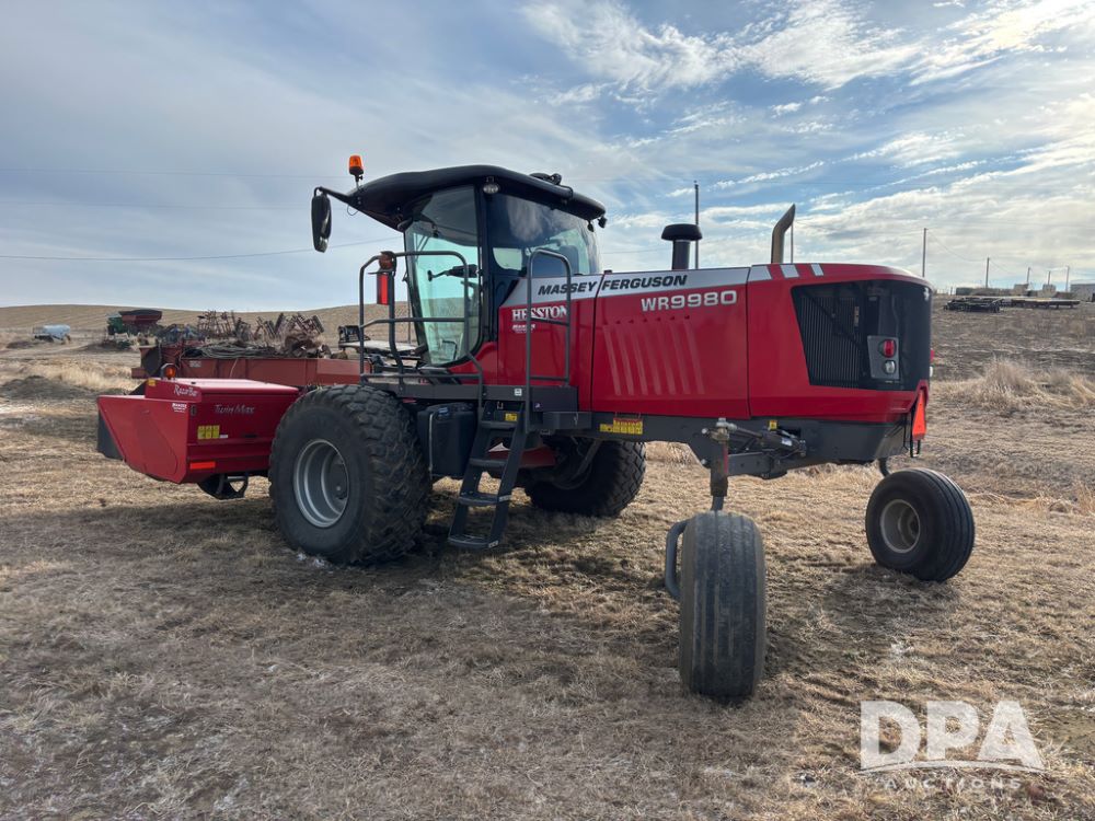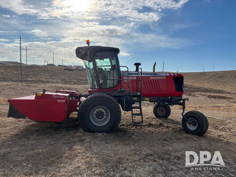 2021 Massey Ferguson WR9980 Windrower (DR13206), diesel engine, hydrostatic drive, 16' Razor Bar hydraulic disc draper head, all NEW turtles and skid plate, active operator seat, digital display, cab heat/air conditioning, AM/FM CD radio, 16.5L-16.15 rear tires, 620/75R26 front tires, 691 engine hours & 537 header hours.