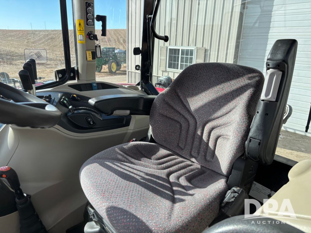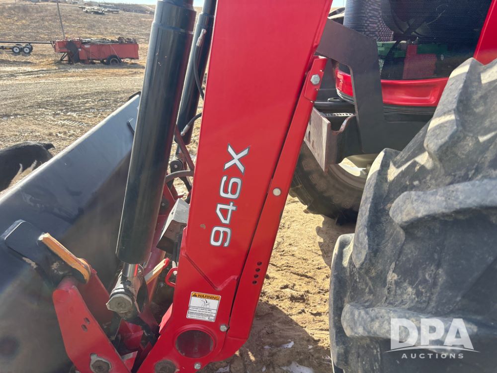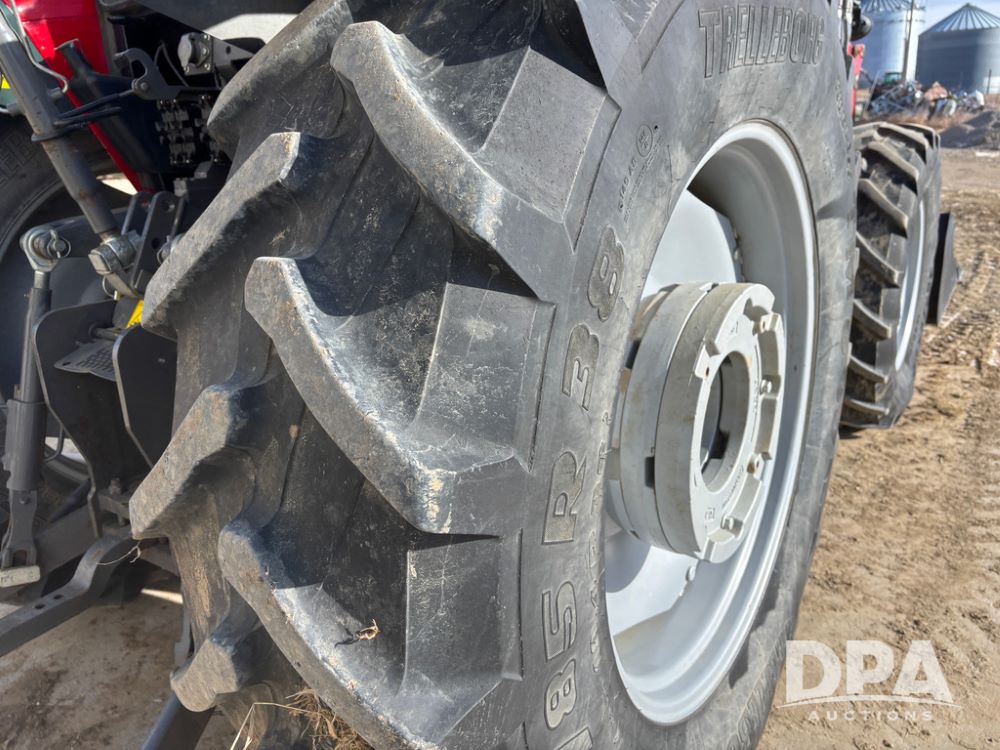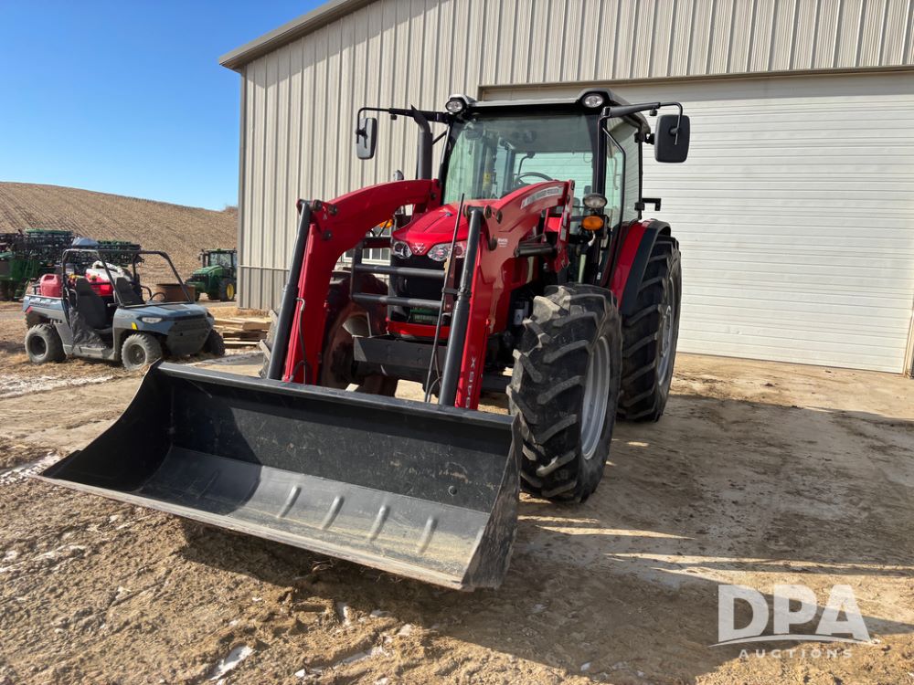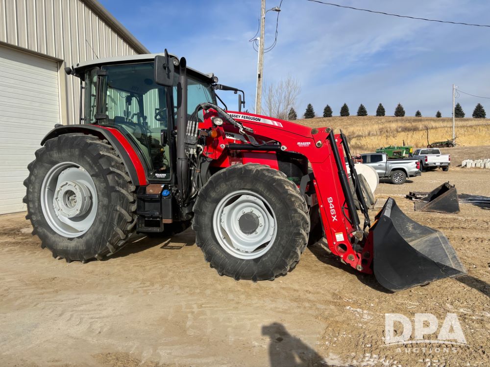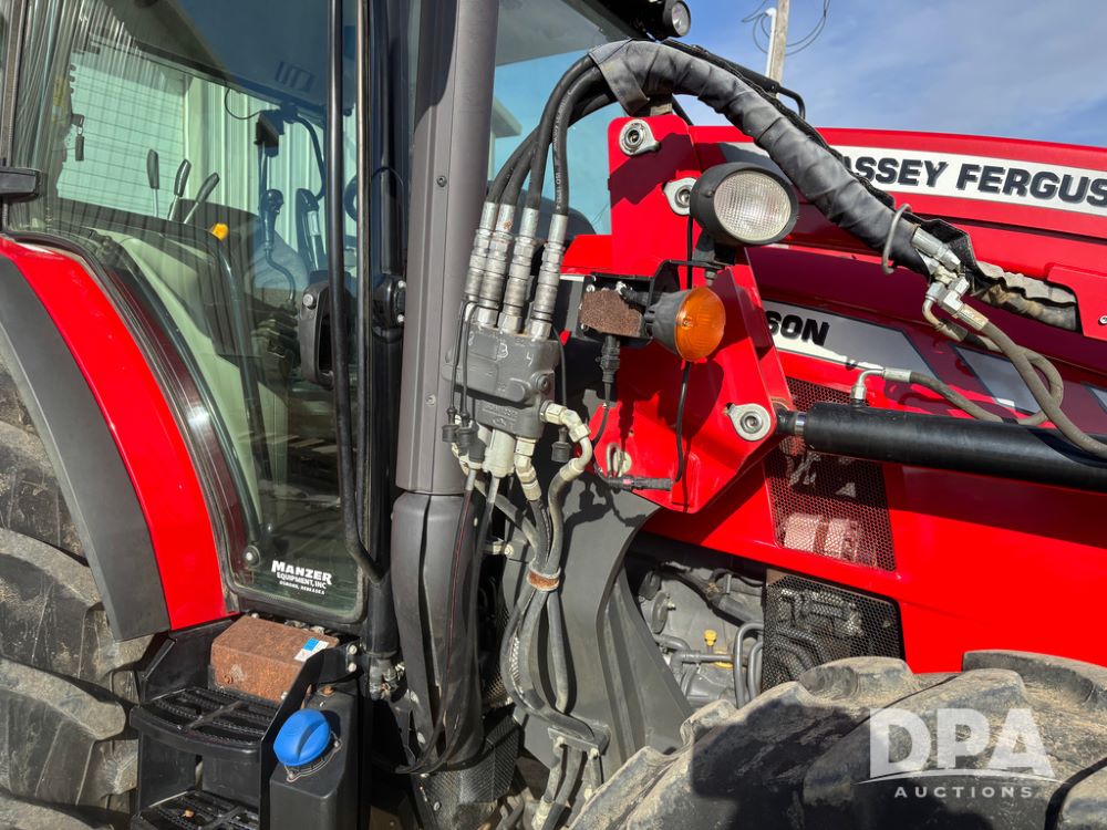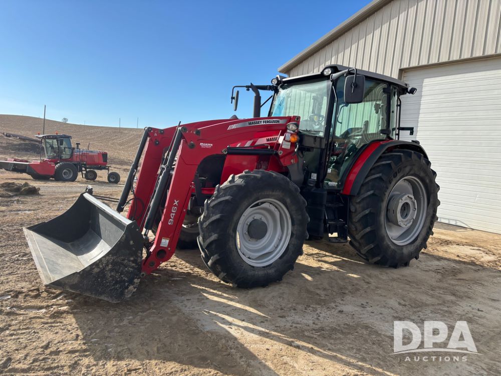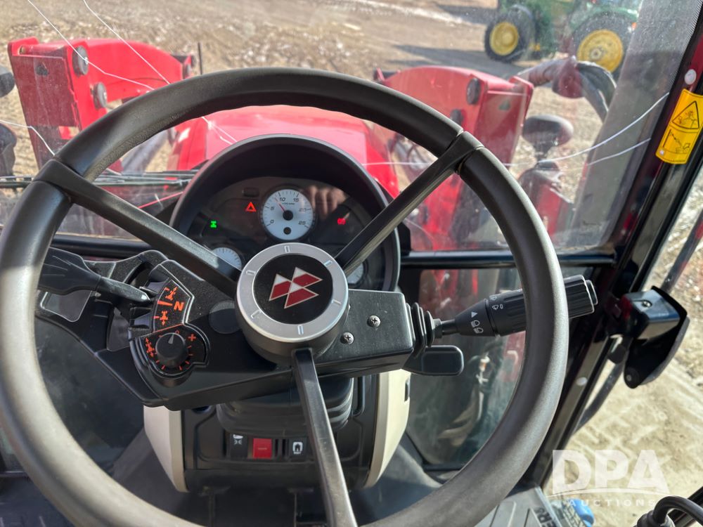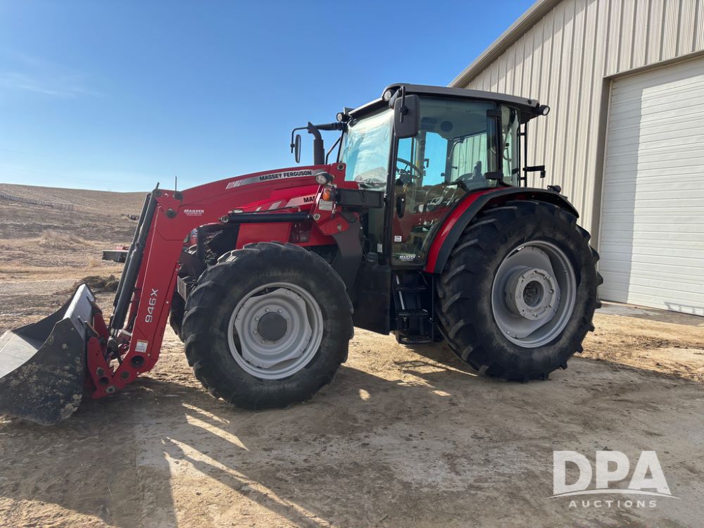 2019 Massey Ferguson 6712 MFWD Tractor (DR13207), 120hp diesel engine, 12X12 power shuttle transmission, Massey 9465X hydraulic quick mount front end loader, w/single point hookup, front bucket is hardly used, rear 3 point hitch, Joystick cab controls, rear PTO, triple remote hydraulic outlets, MFWD, cab heat/air conditioning, buddy seat, AM/FM CD radio, 460/85R38 rear tires, Trelleborg 14.9R28 front tires w/fenders, shows 2,175 hours.