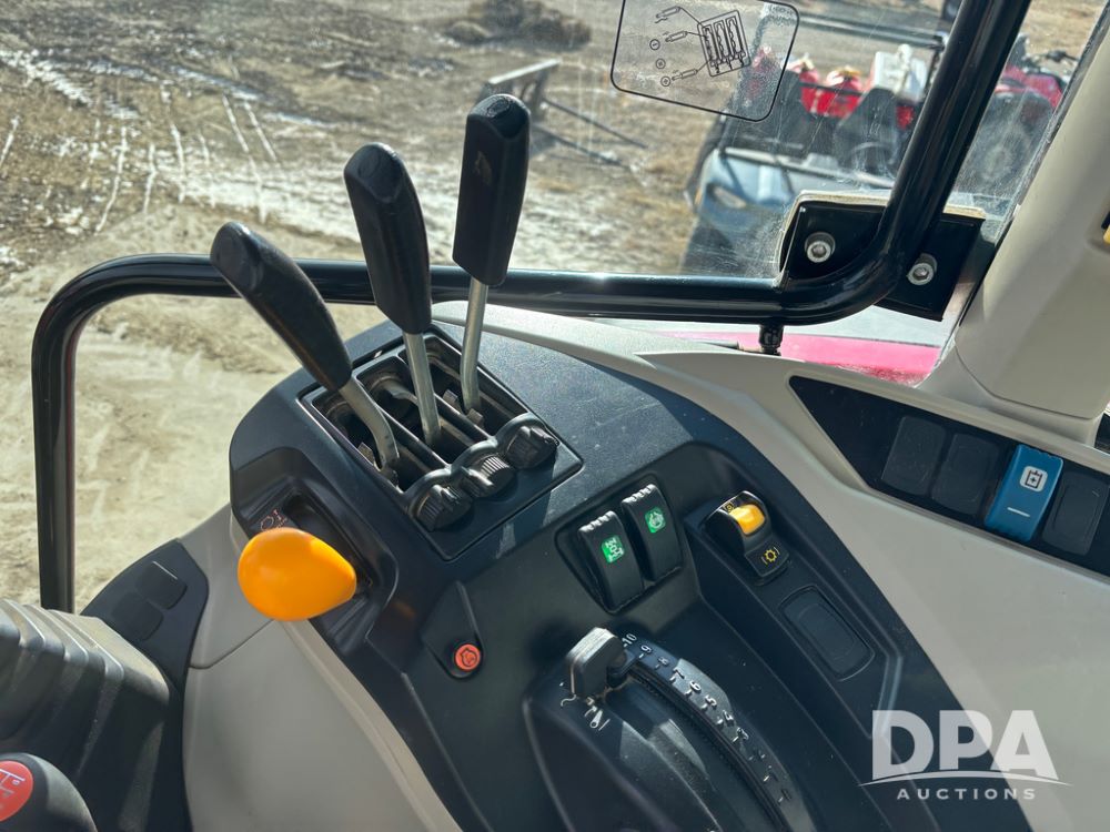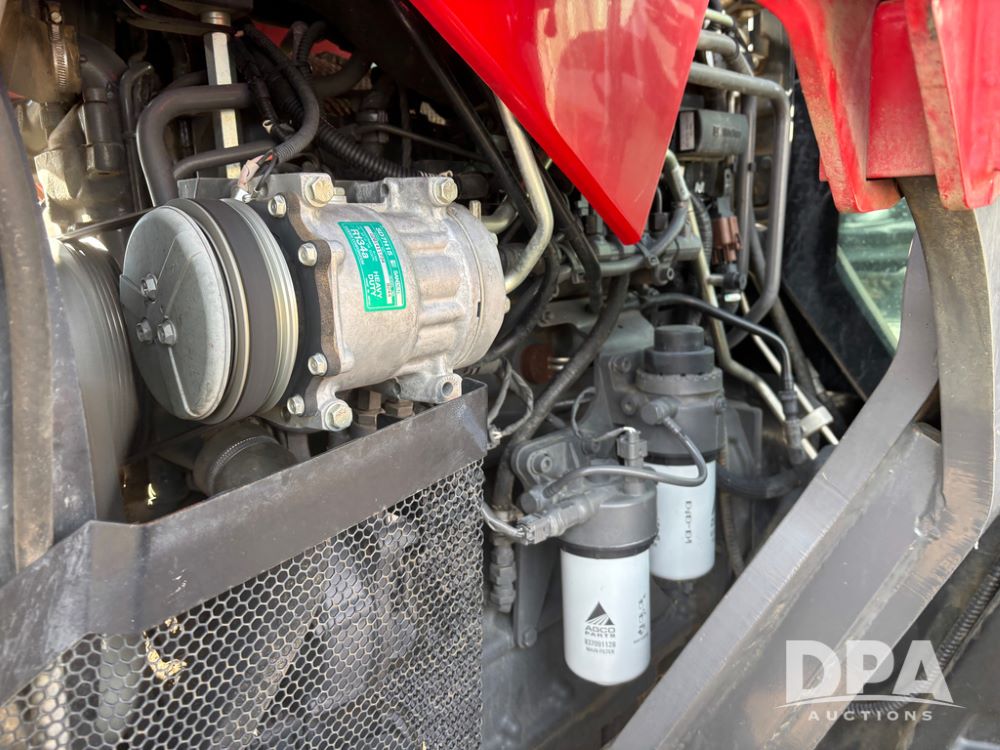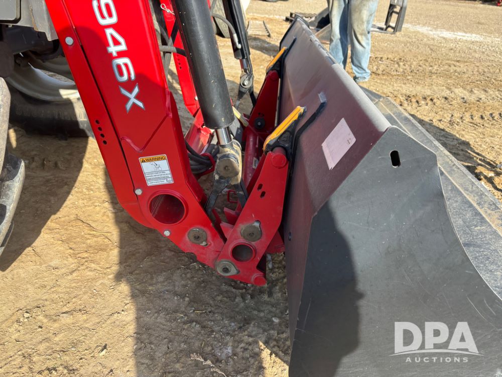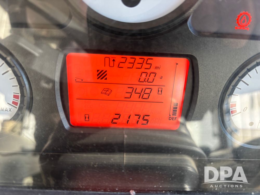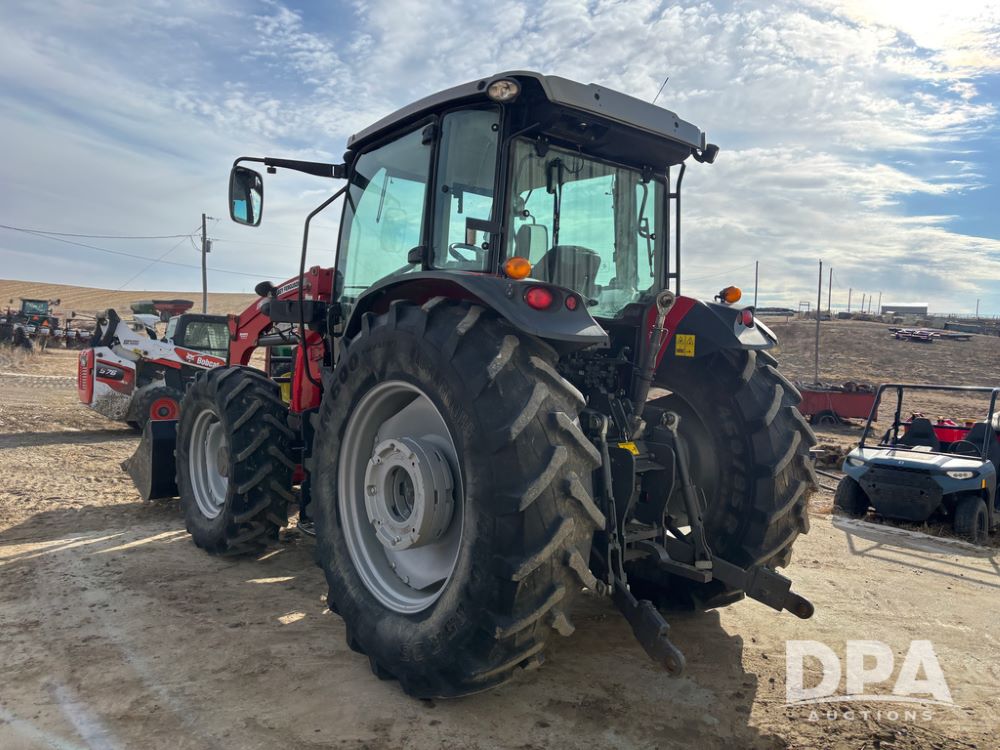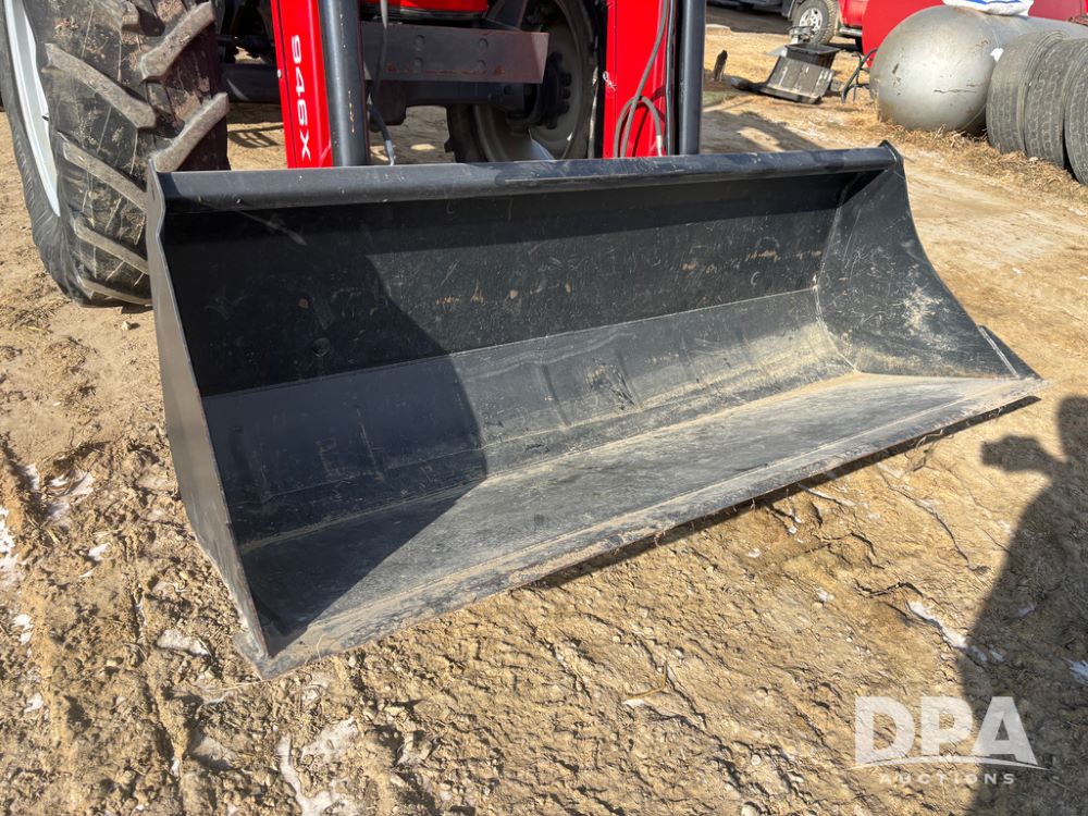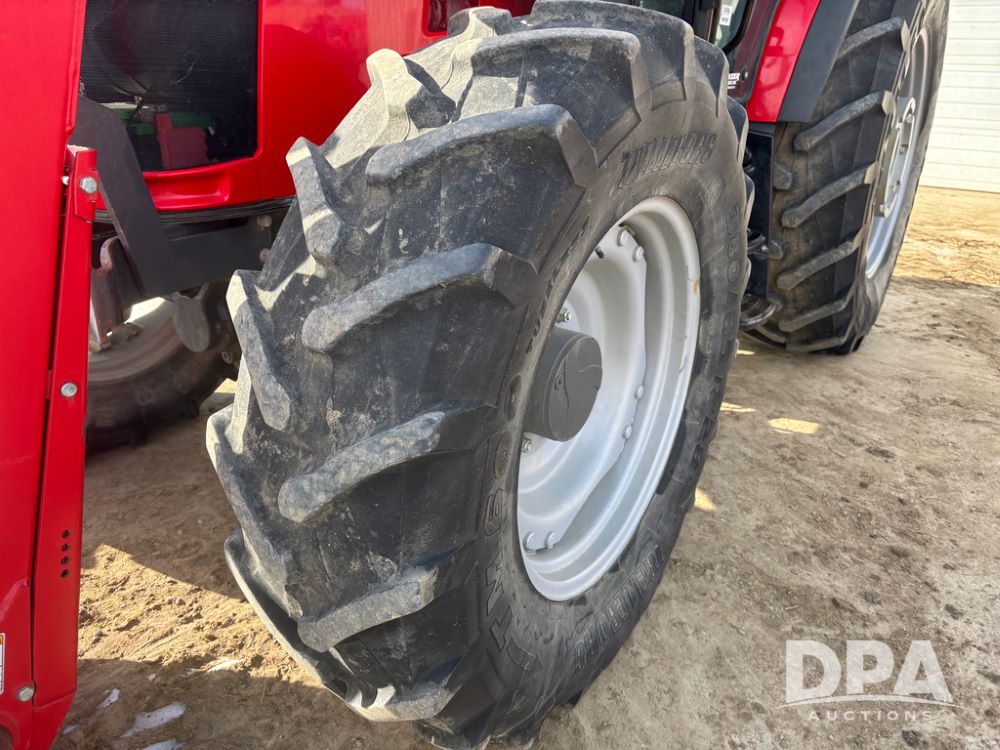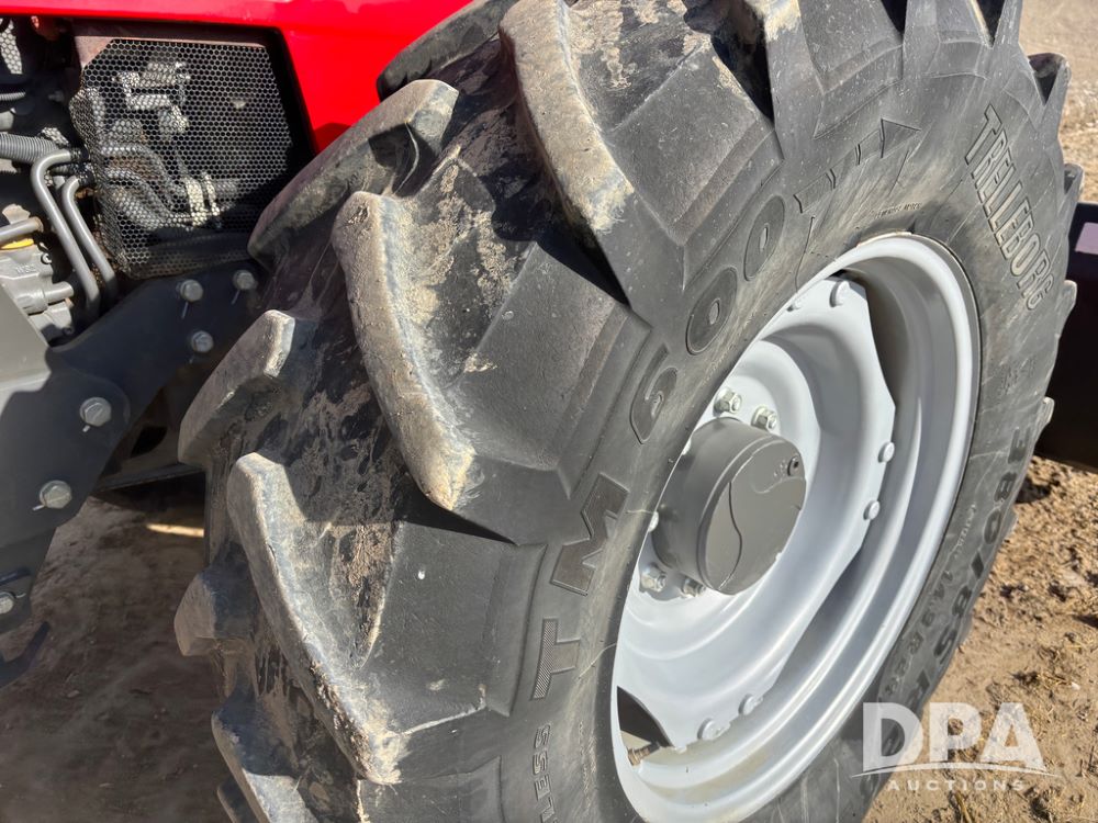 2019 Massey Ferguson 6712 MFWD Tractor (DR13207), 120hp diesel engine, 12X12 power shuttle transmission, Massey 9465X hydraulic quick mount front end loader, w/single point hookup, front bucket is hardly used, rear 3 point hitch, Joystick cab controls, rear PTO, triple remote hydraulic outlets, MFWD, cab heat/air conditioning, buddy seat, AM/FM CD radio, 460/85R38 rear tires, Trelleborg 14.9R28 front tires w/fenders, shows 2,175 hours.