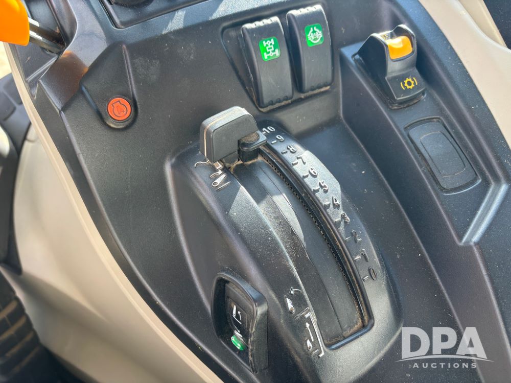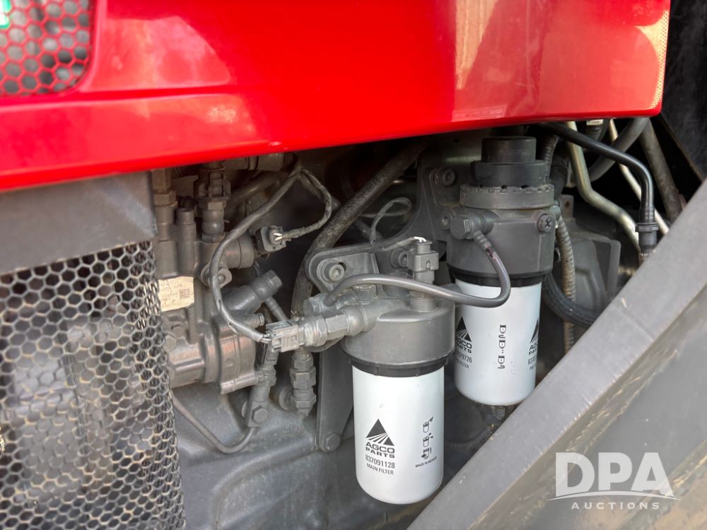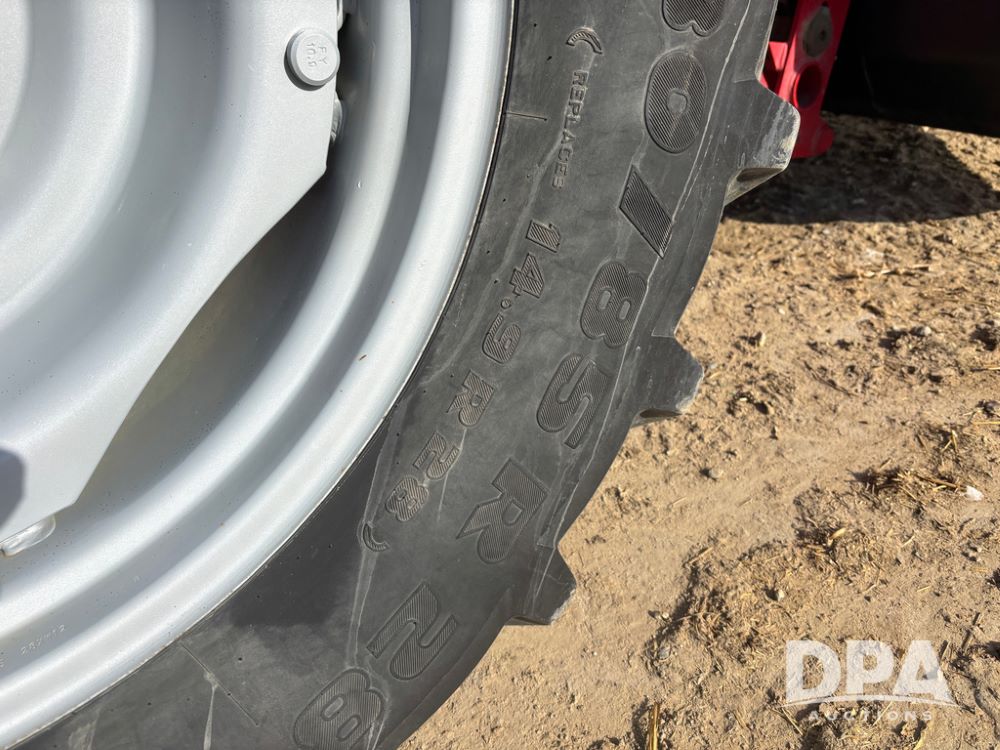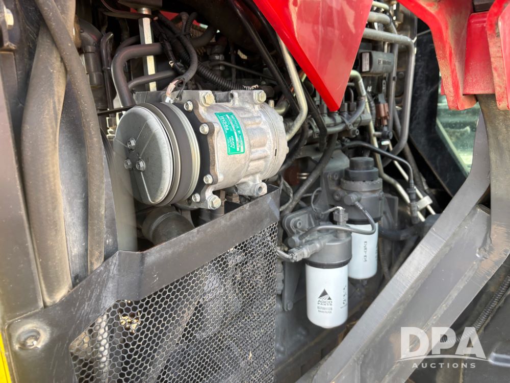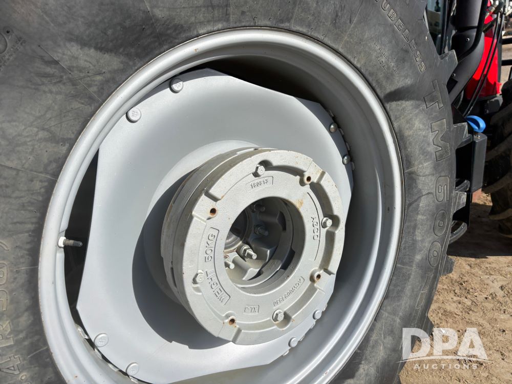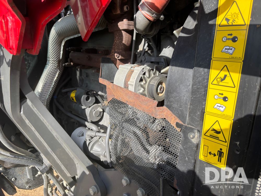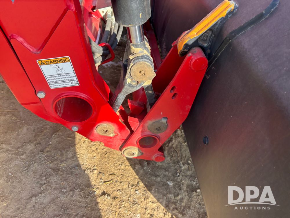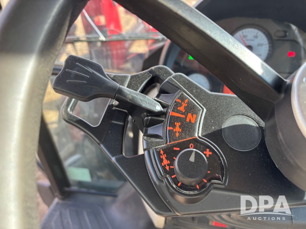 2019 Massey Ferguson 6712 MFWD Tractor (DR13207), 120hp diesel engine, 12X12 power shuttle transmission, Massey 9465X hydraulic quick mount front end loader, w/single point hookup, front bucket is hardly used, rear 3 point hitch, Joystick cab controls, rear PTO, triple remote hydraulic outlets, MFWD, cab heat/air conditioning, buddy seat, AM/FM CD radio, 460/85R38 rear tires, Trelleborg 14.9R28 front tires w/fenders, shows 2,175 hours.
