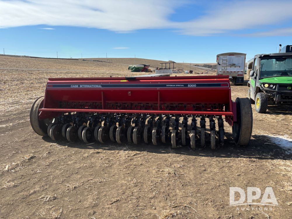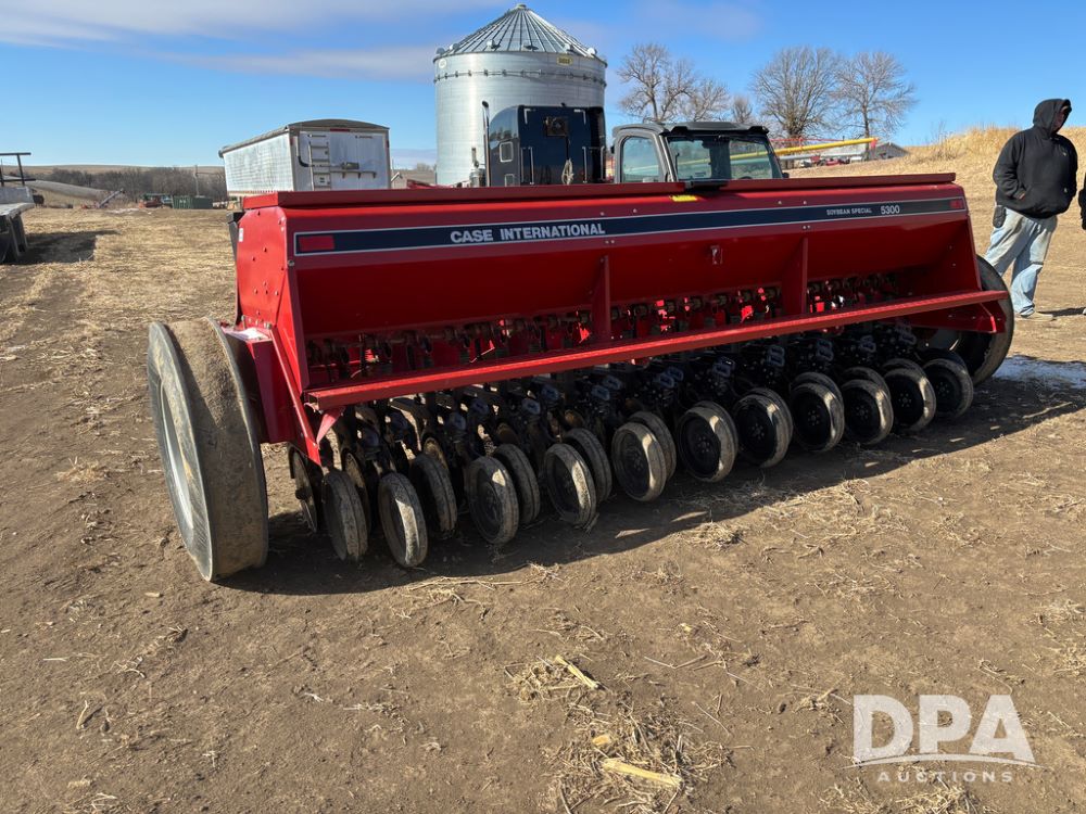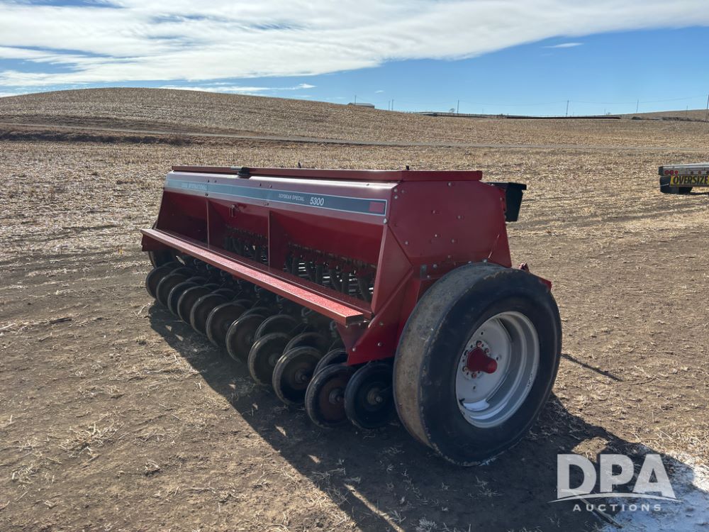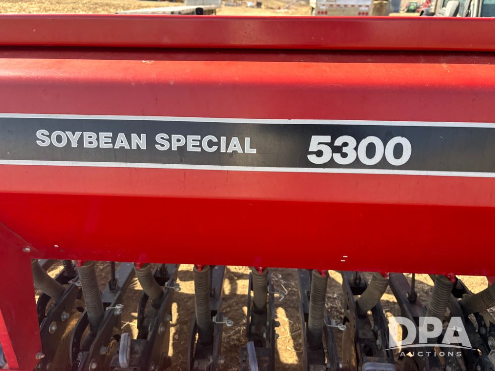 Case IH 5300 Drill (DR13218), Soybean Special grain drill, pull type drill, 7'' spacings, rubber press wheels, 9 bushel hopper.