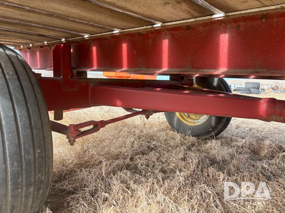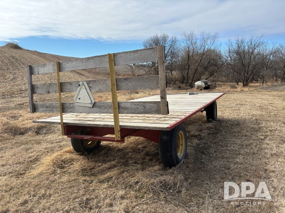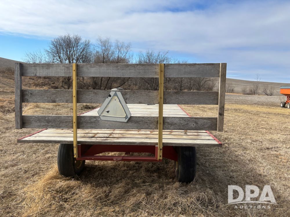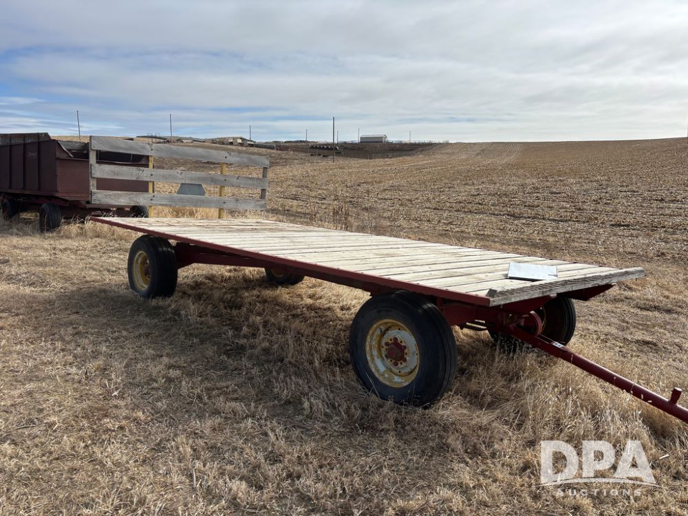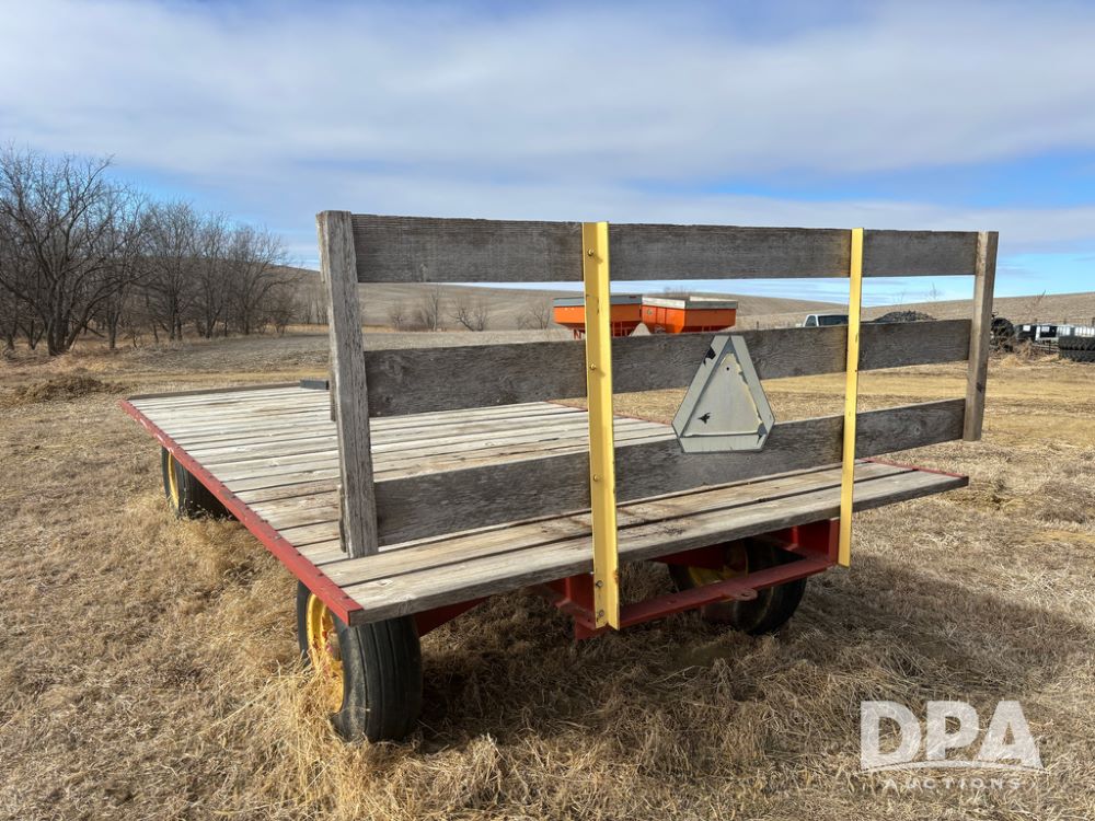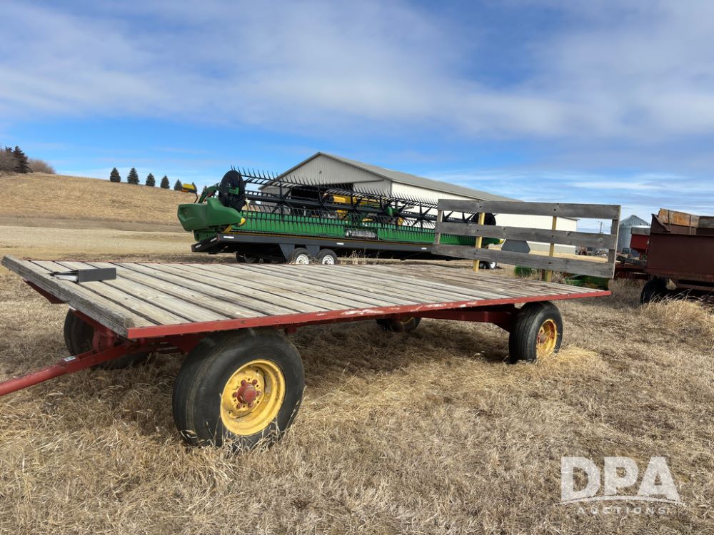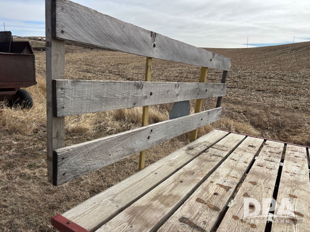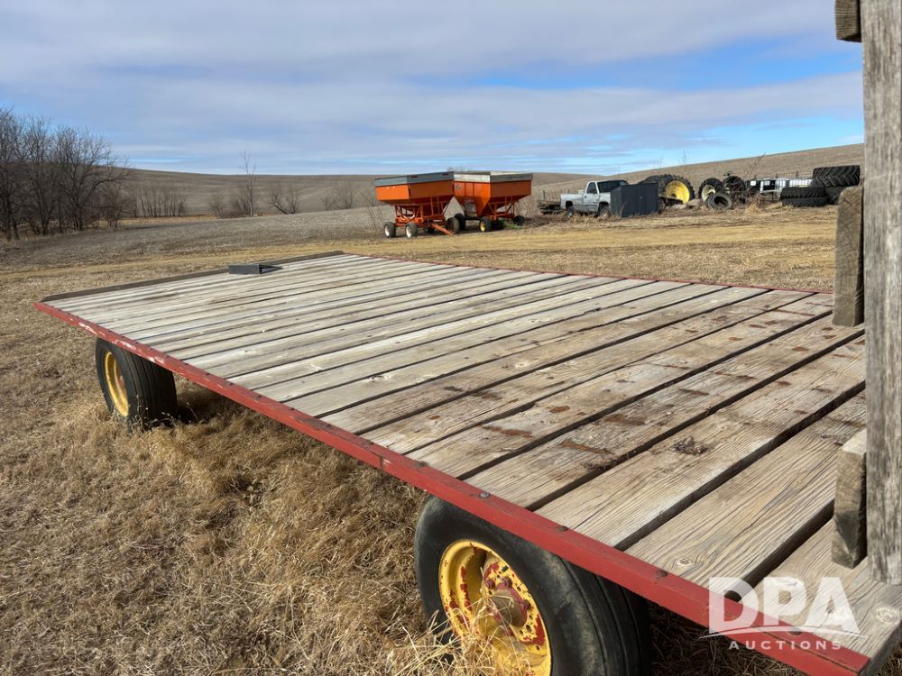 Flatracks (DR13221), wood deck flat rack flatbed, 16.5' X8' treated wood deck, rear headache rack, Westendorf autosteer running gear, 11L-15 tires.