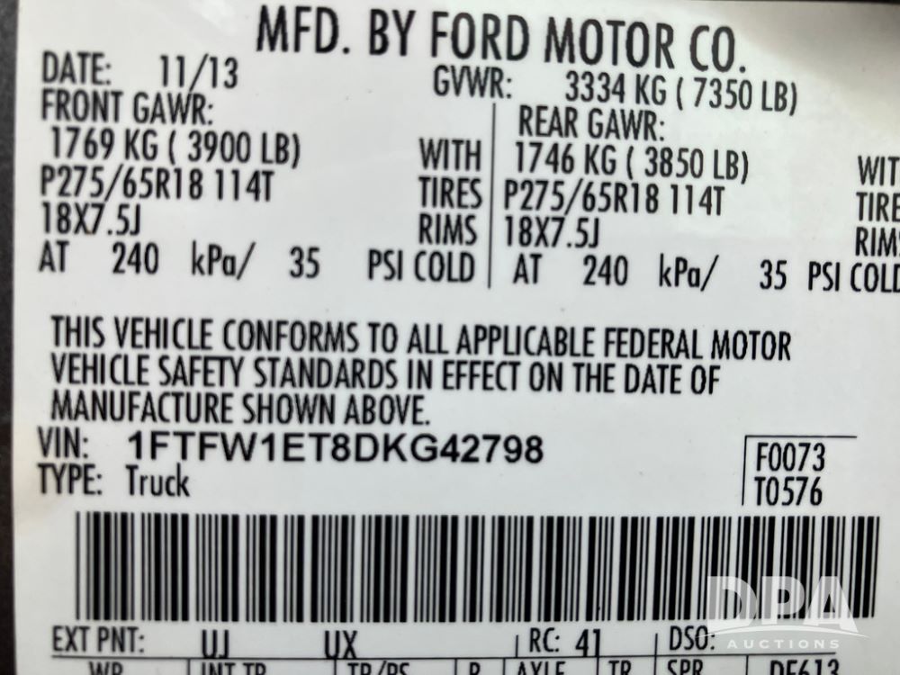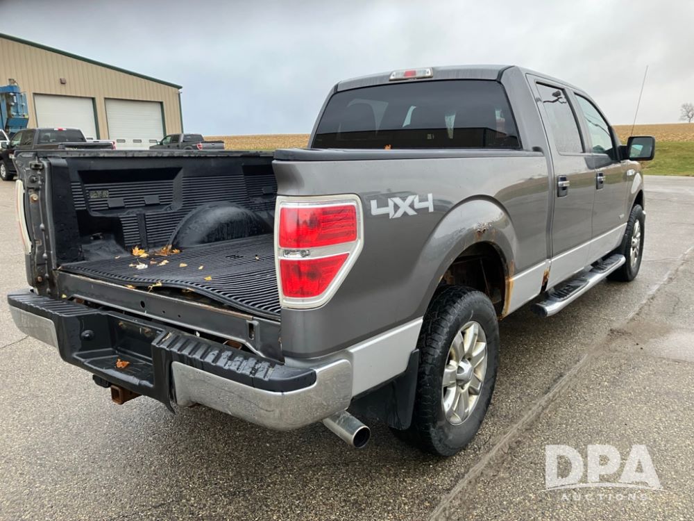 2013 Ford F-150 4x4 Pickup (NP6505, Unit 5465), 4 door, 3.5L Eco-Boost gas engine, automatic transmission, heat, air conditioning, Am/Fm radio, cloth interior, running boards, bed liner, tow package, shows 262,871 miles.