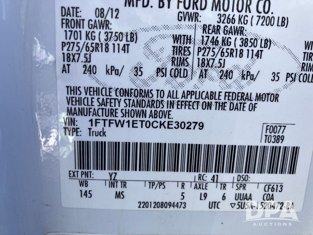 2012 Ford F-150 4x4 Pickup (NP6514, Unit 5210), 4 door, 3.5L Eco Boost gas engine, automatic transmission, heat, air conditioning, Am/Fm radio, cloth interior, running boards, tow package, soft tonneau cover, shows 179,320 miles.