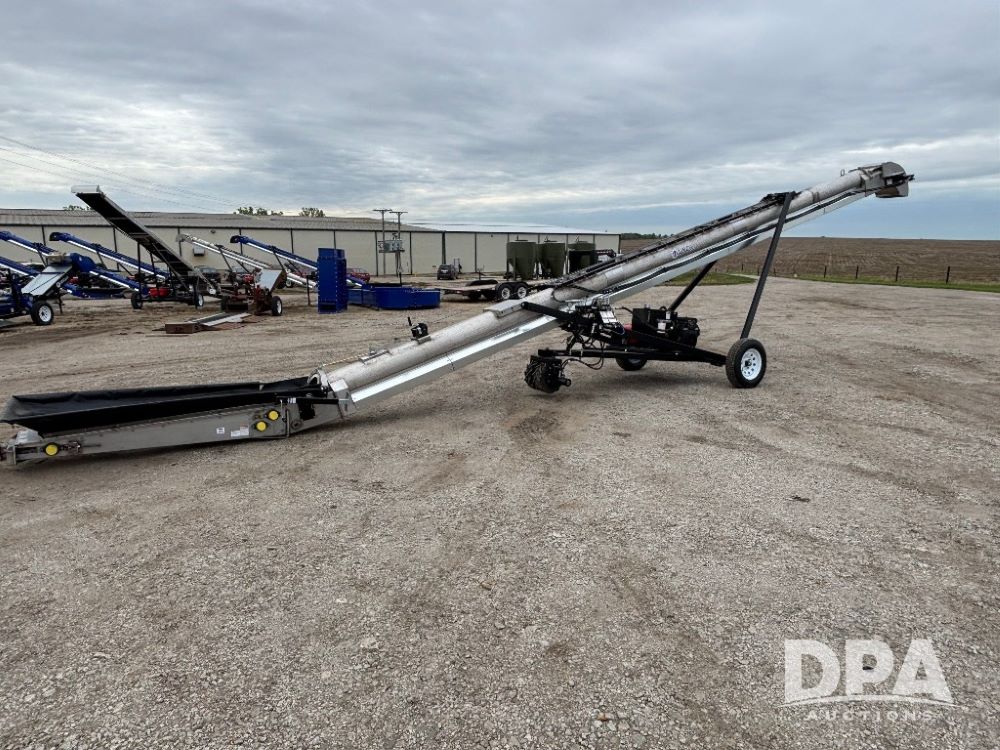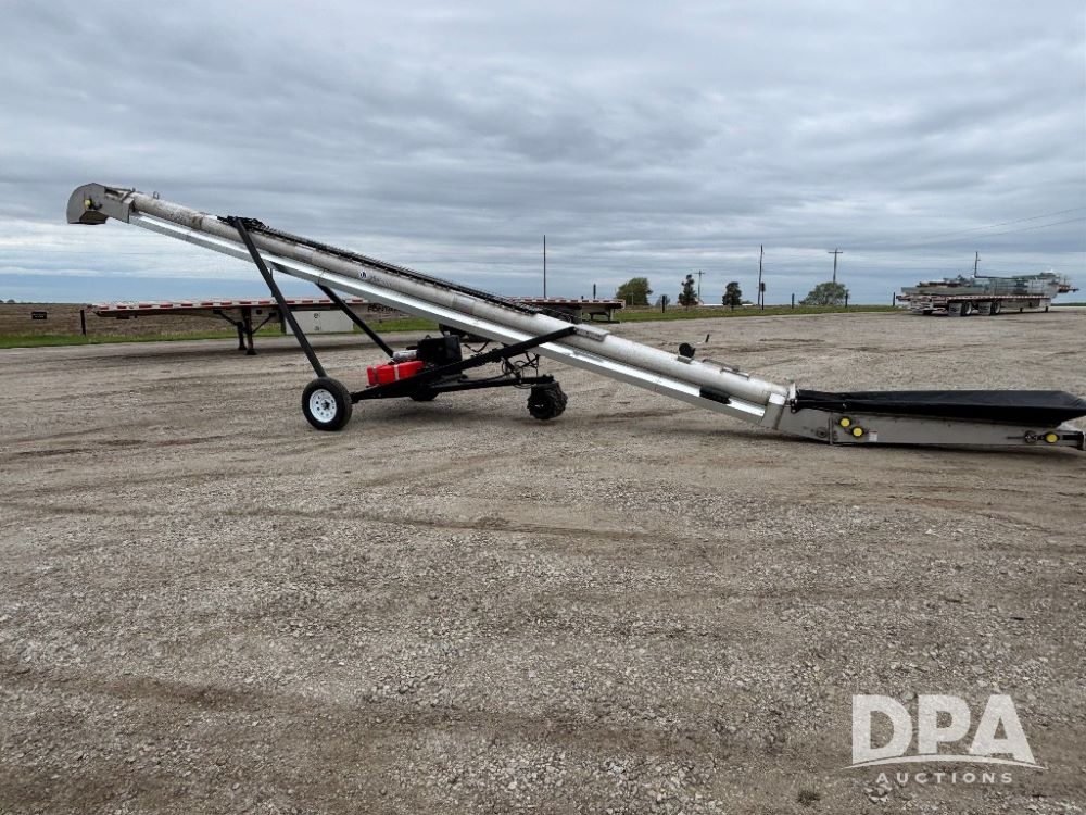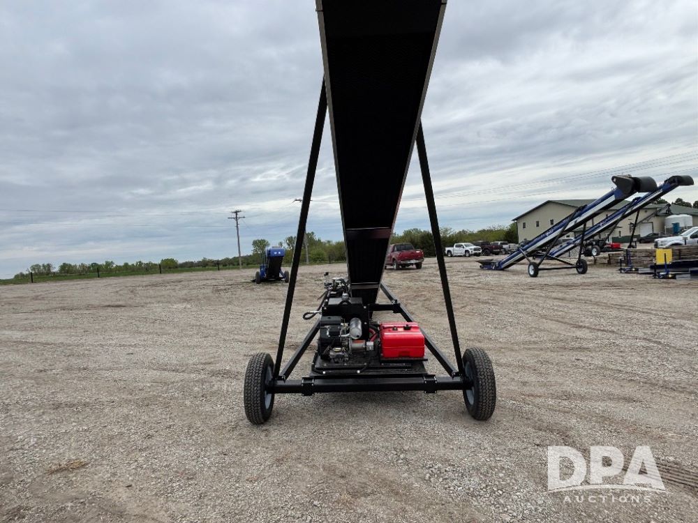 2026 USC FL75M40S00UC Stainless Steel Self-Mover Conveyor (NP6540), NEW, Kohler 20 HP Gas Engine, Gas Powered Hydraulic Pack, 40' Long, 12" 12 Gauge stainless steel Tube, 15" Chevron Belt, Carbon Steel Construction (except for SS tube), 1.5" Dodge bearings, Standard A-Frame Undercarriage, Self-mover with directional control, Collapsible inlet hopper, ST205/75D15 Tires, jack stand.