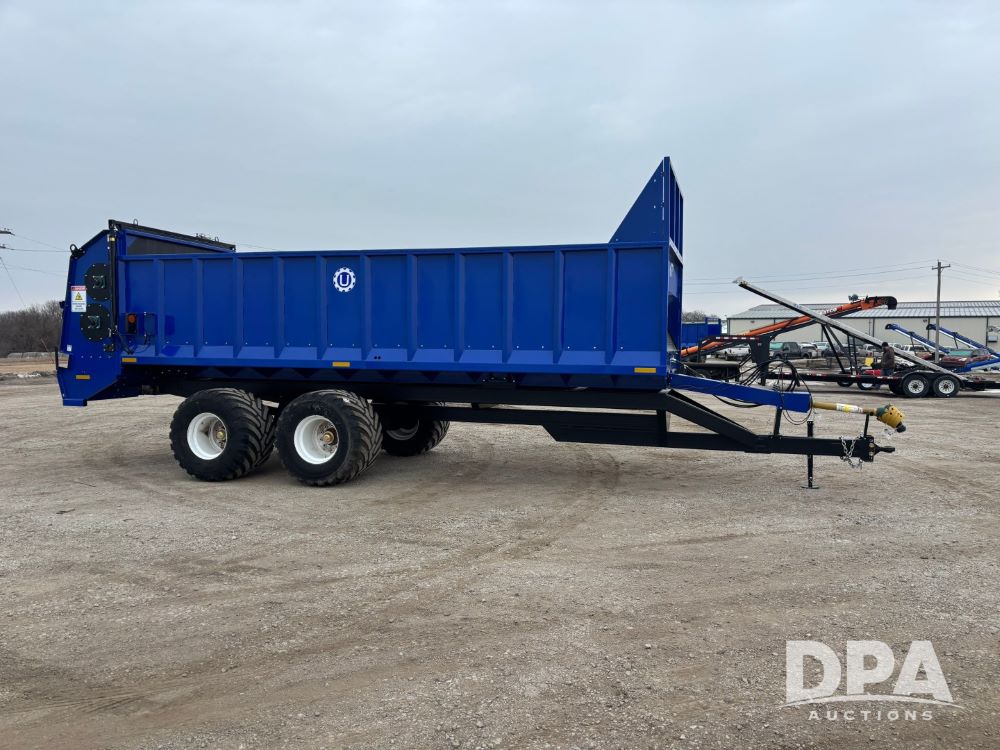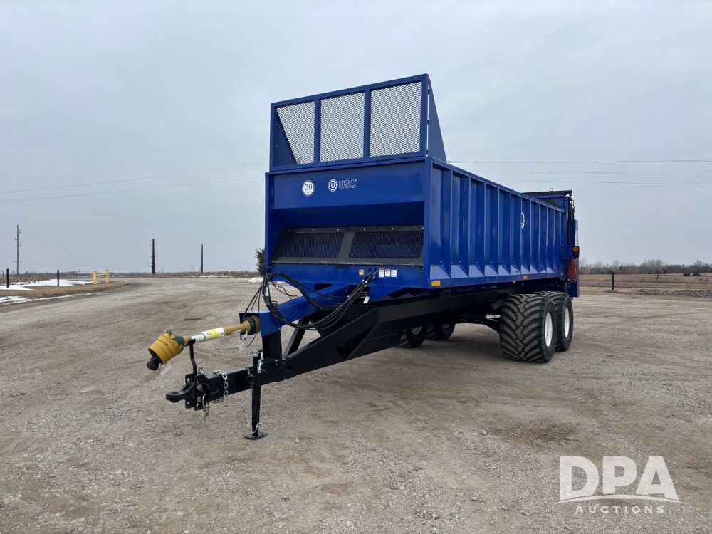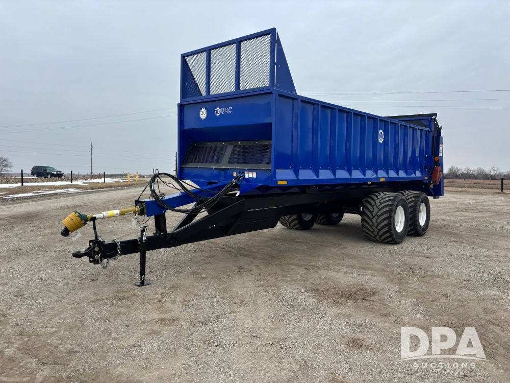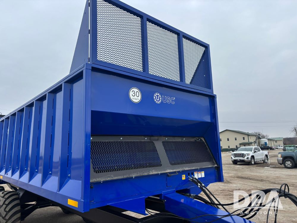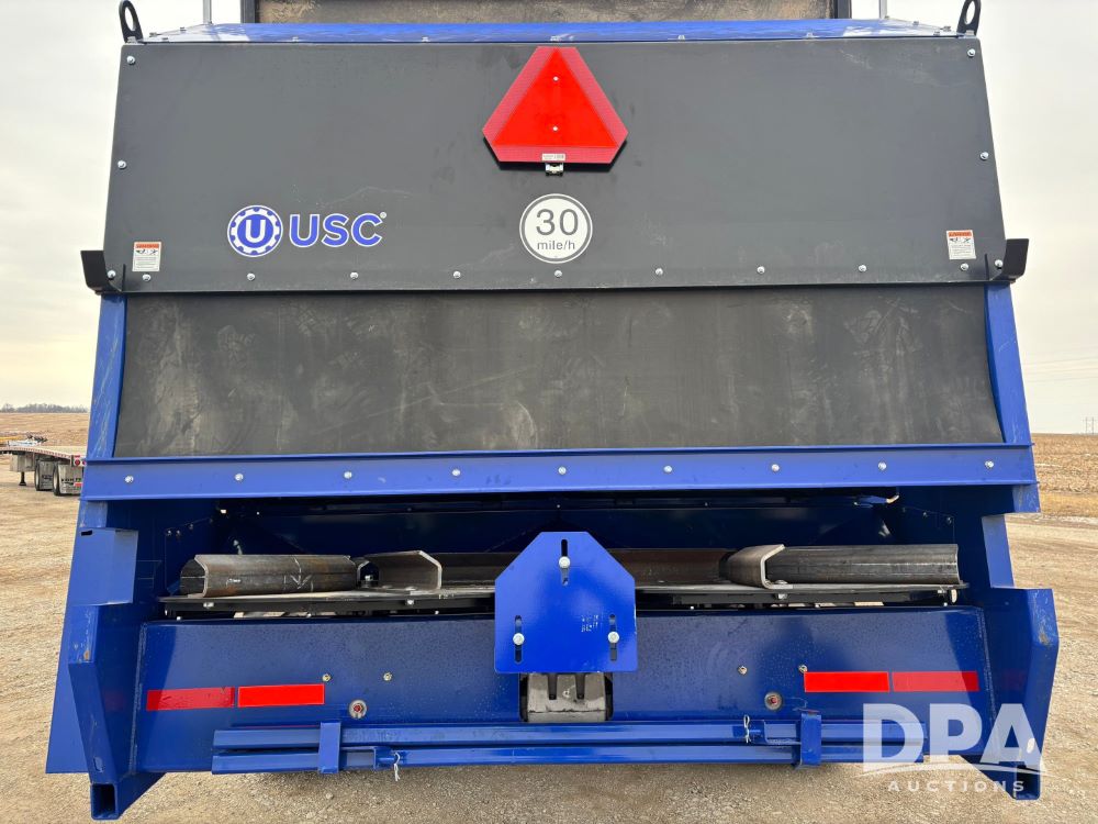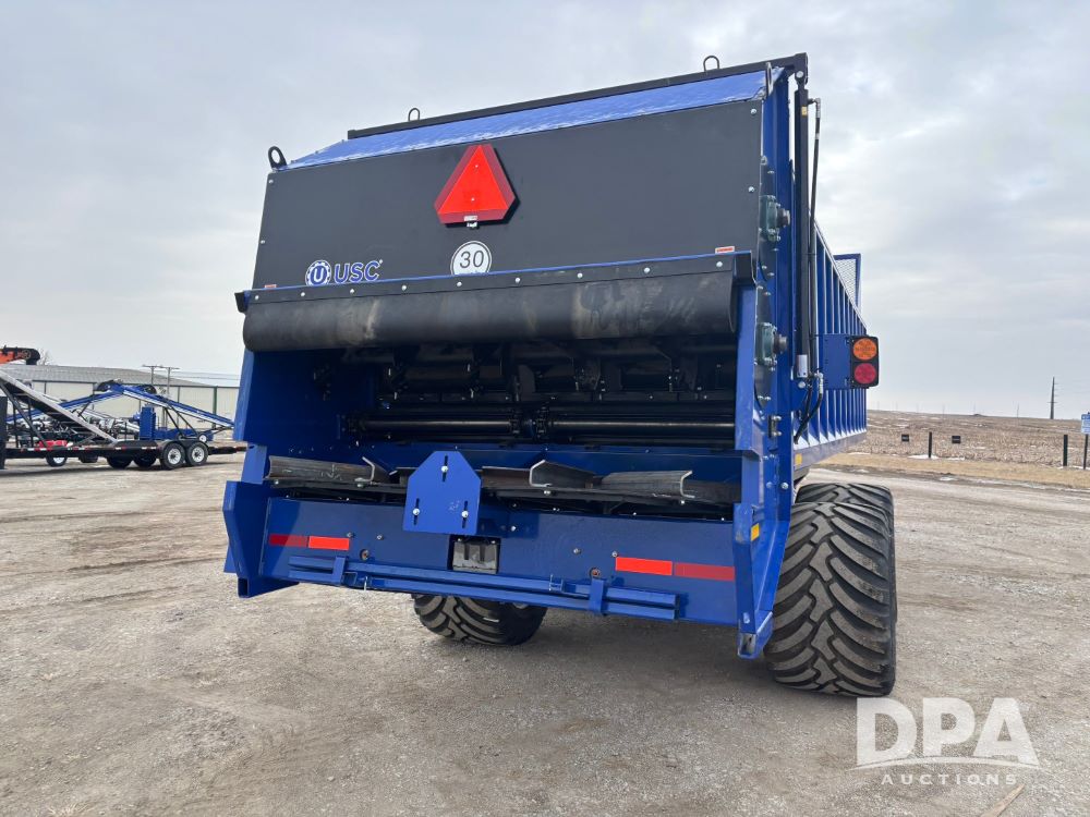 NEW 2026 USC Commercial Litter Spreader (NP6546), 36.5' length, 10.5' width, 12.75' height, capable of hauling up to 941 cubic feet of material, 1000 PTO, oscillating axles with flotation tires, hydraulic controlled guillotine style flow gate and floor chain for easy flow adjustment, adjustable plate for spread pattern changes, easily removable spreading unit.