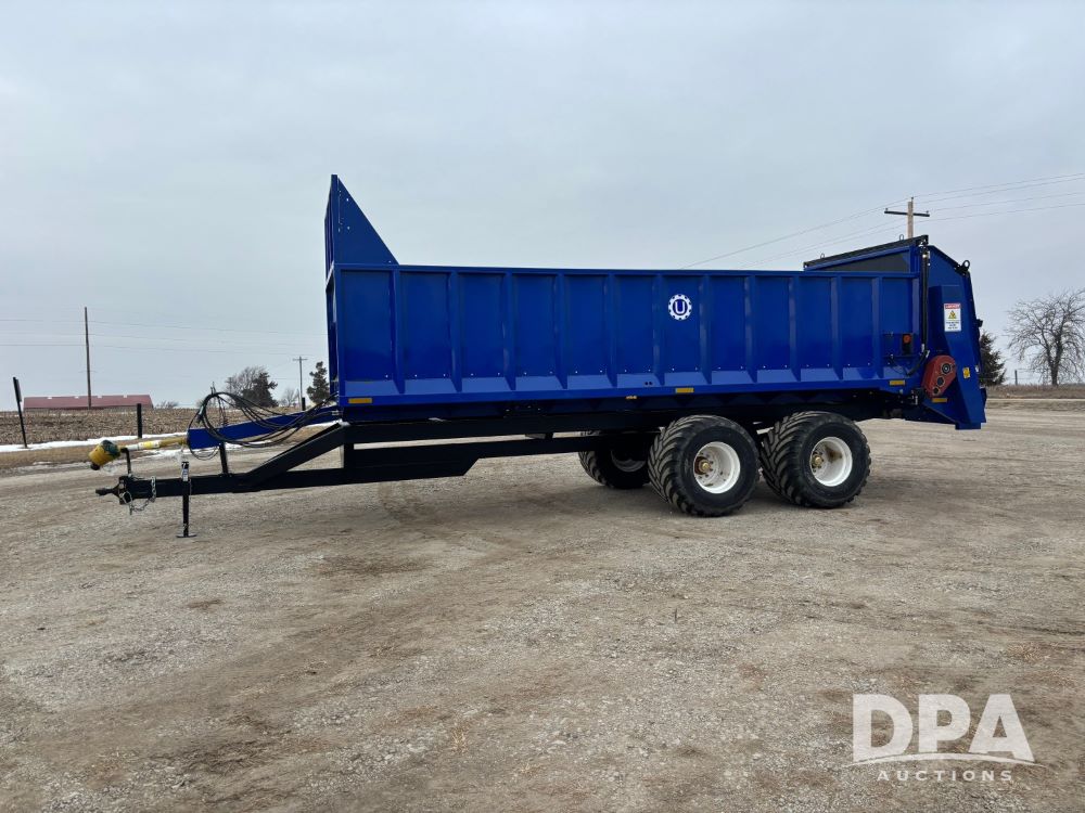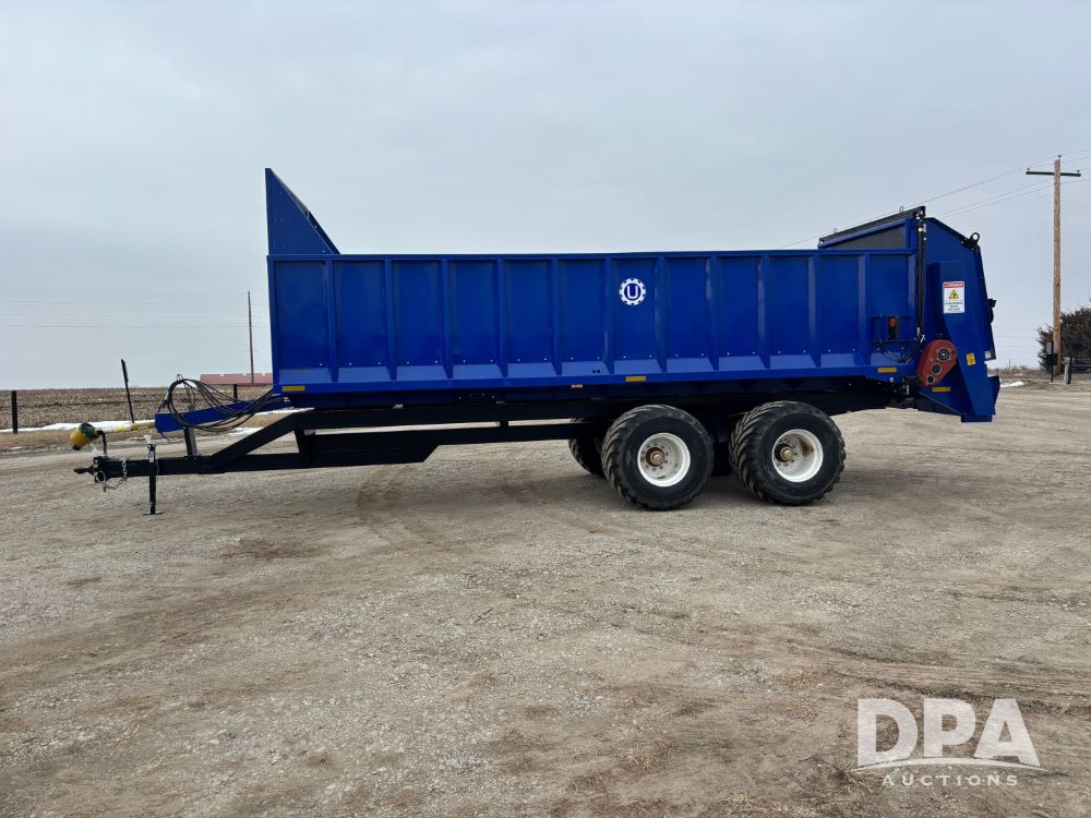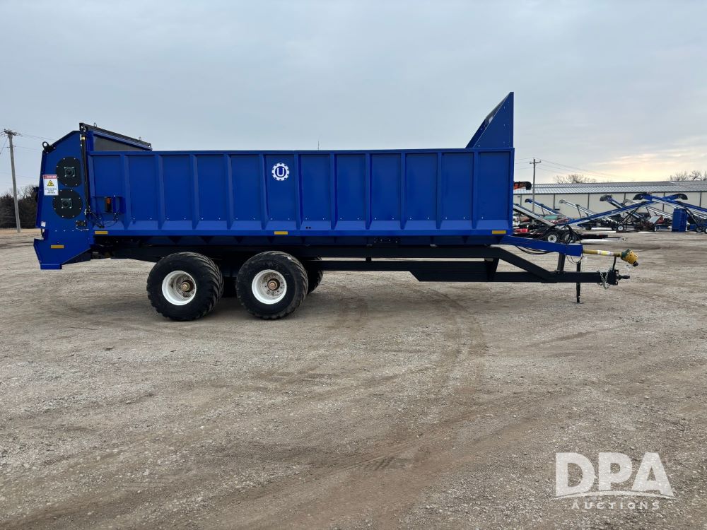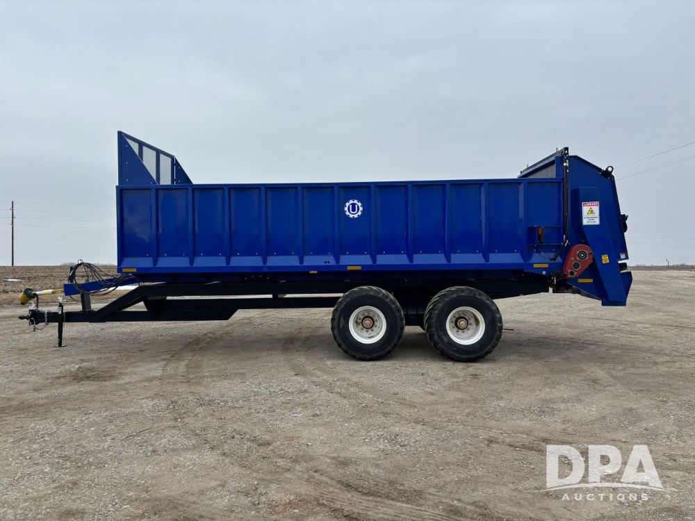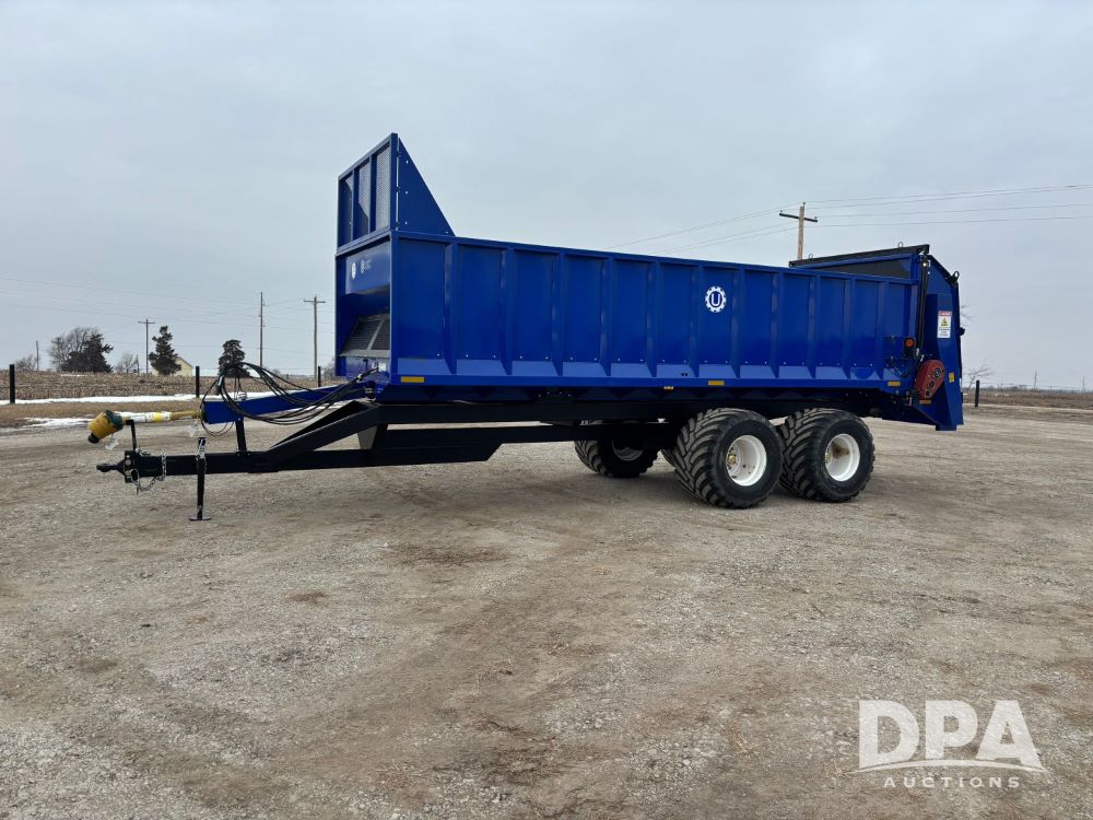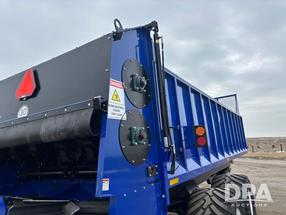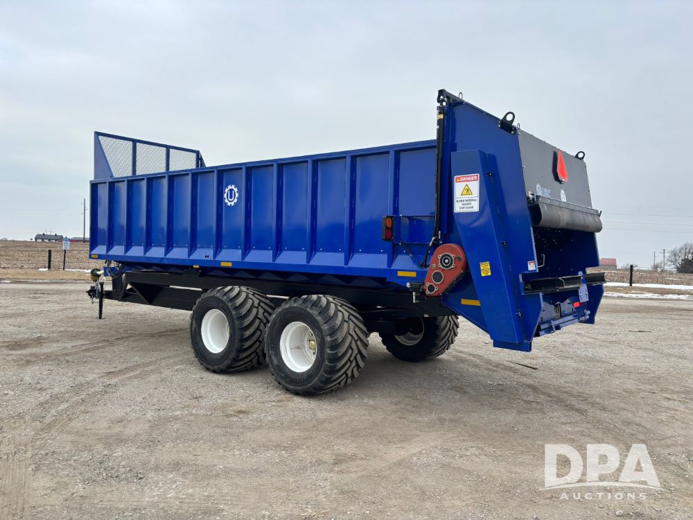 NEW 2026 USC Commercial Litter Spreader (NP6546), 36.5' length, 10.5' width, 12.75' height, capable of hauling up to 941 cubic feet of material, 1000 PTO, oscillating axles with flotation tires, hydraulic controlled guillotine style flow gate and floor chain for easy flow adjustment, adjustable plate for spread pattern changes, easily removable spreading unit.