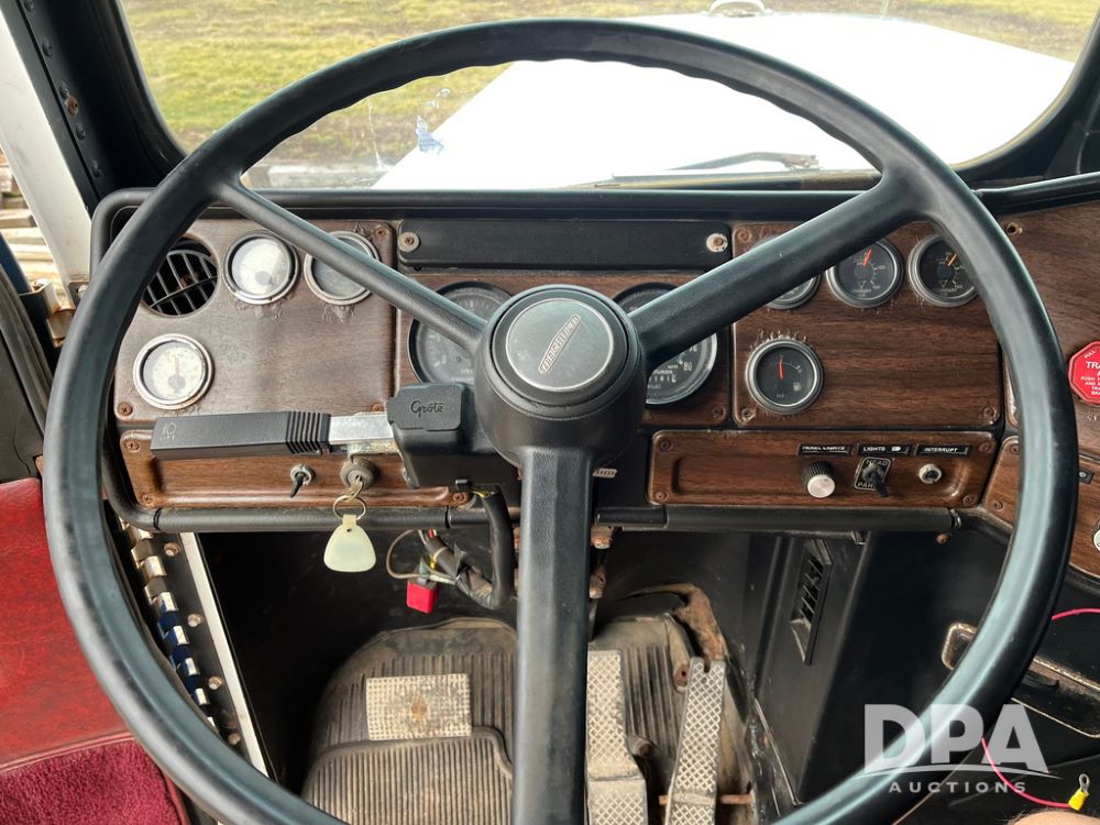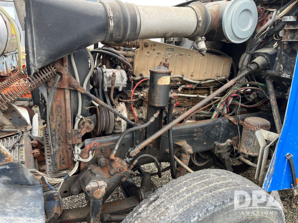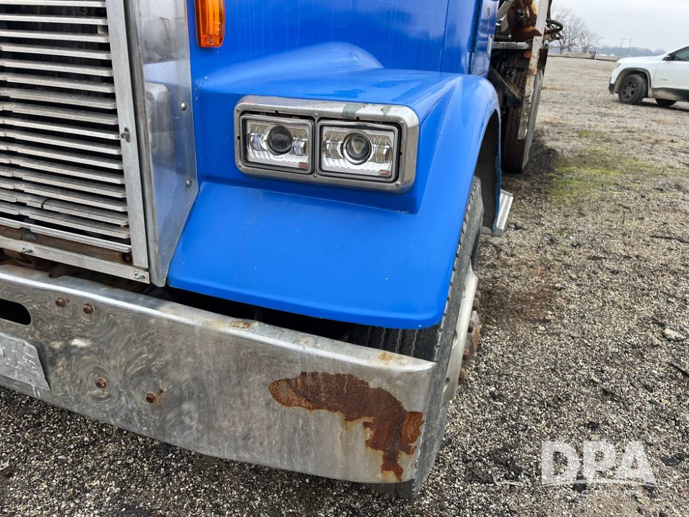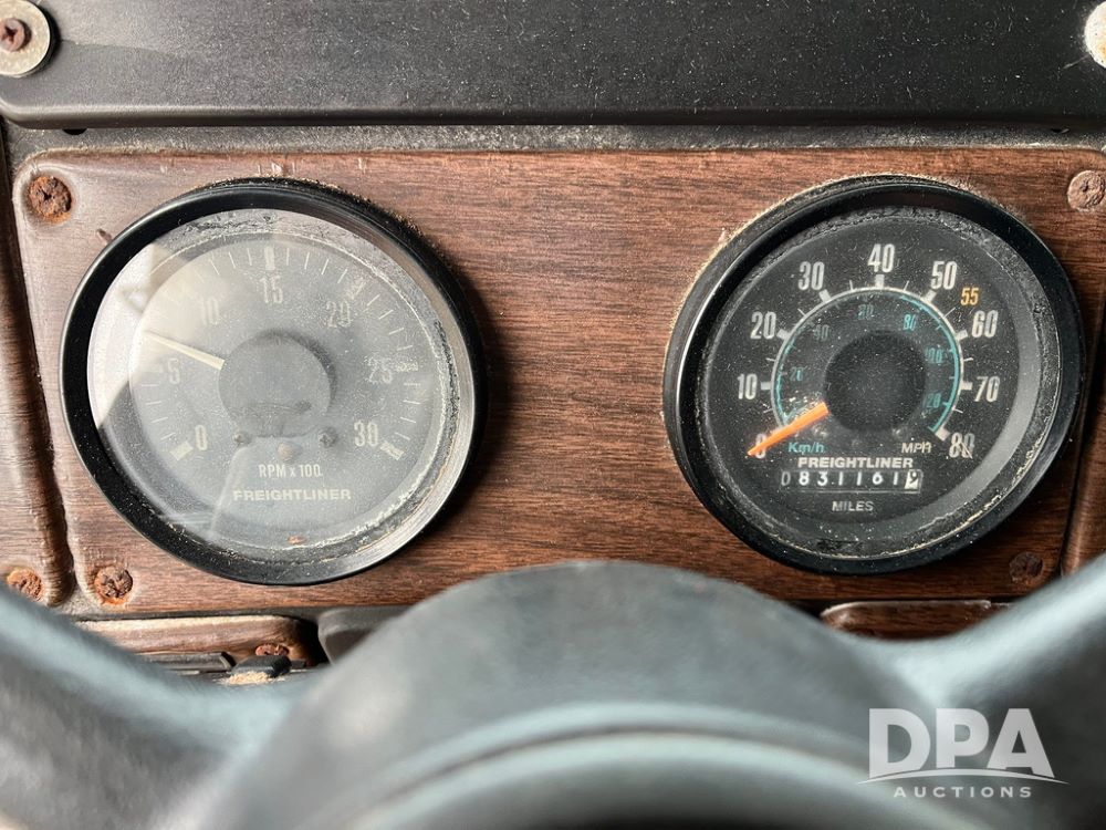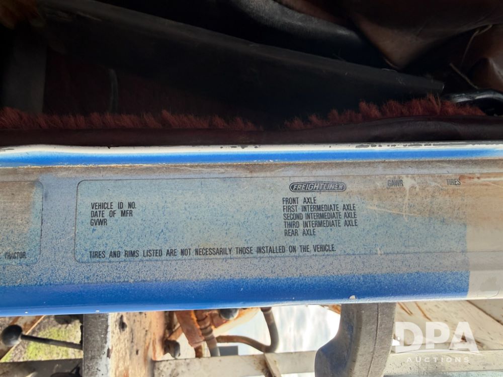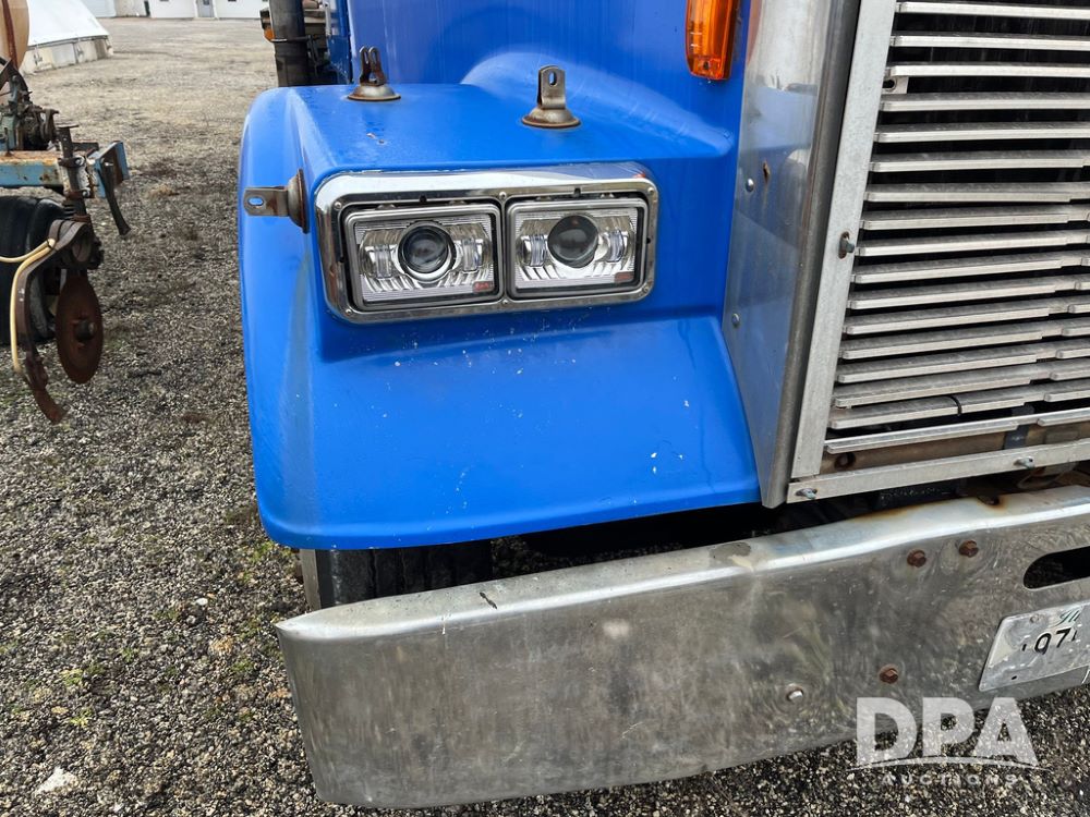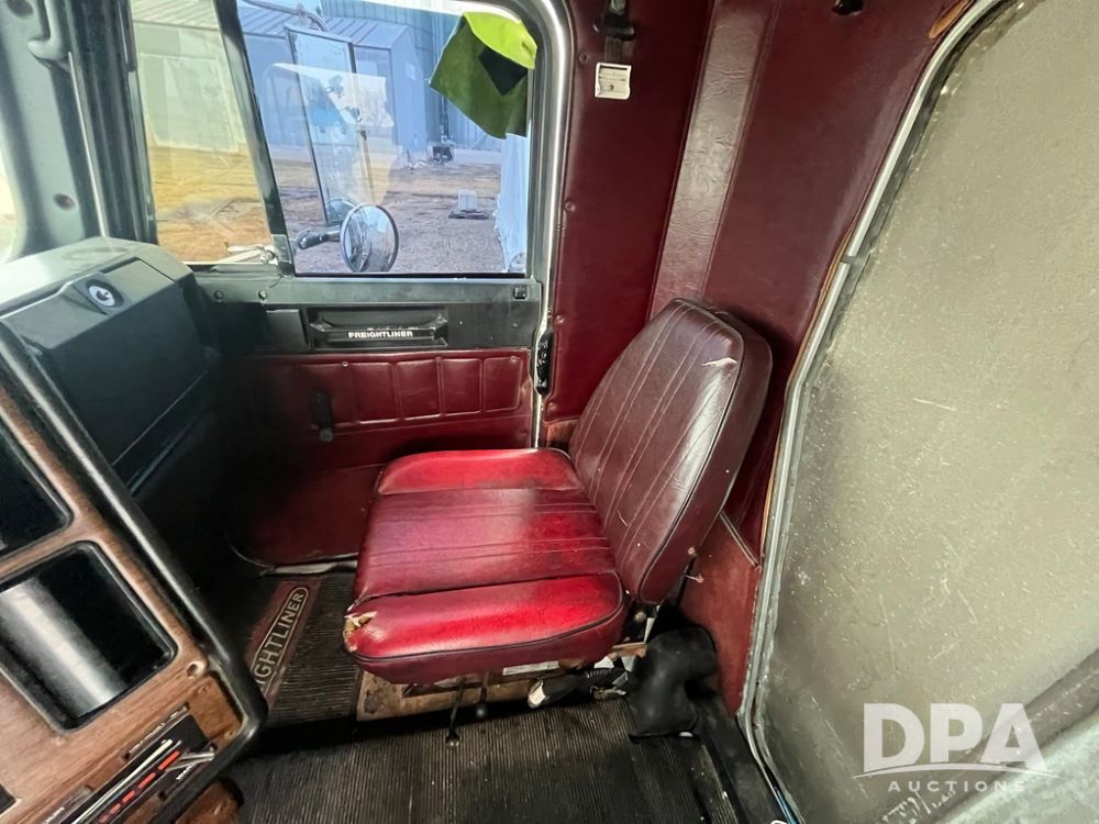1988 Freightliner Tender Truck (JN4010), Cummins engine, Eaton Fuller transmission, 16 ton stainless steel fert bed, side discharge auger, 4 hoppers, roll tarp, tandem axle, 11R24.5 tires, shows 831,161 miles.