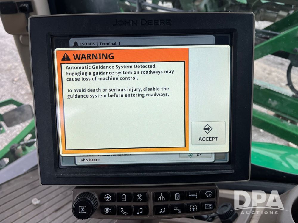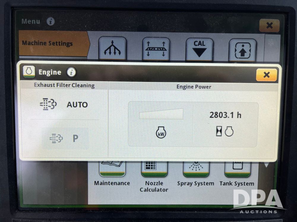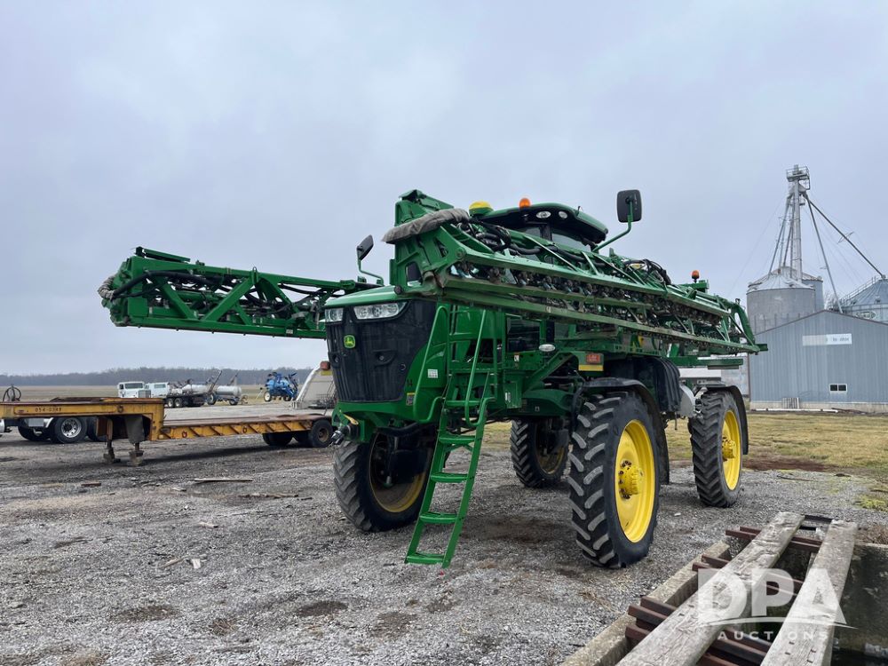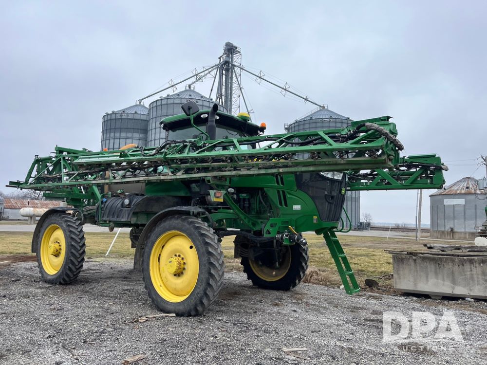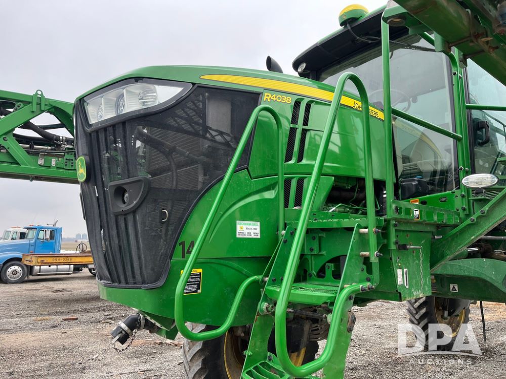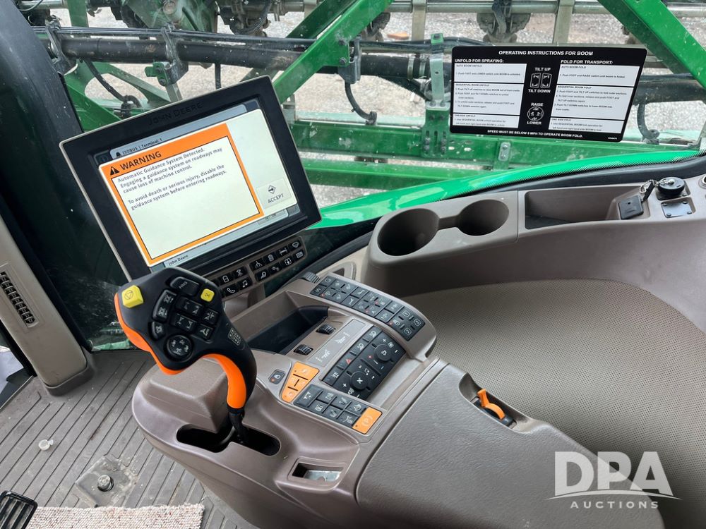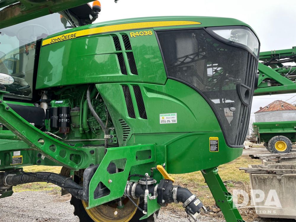 2019 John Deere R4038 Sprayer (JN4013), John Deere diesel engine (SN:RG6090U079240), hydrostatic transmission, heat, air conditioning, radio, 1,000 gallon stainless steel liquid system, 120' boom, 15" spacing, Exact Apply, front fill, 380/90R46 row crop tires, fenders, StarFire 6000 globe, John Deere monitor, shows 2,803 hours.