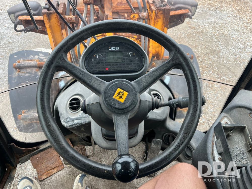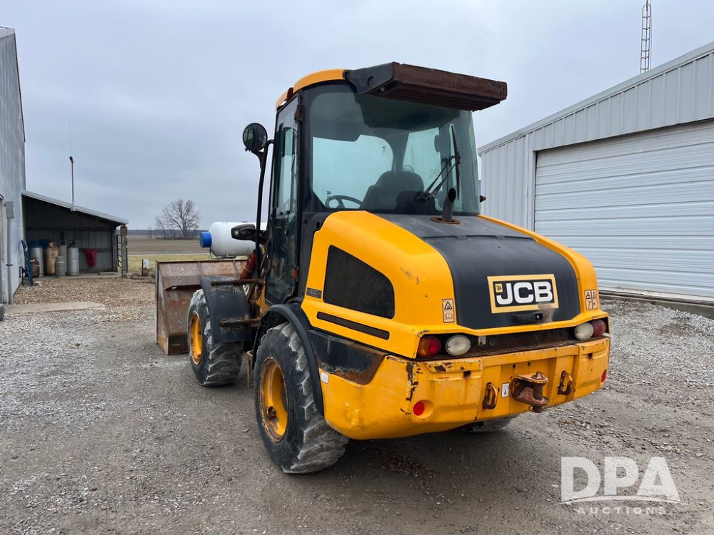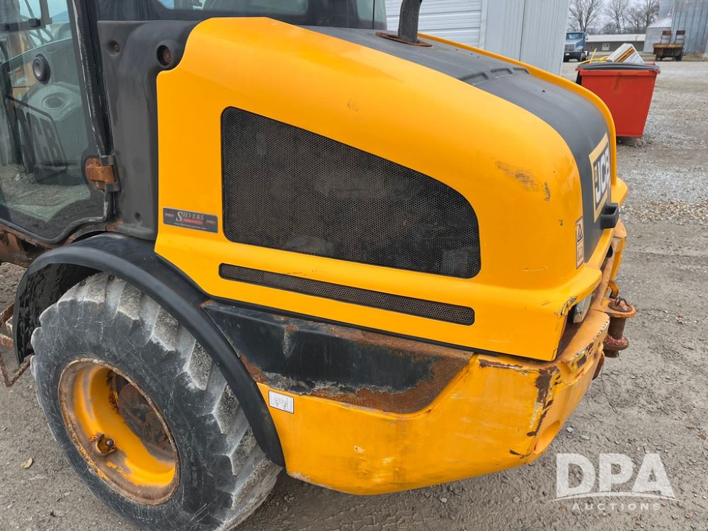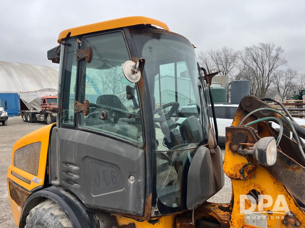 2015 JCB Wheel Loader (JN4026), enclosed cab, 4 cylinder JCB diesel Kohler engine, radio,12.5/80-18 tires, shows 2,554 hours.