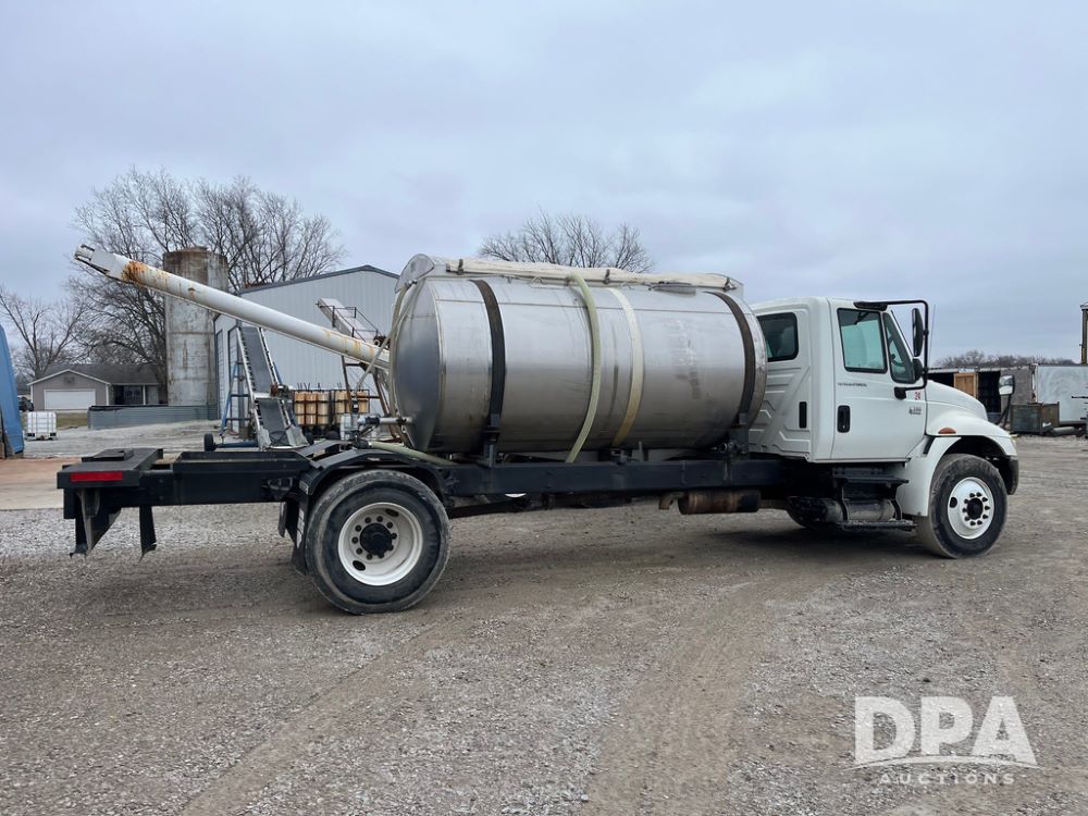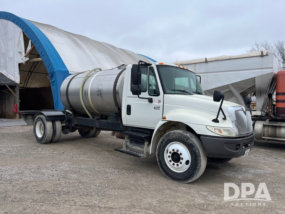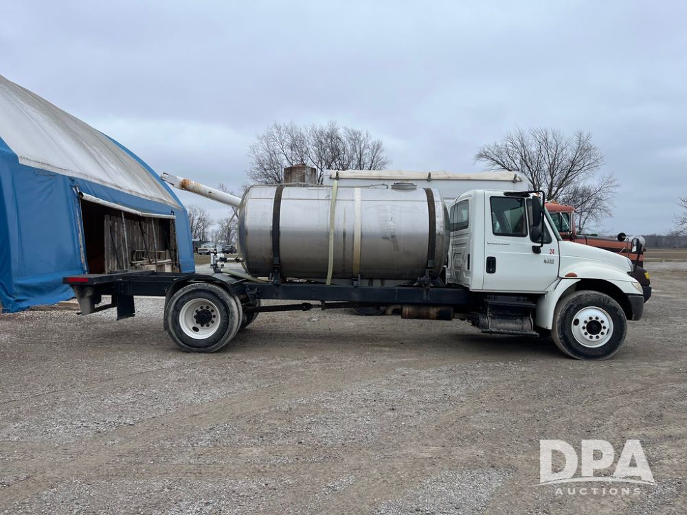 2005 International 4300 Liquid Tender (JN4025), DT466 engine, Allison automatic transmission, heat, air conditioning, radio, 1600 gallon stainless steel tank, 11R22.5 tires, shows 179,437 miles.
