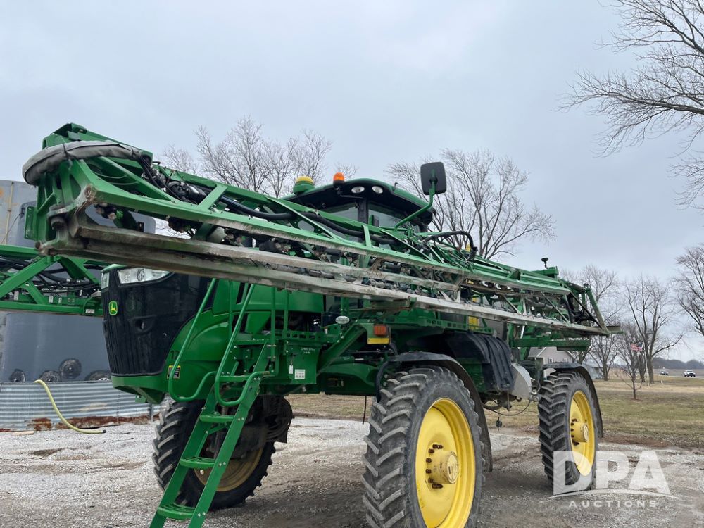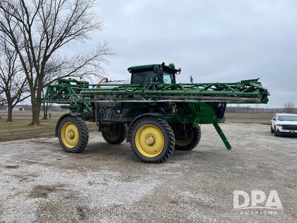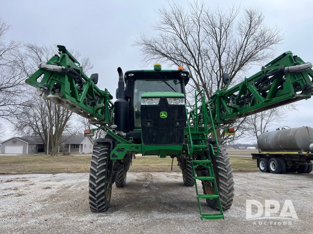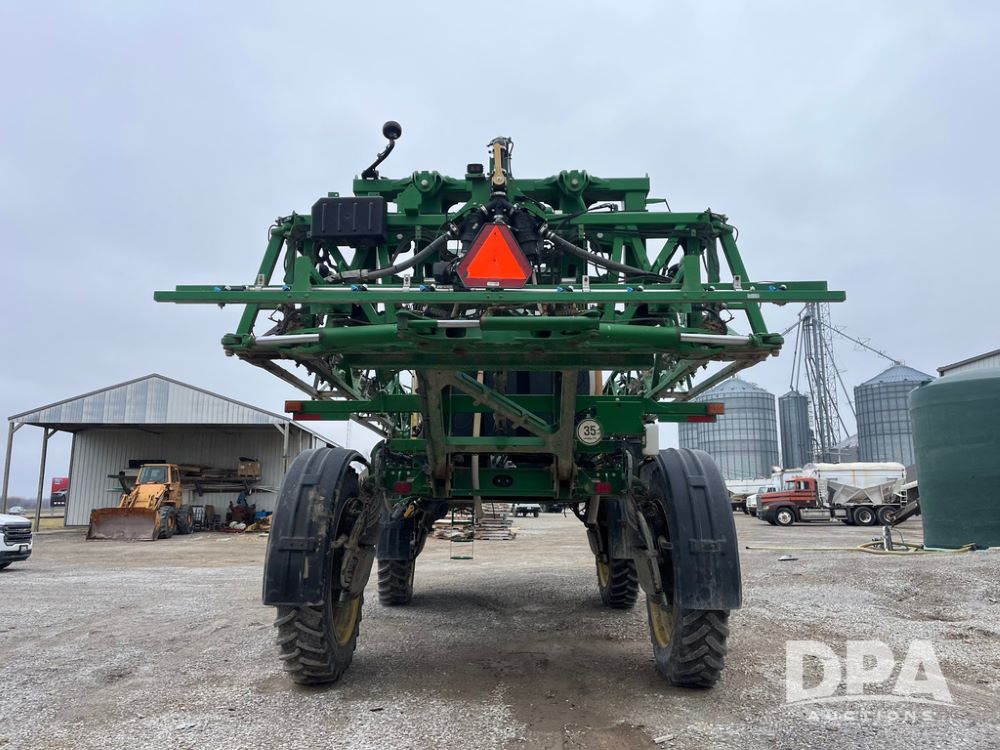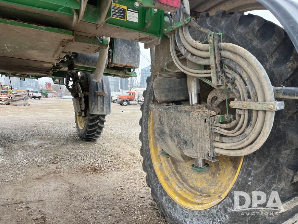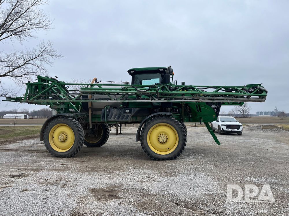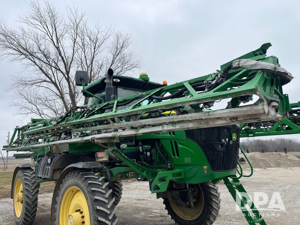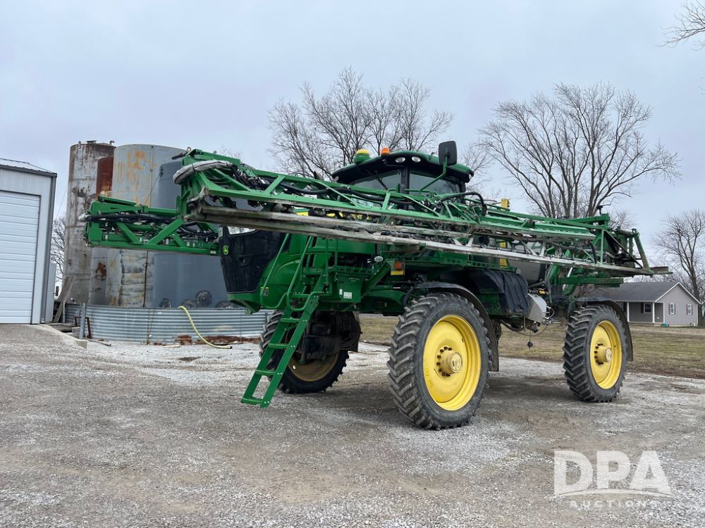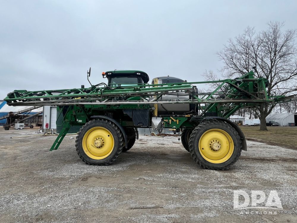 2017 John Deere R4038 Sprayer (JN4023), John Deere diesel engine (SN:RG6090U033585), hydrostatic transmission, heat, air conditioning, radio, 1,000 gallon stainless steel liquid system, 120' boom, 15" spacing, front fill, 380/90R46 row crop tires, fenders, StarFire 3000 globe, John Deere monitor, shows 3,494 hours.