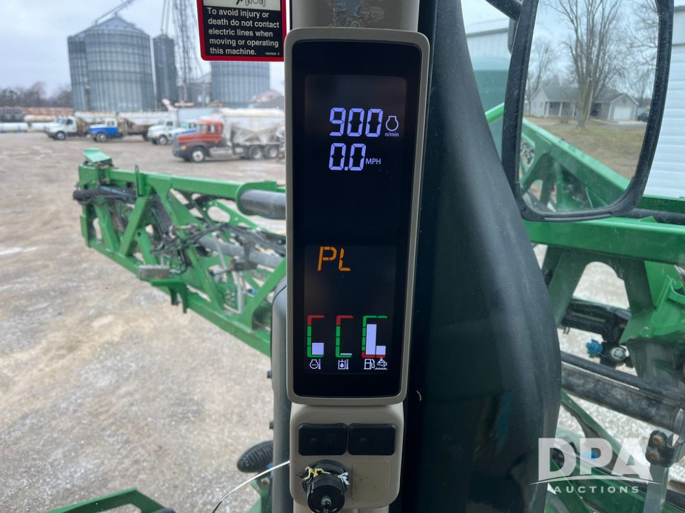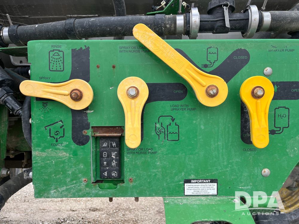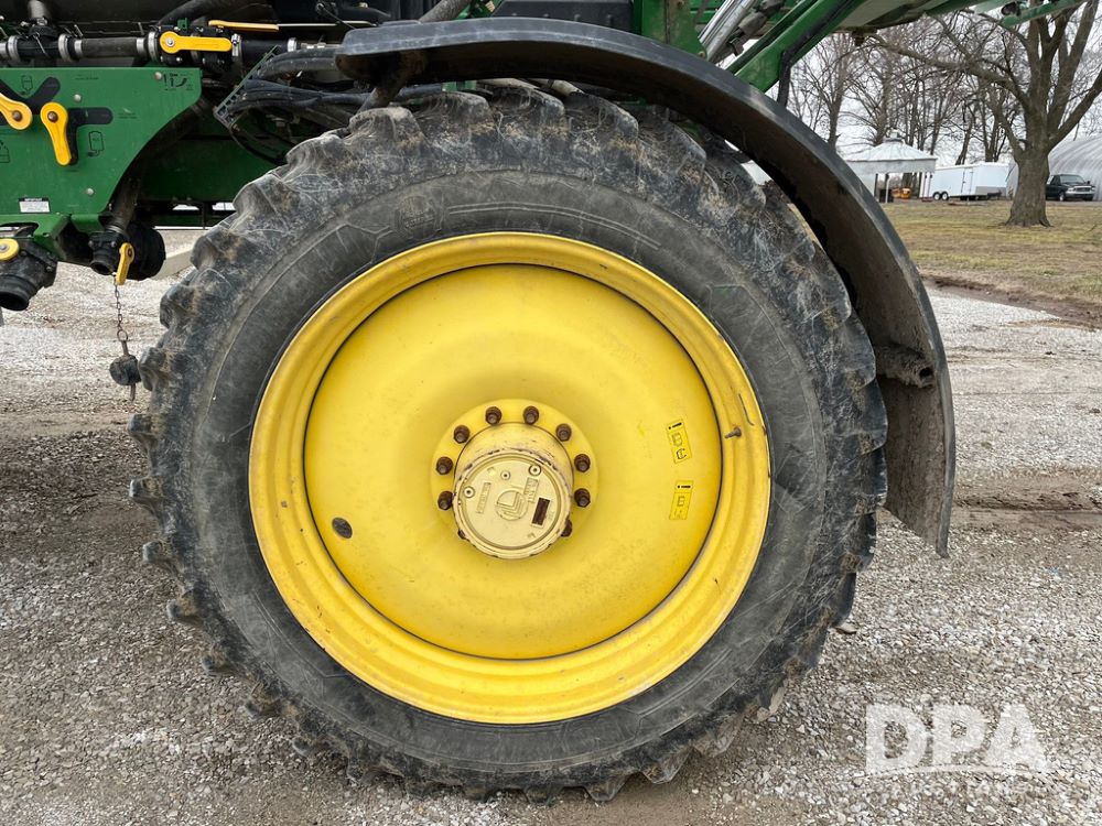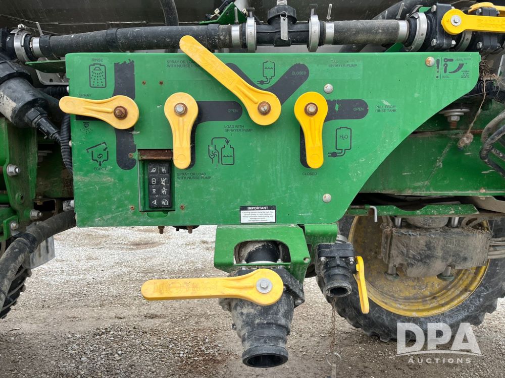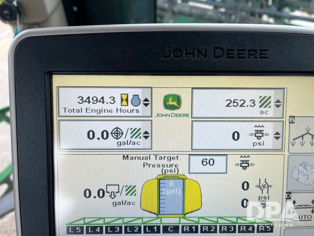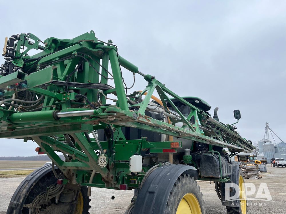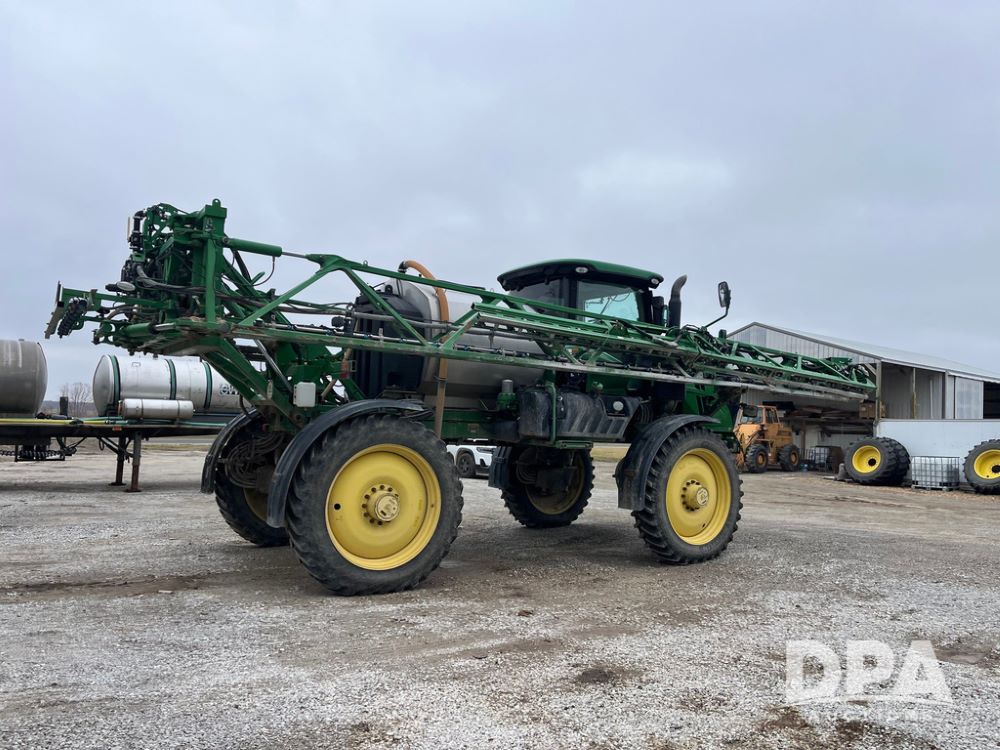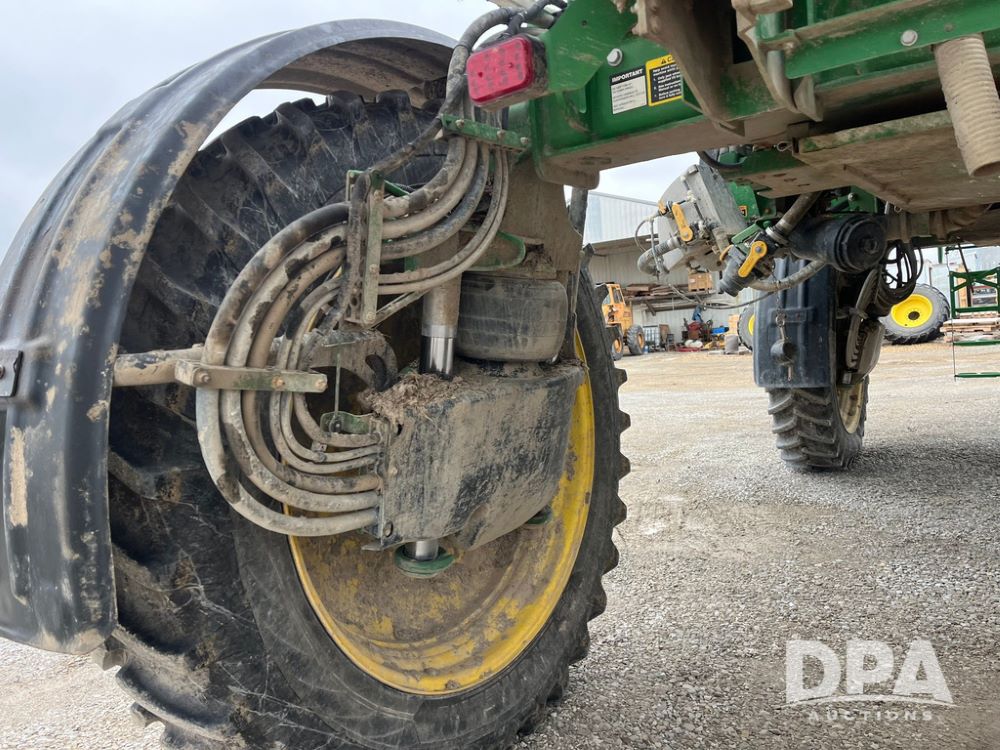 2017 John Deere R4038 Sprayer (JN4023), John Deere diesel engine (SN:RG6090U033585), hydrostatic transmission, heat, air conditioning, radio, 1,000 gallon stainless steel liquid system, 120' boom, 15" spacing, front fill, 380/90R46 row crop tires, fenders, StarFire 3000 globe, John Deere monitor, shows 3,494 hours.