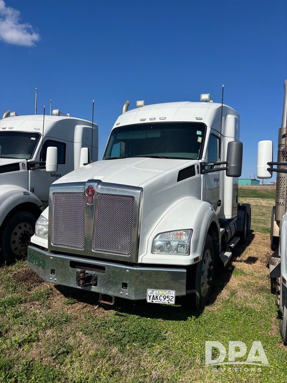 2019 Kenworth T880 Truck (DR13228 Unit 304300), Paccar diesel engine, 10 speed transmission, tandem axle full screw, studio sleeper cab, 5th wheel plate, dual aluminum fuel tanks, hydraulic wet kit, air dump valve, engine brake,cab heat/air conditioning, odometer reads 310,984 miles.