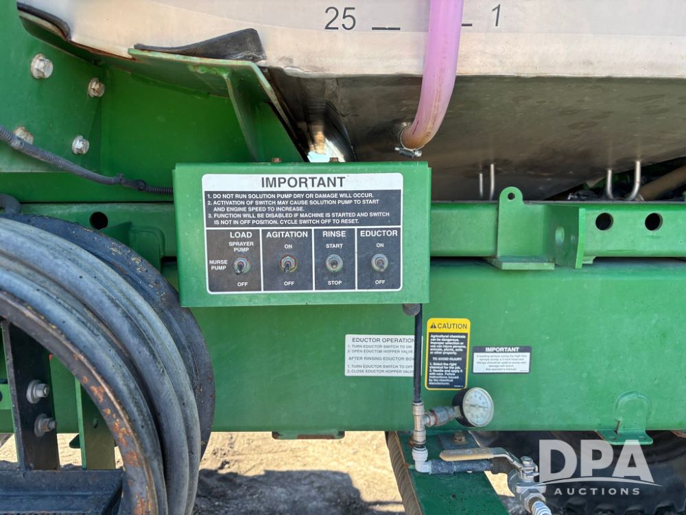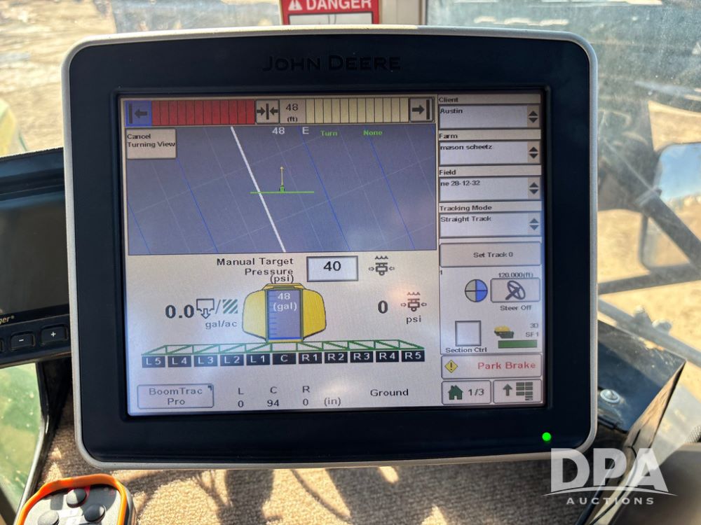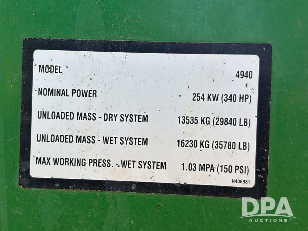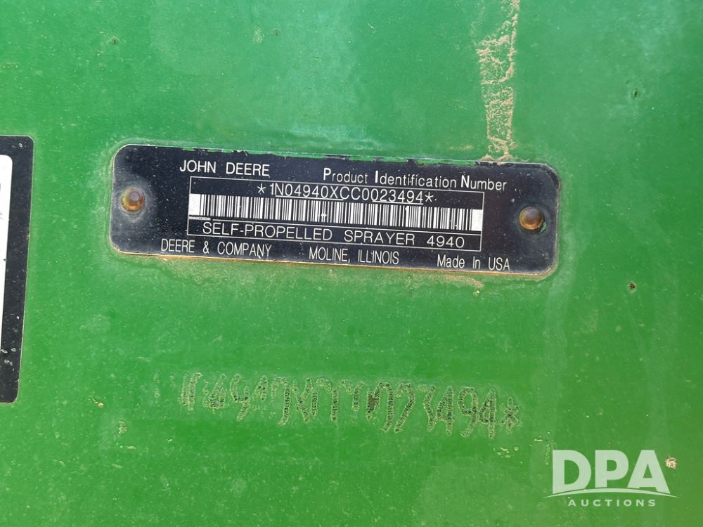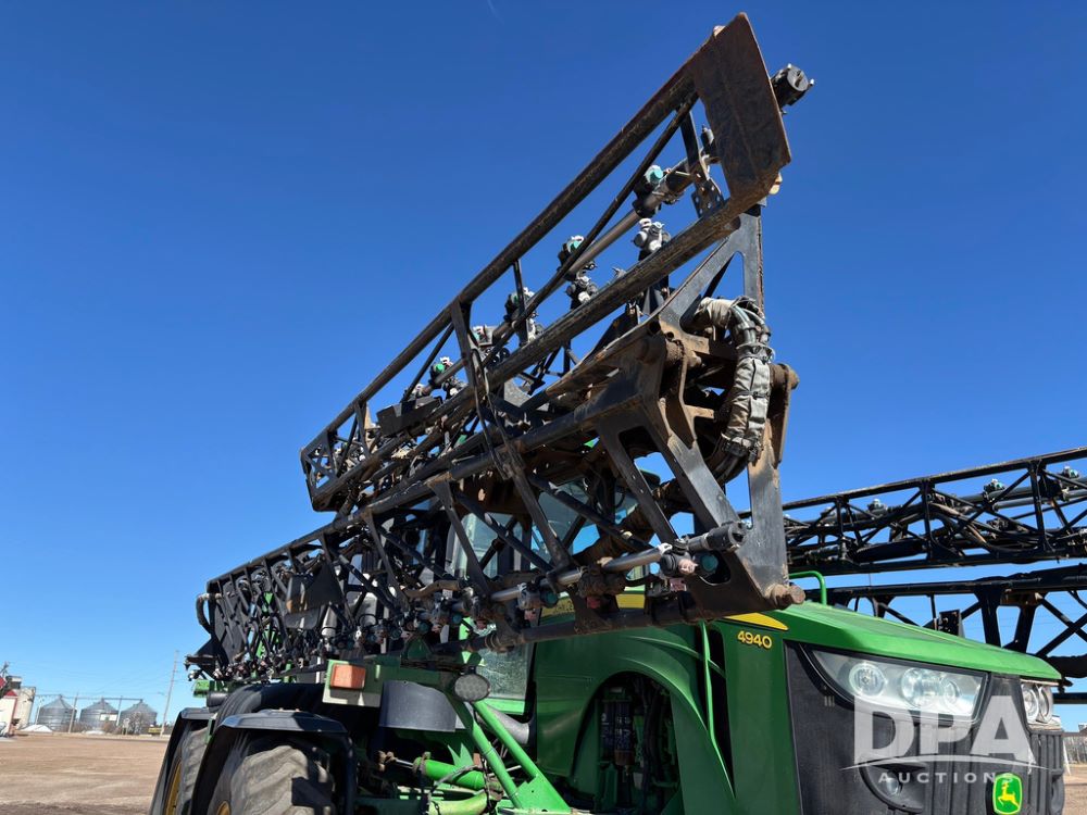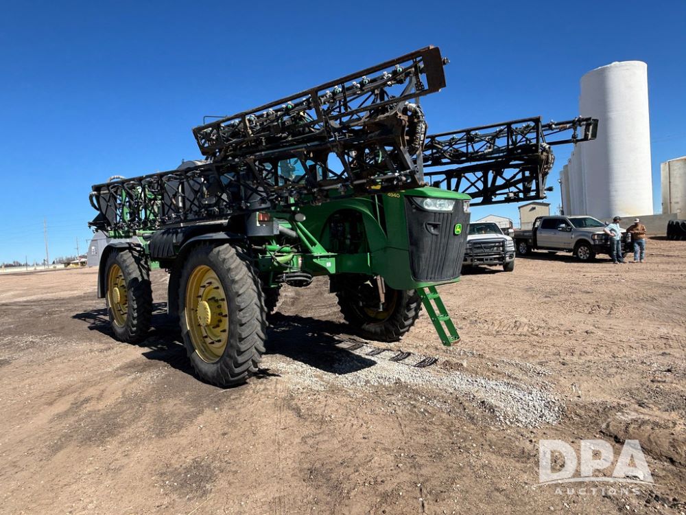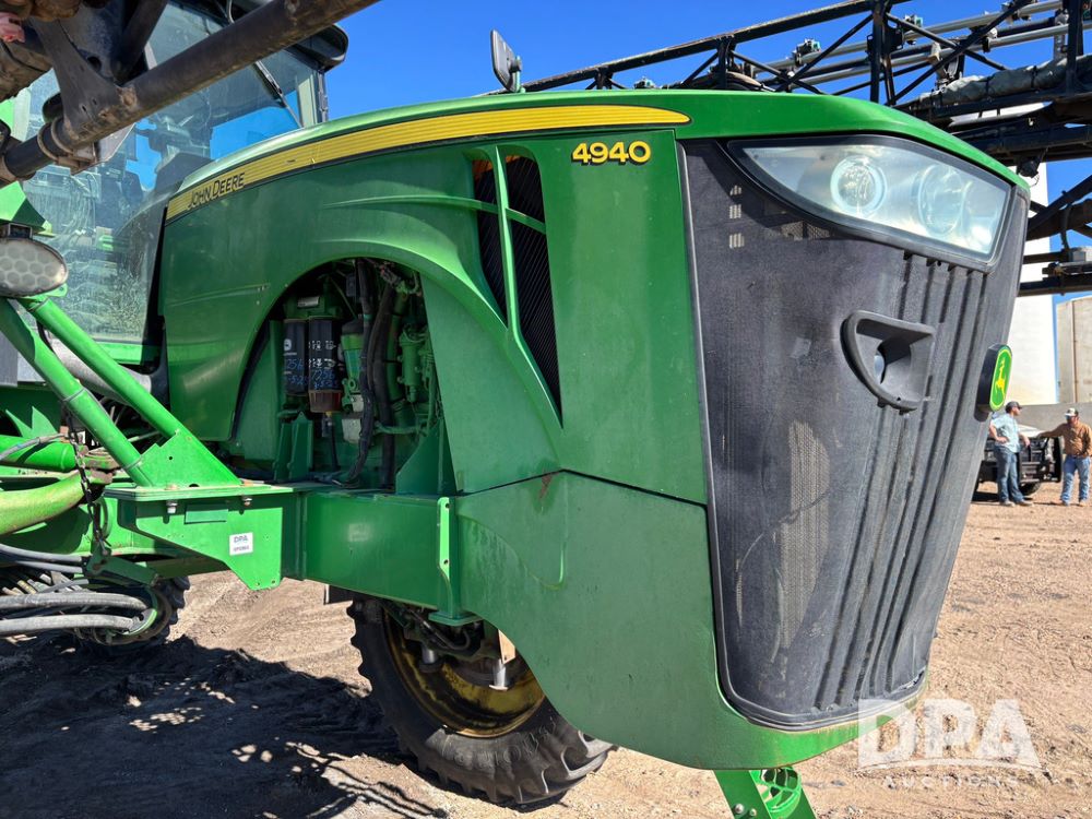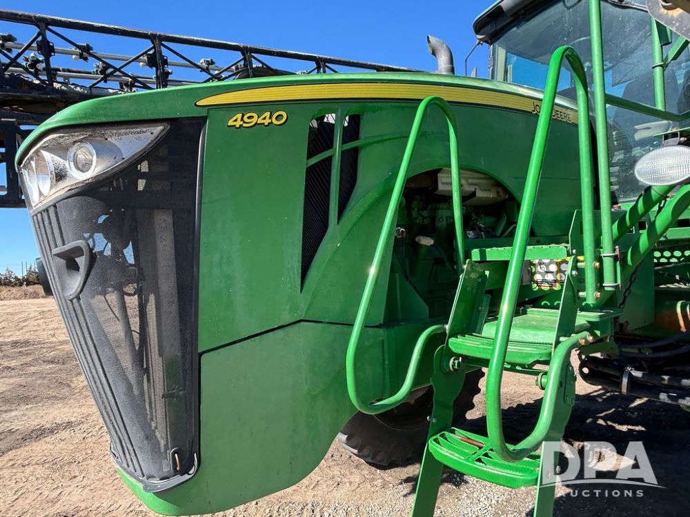2013 John Deere 4940 Sprayer (GP12864), John Deere diesel engine (S/N RG6090R030274), hydrostatic transmission, heat, Am/Fm radio, 1,200 gallon stainless steel liquid system, 120' boom, 5-way nozzle bodies, Firestone 380/90R46 row crop tires, fenders, Spray test system and remote sells with the machine, Voyager camera, StarFire 3000 globe, StarFire monitor, shows 7,307 hours.