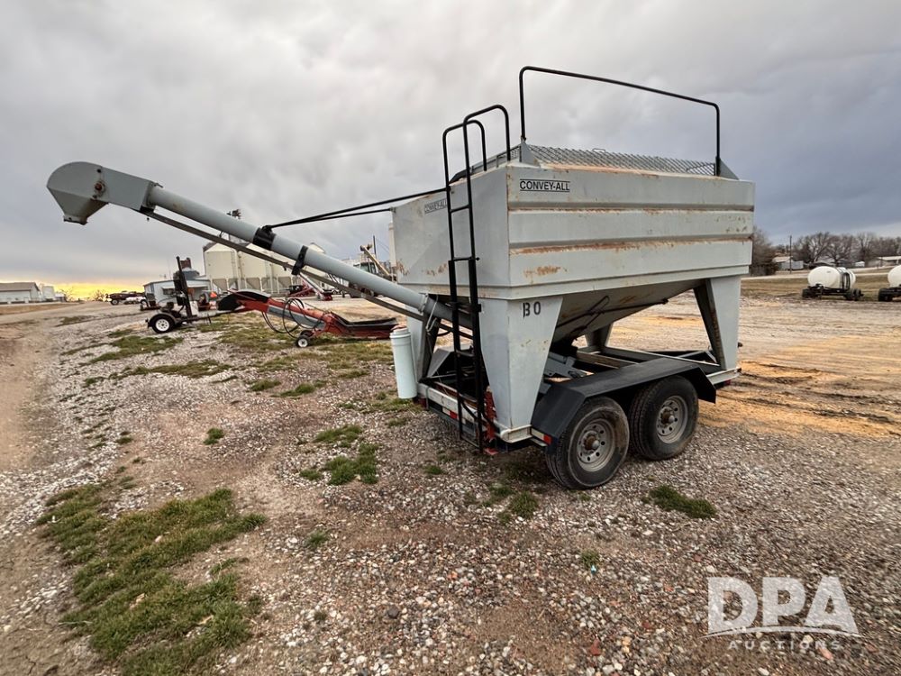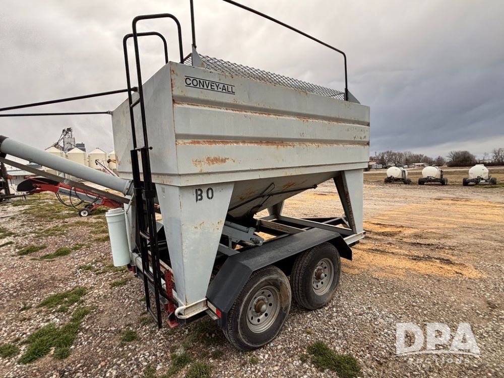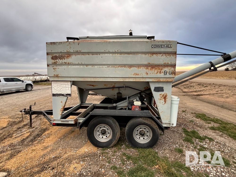 2008 Convey-All Seed Tender (GP12843, Unit BO), 2008 Convey-All seed tender, rear discharge conveyor, Honda GX160 5.5 hp gas engine, ladder, Patriot tandem axle, LT235/85R16 tires.