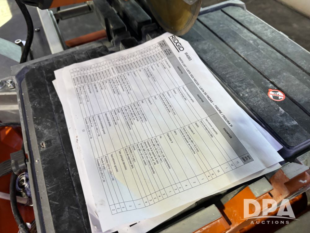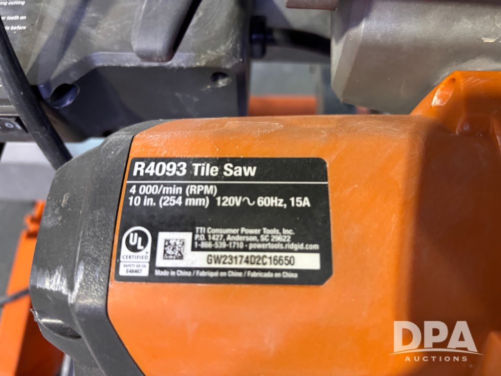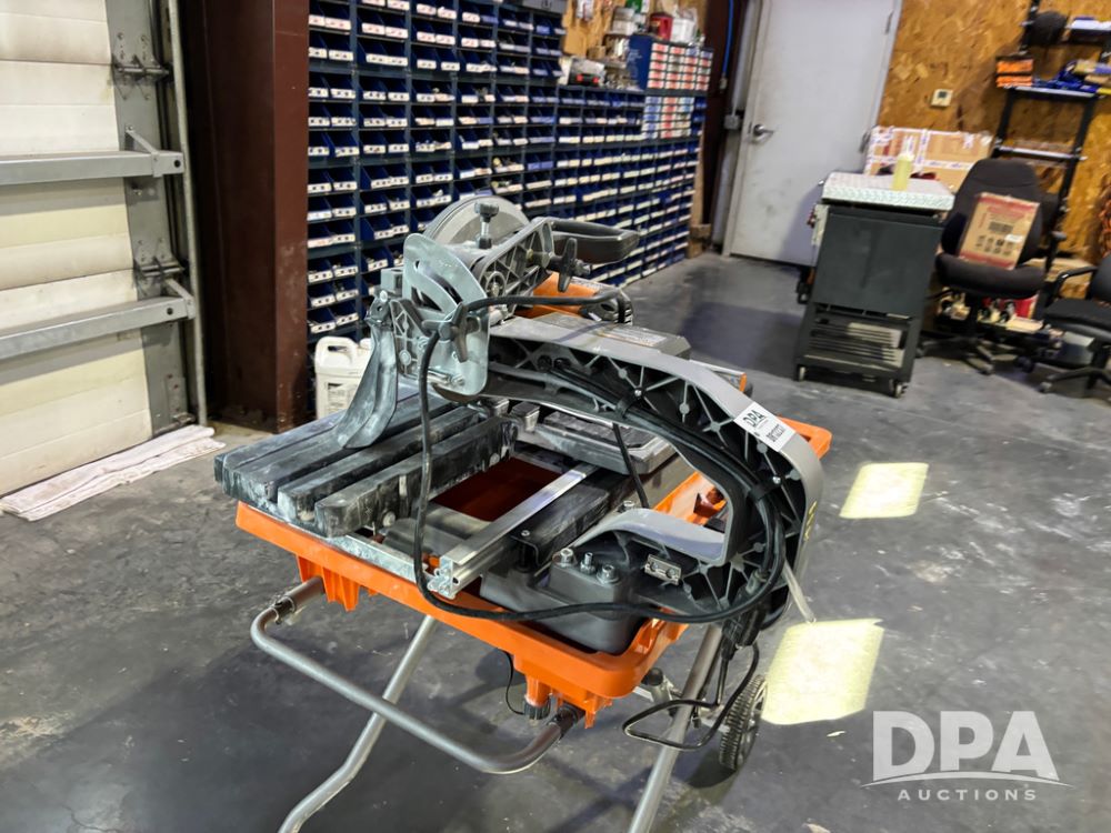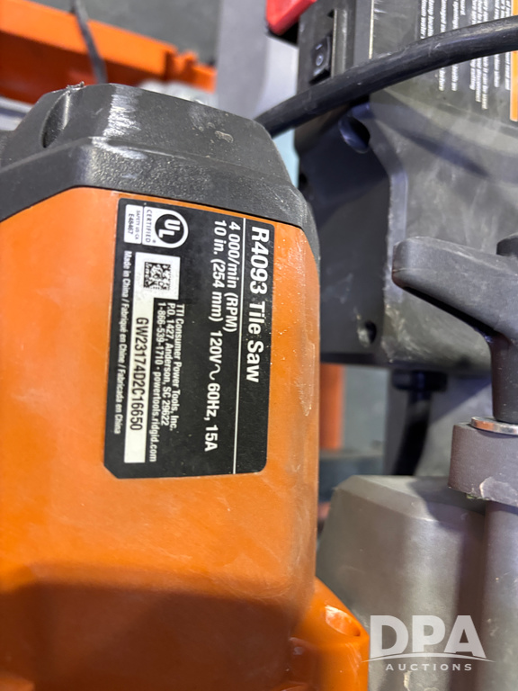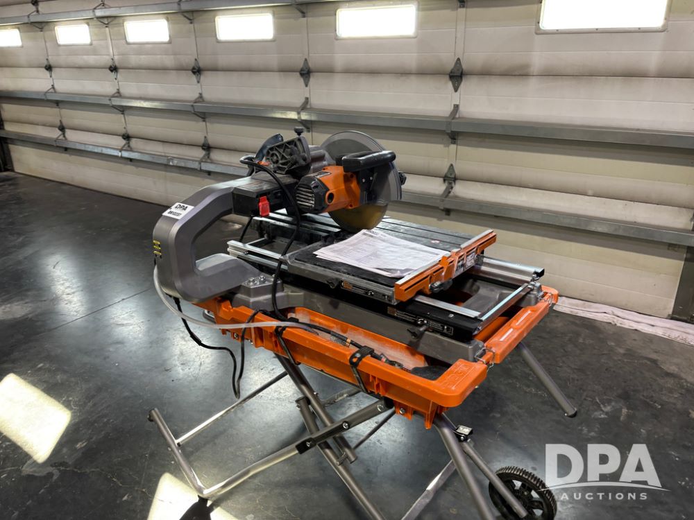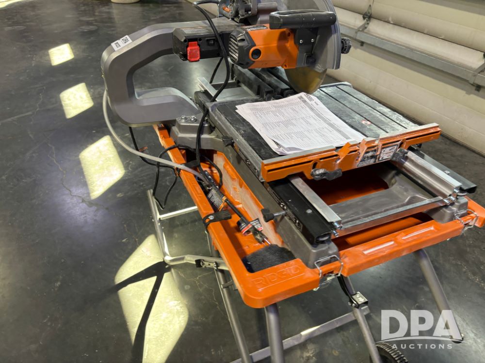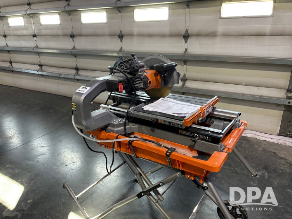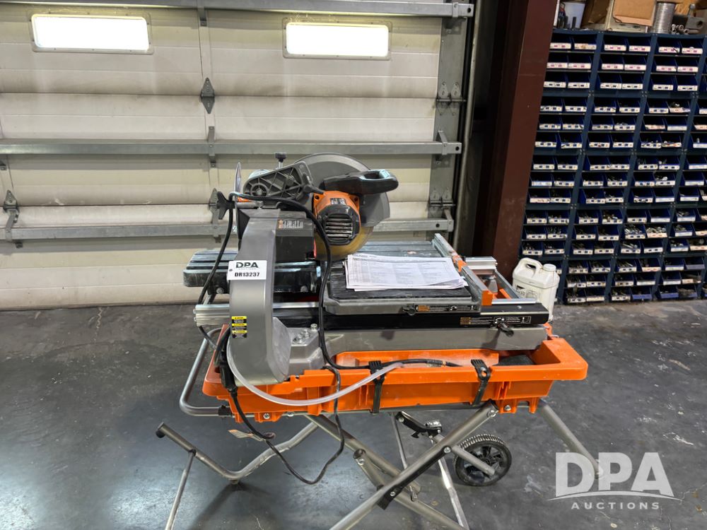 Rigid Tile Saw (DR13237), model R4093 electric wet tile saw, guide rip fence, folding self stand.