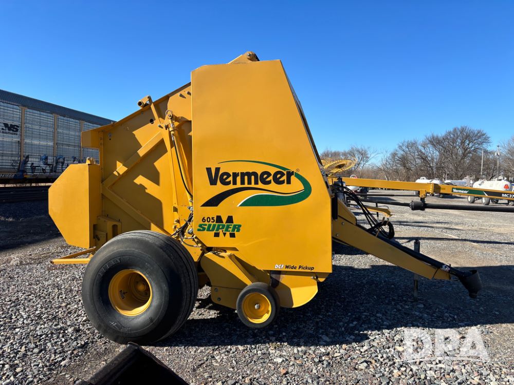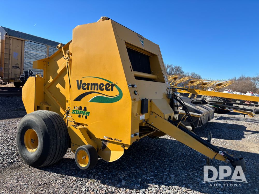 2009 Vermeer 605M Round Baler (DR13239), Super M big round baler, Vermeer Bale Expert cab monitor, DCF Wide pickup, rear bale kick, on board fire extinguisher, 21.5L-16.1 tires, 11,508 bales, $5,000 spent on parts only 100 bales since.