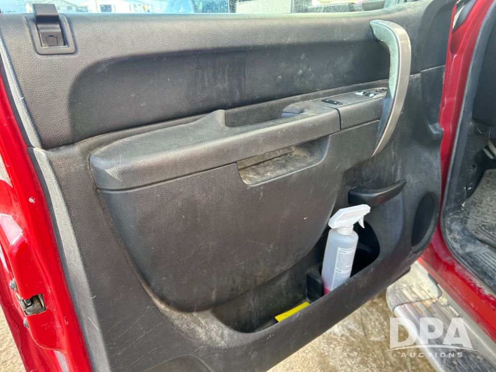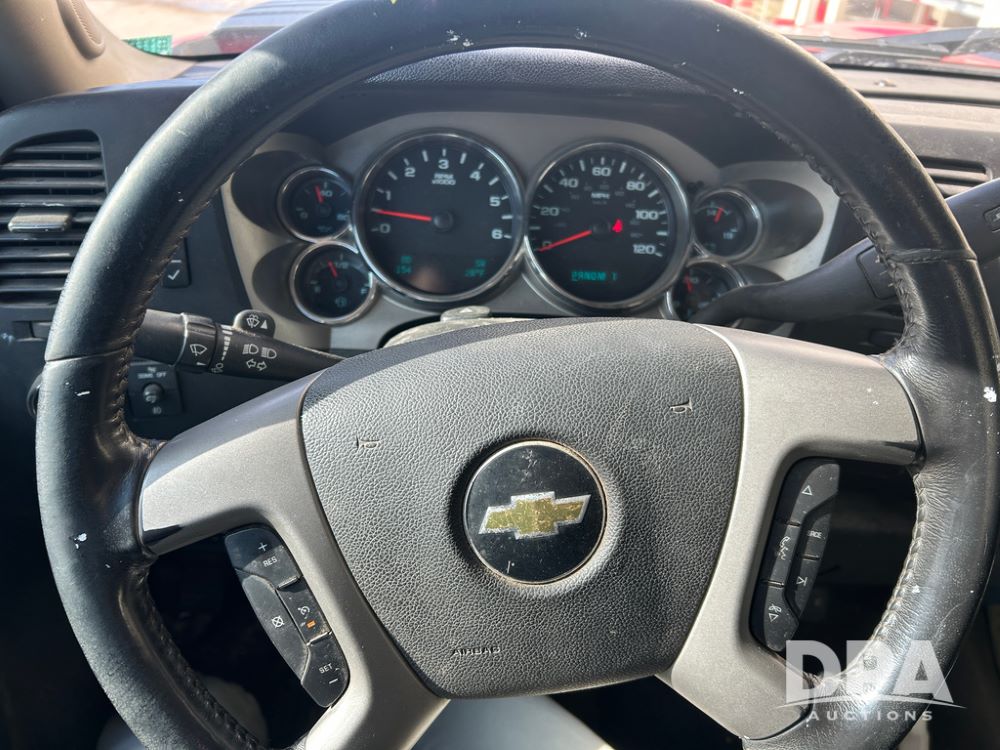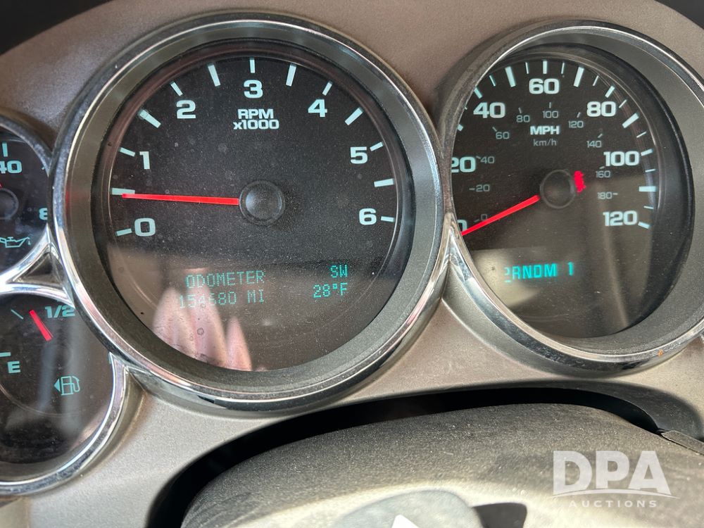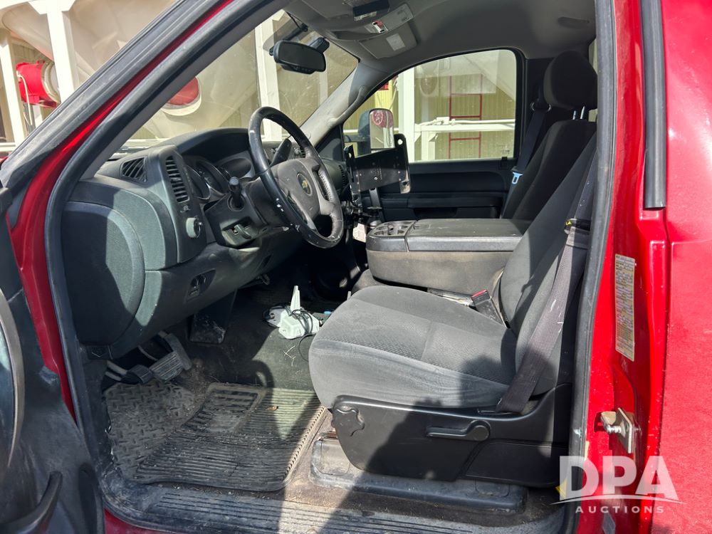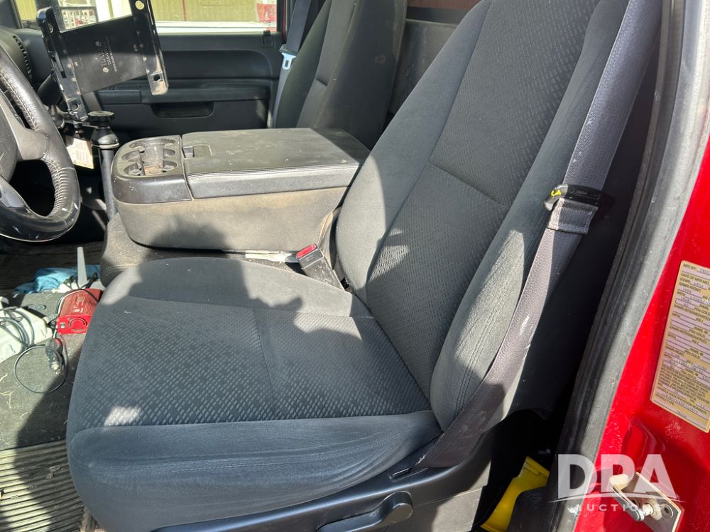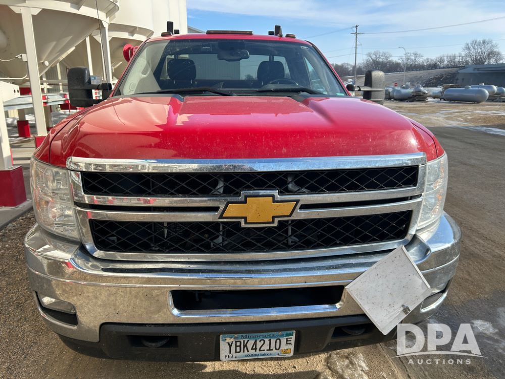 2014 Chevy 3500HD Service Truck (CP1736 Unit 4675), LP gas engine, automatic transmission, 4X4, 6 door steel service box, Tommy Lift electric tailgate, running boards, rear receiver hitch, power windows, locks and doors, cruise control, odometer reads 154,680 miles.