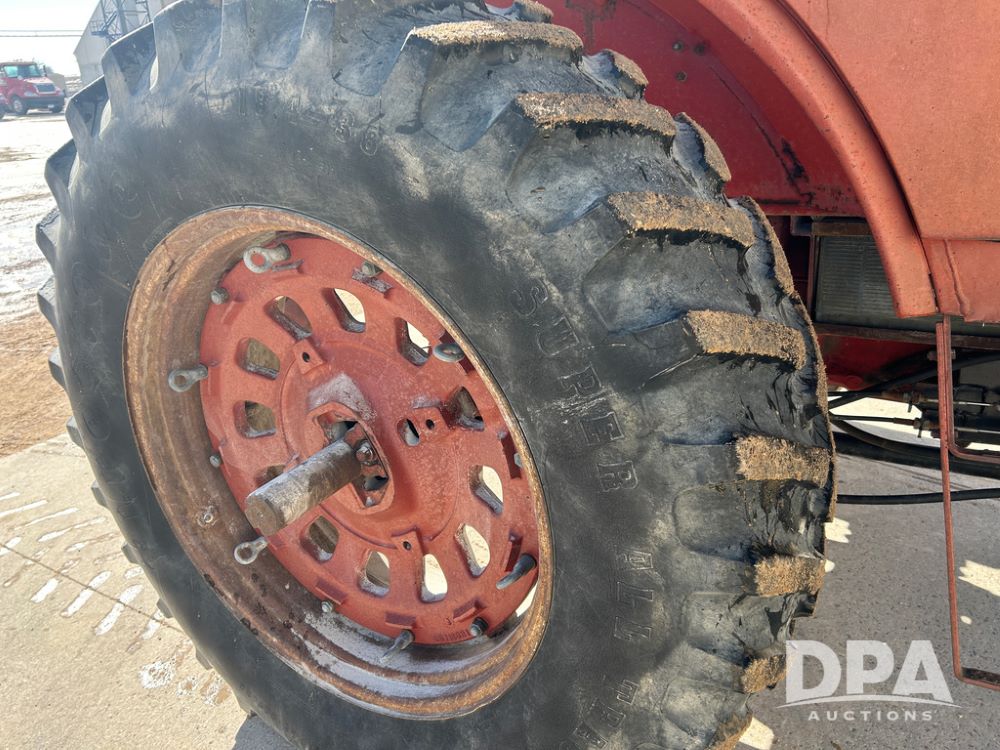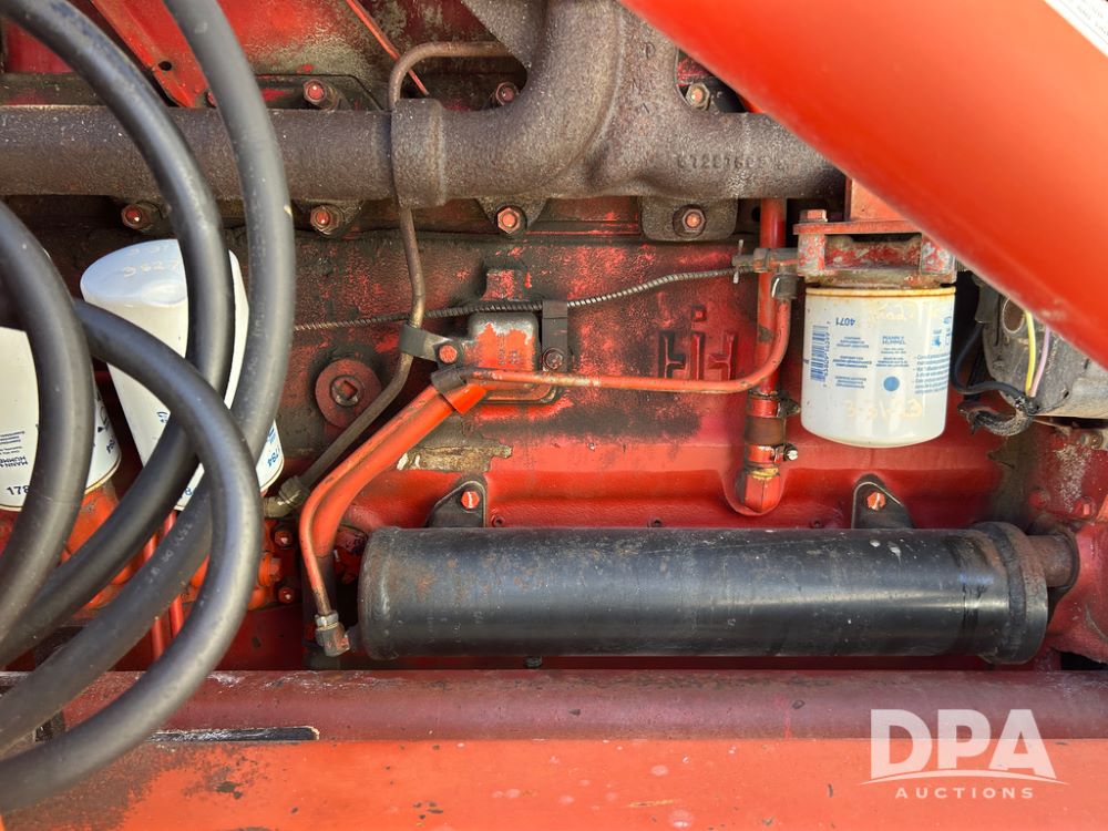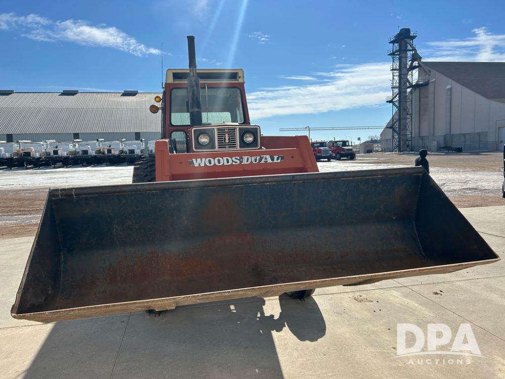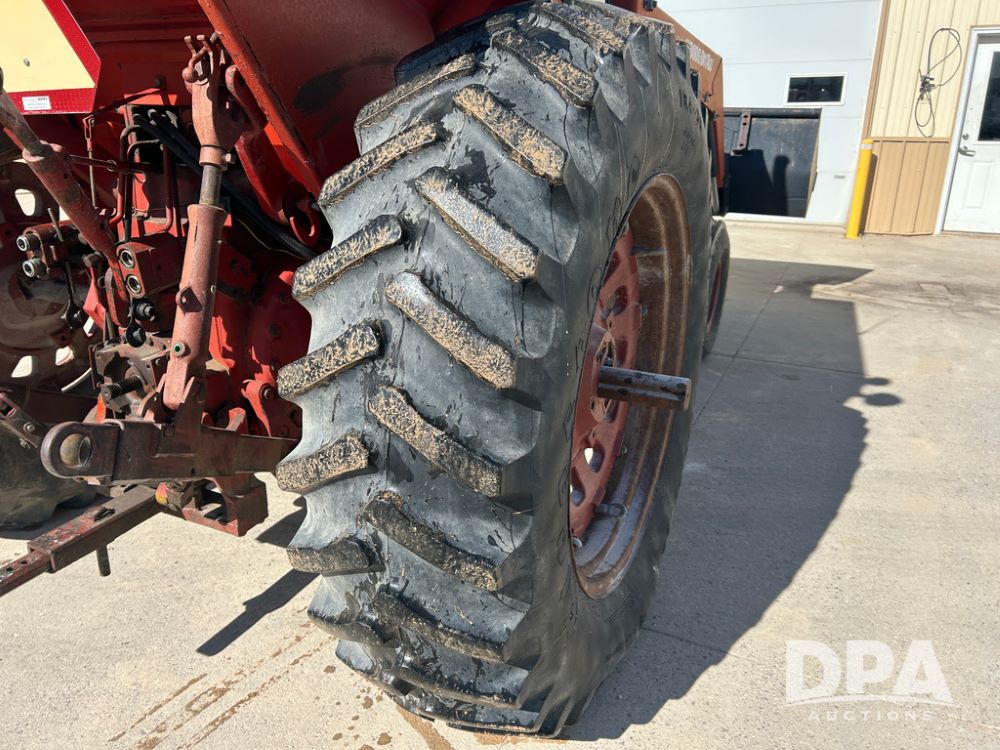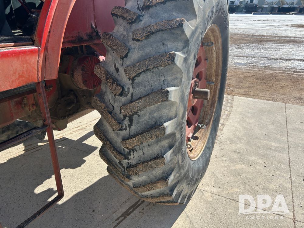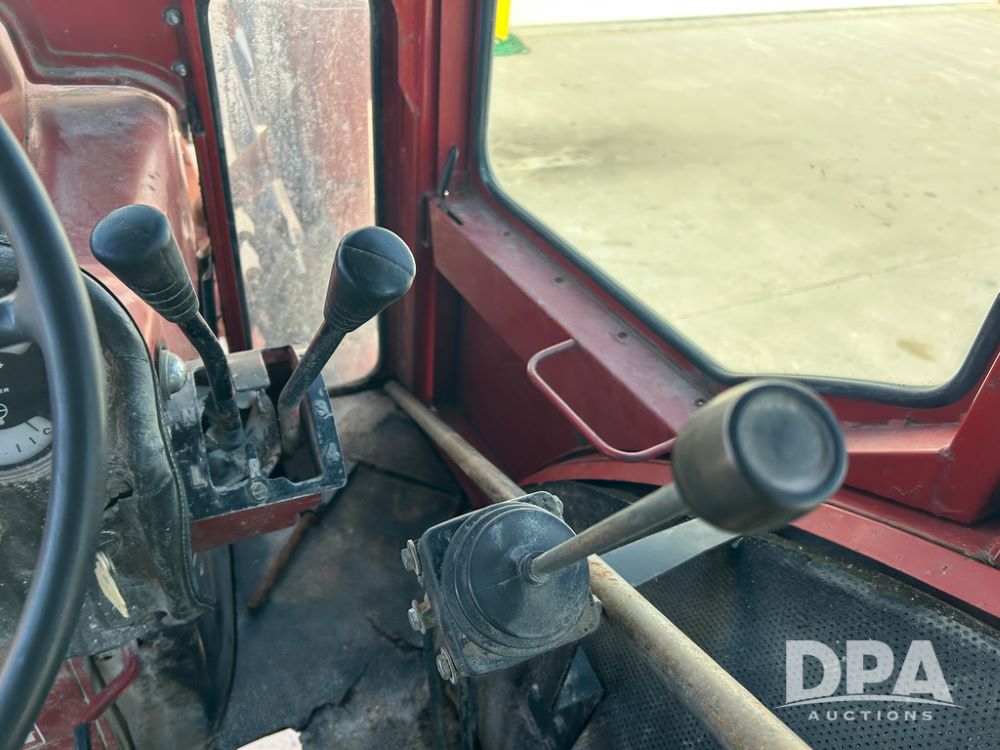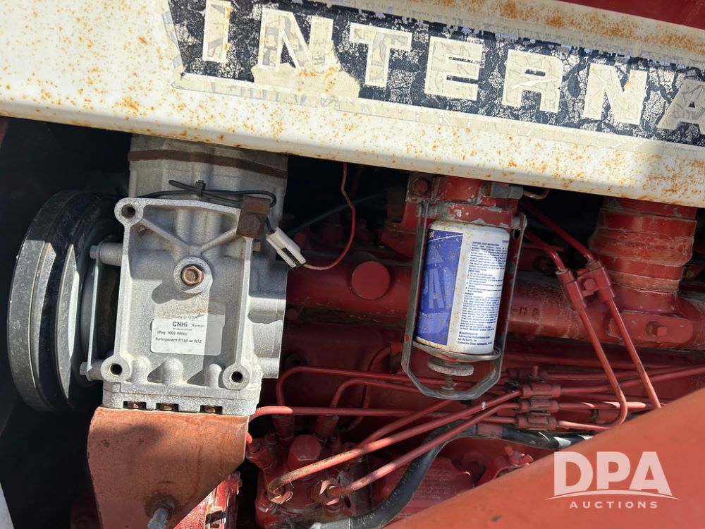 International 1066 Tractor (CP1752), diesel engine, 4 speed hi/lo transmission, torque amplifier, Woods Dual 3100 hydraulic front loader, 96'' front bucket, joy stick cab controls, enclosed cab, dual rear PTO's, dual remote hydraulic outlets, 3 point rear hitch, wide front end, 18.4-38 rear tires,