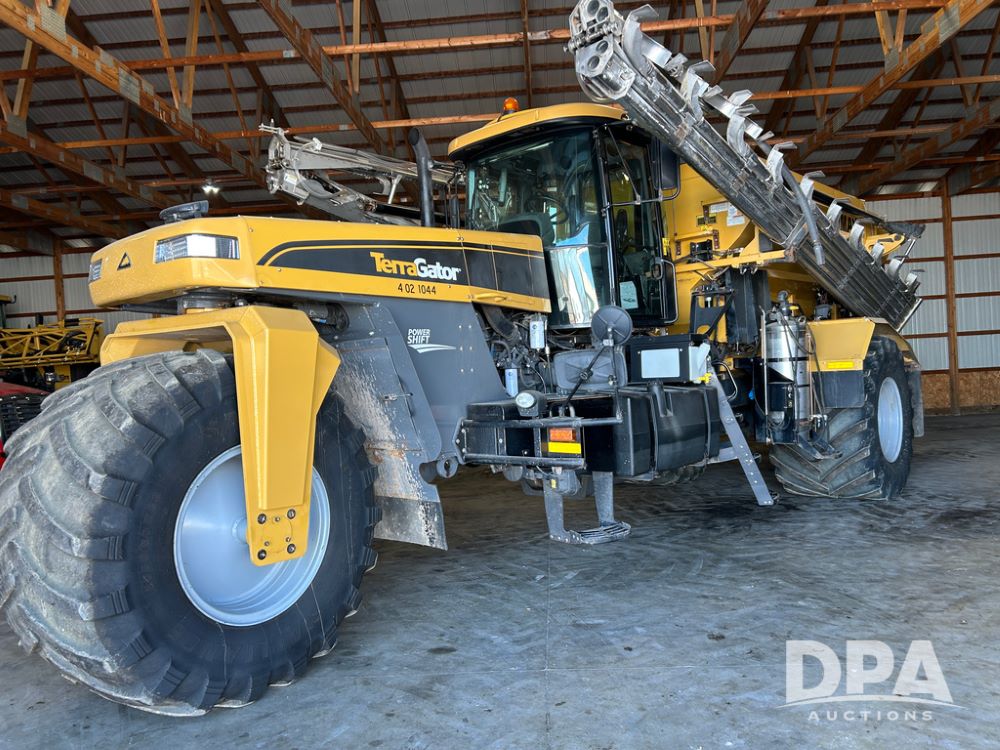 2014 Terra Gator 9300 Floater (CP1754 Unit 1044), diesel engine, Power Shift transmission, Air Max Precision 2 dry air flow system, Raven Viper Pro controller, 70' stainless steel boom, Micro ingredient bin, electric roll over tarp, stainless steel foam tank, on board air hose reel, cab heat/air conditioning, AM/FM CD radio, cab camera, Agriflex 1050/50R32 tires, shows 5,102 hours.